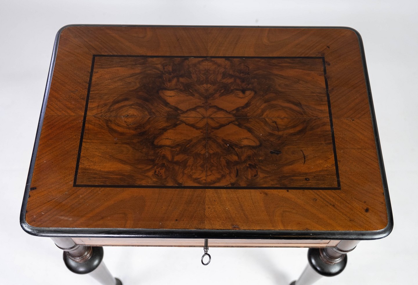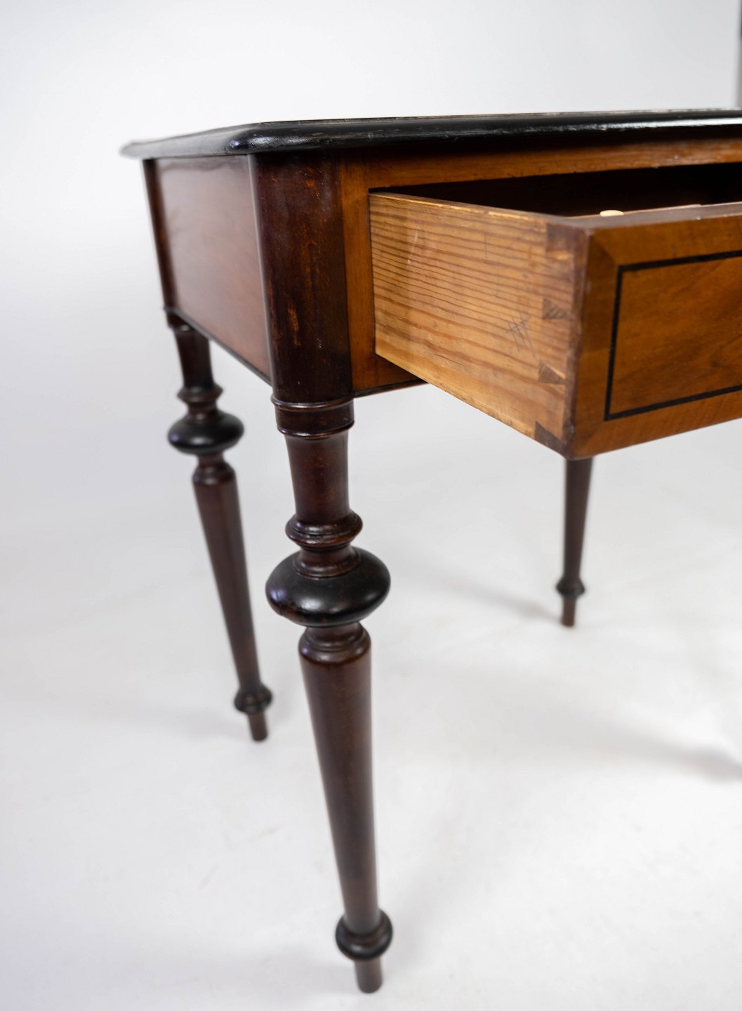SoldSide table in mahogany with inlaid walnut and ebony, in great vintage condition from 1860.