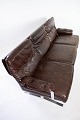 Det brune patinerede læder tilføjer varme og karakter til sofaen, mens metalstellet giver den et moderne og industrielt udseende. Denne kombination af materialer skaber en sofistikeret kontrast og giver sofaen et tidløst og stilfuldt udtryk, der passer perfekt ind i moderne boliger såvel som mere traditionelle indretninger.