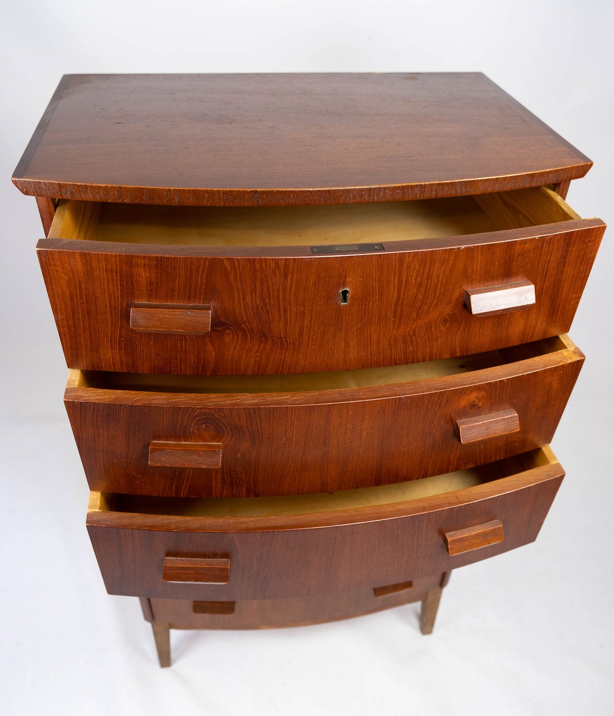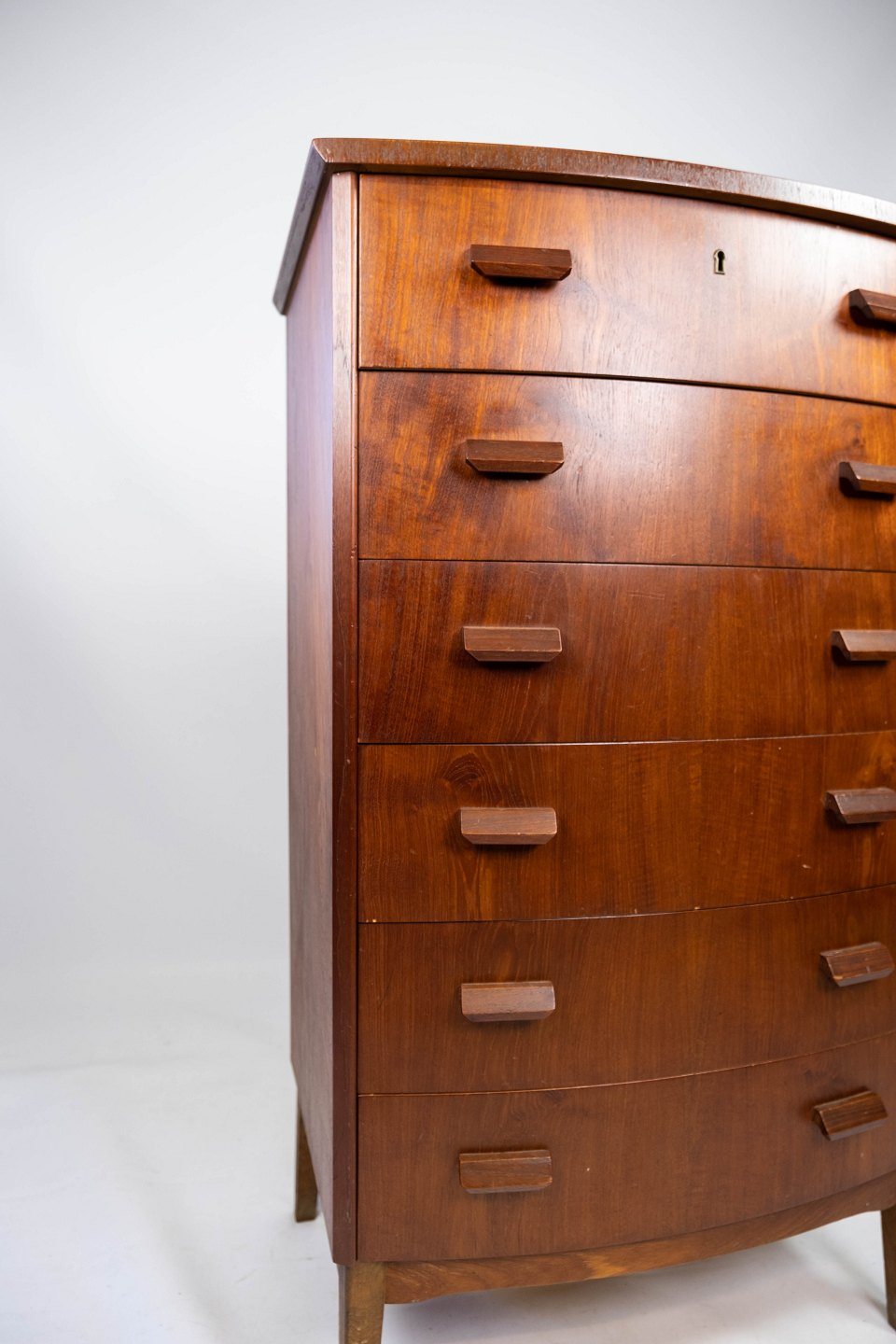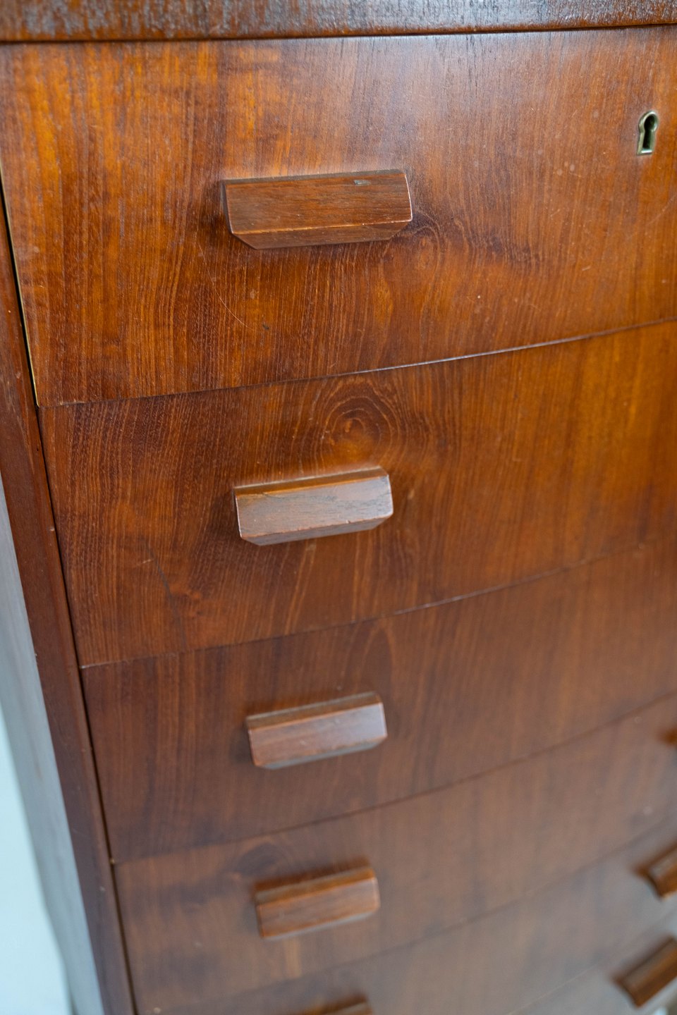 Tall chest of drawers in teak of danish design from the 1960s. The chest is in great vintage condition.