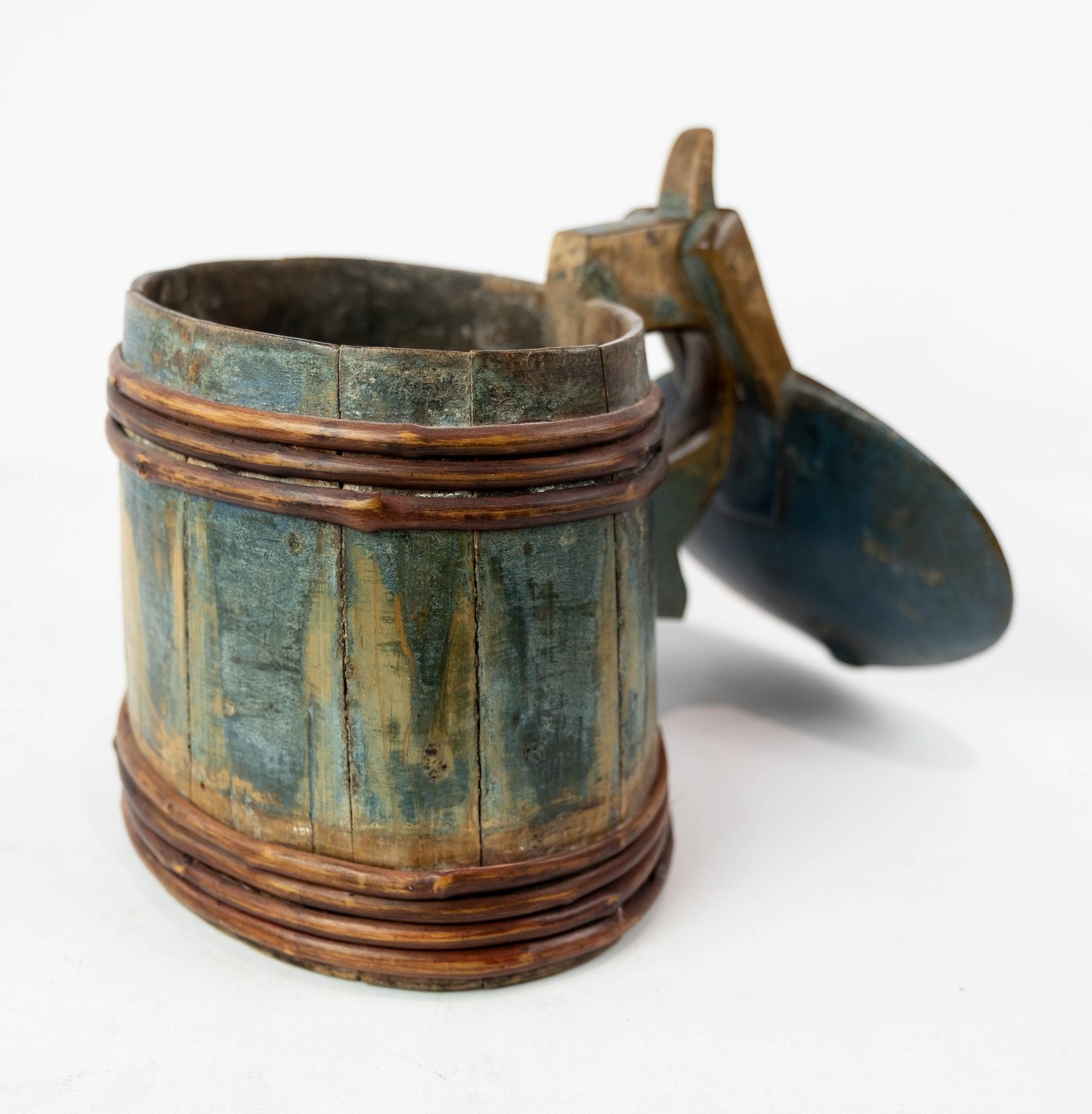 Antique jug of dark wood in original colours and in great vintage condition from 1860.