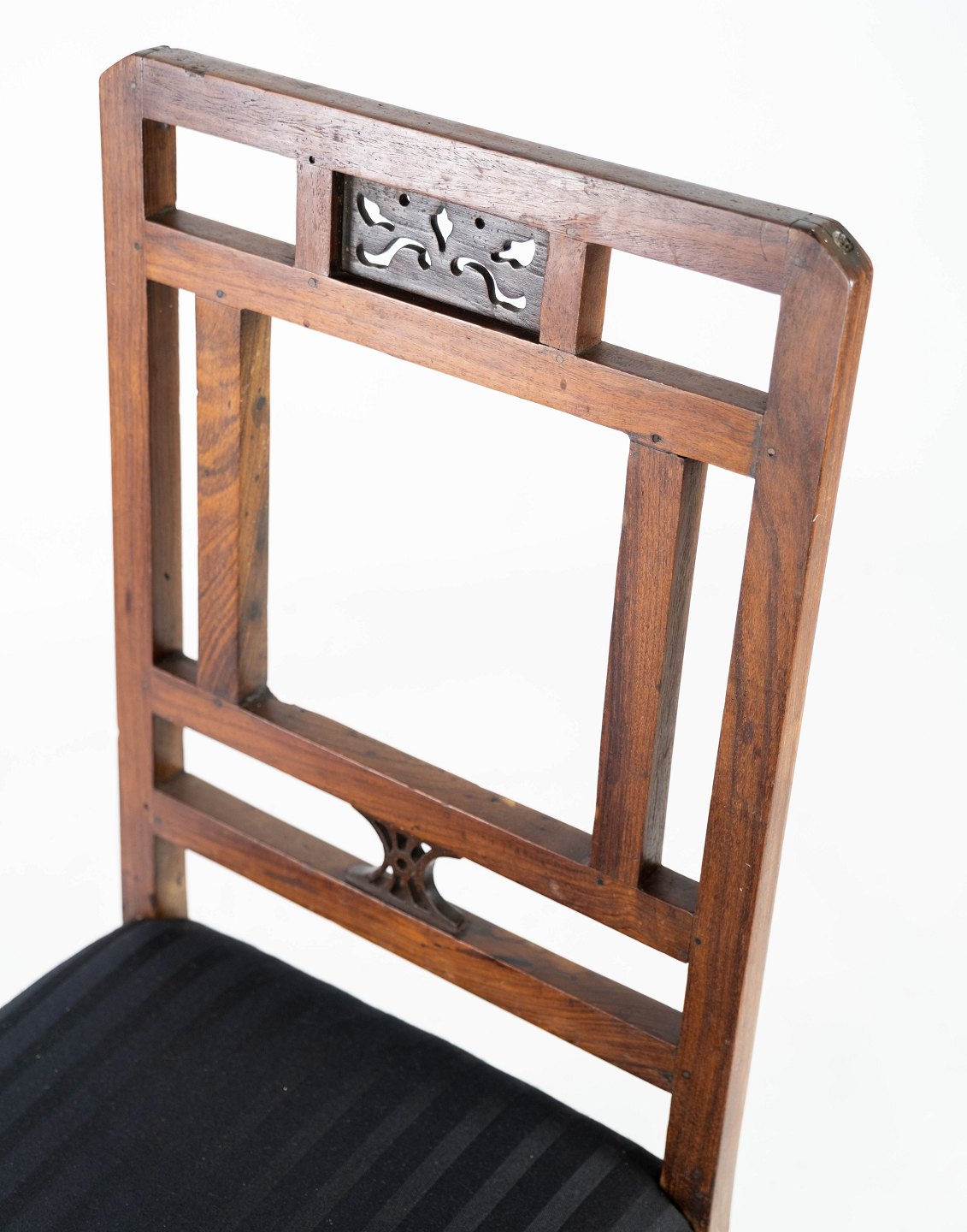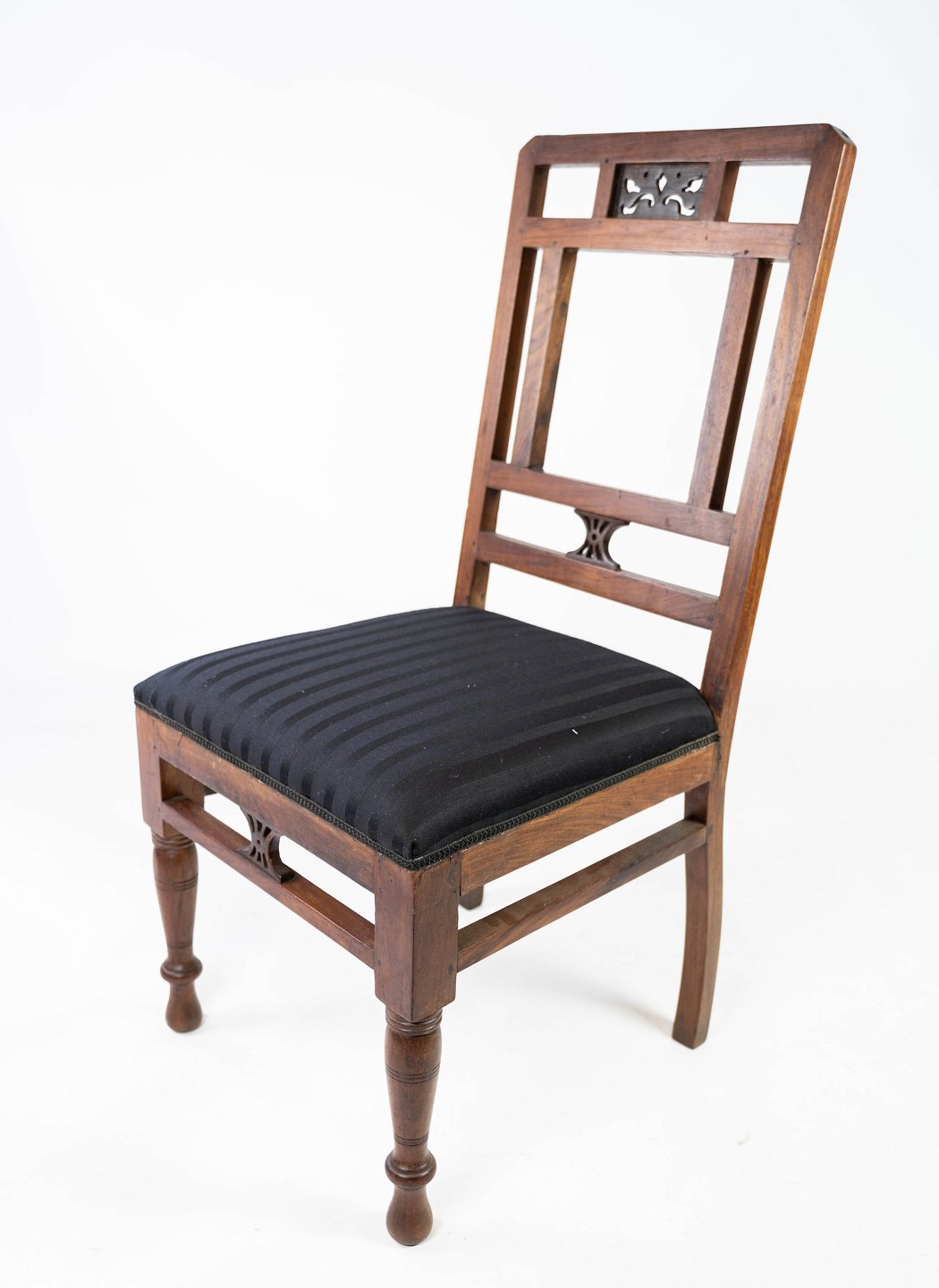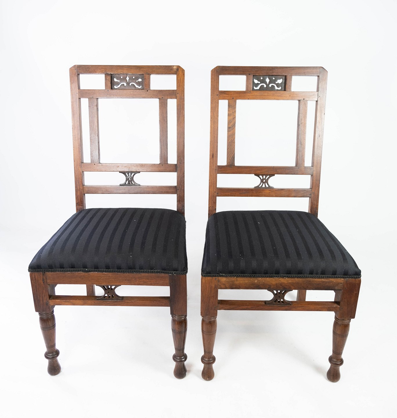 Set of two dining room chairs of mahogany and upholstered with black fabric, in great antique condition from 1910.