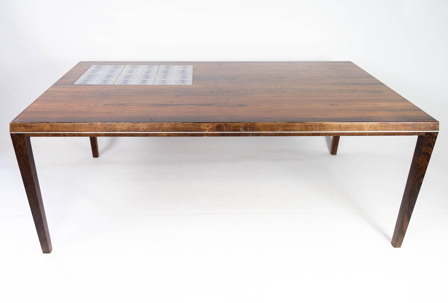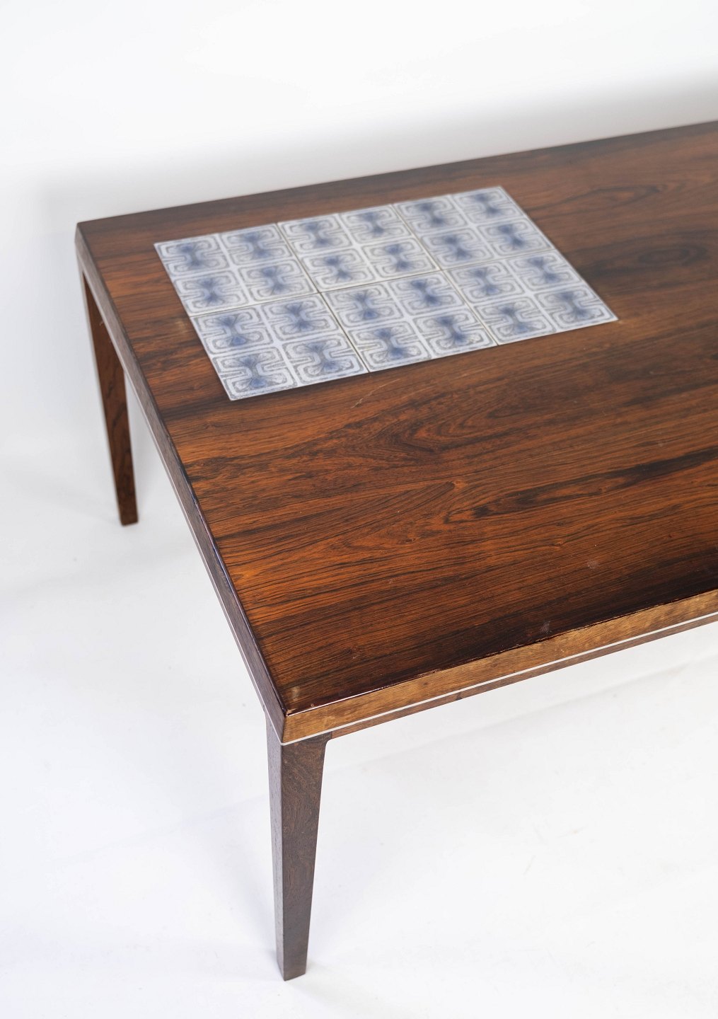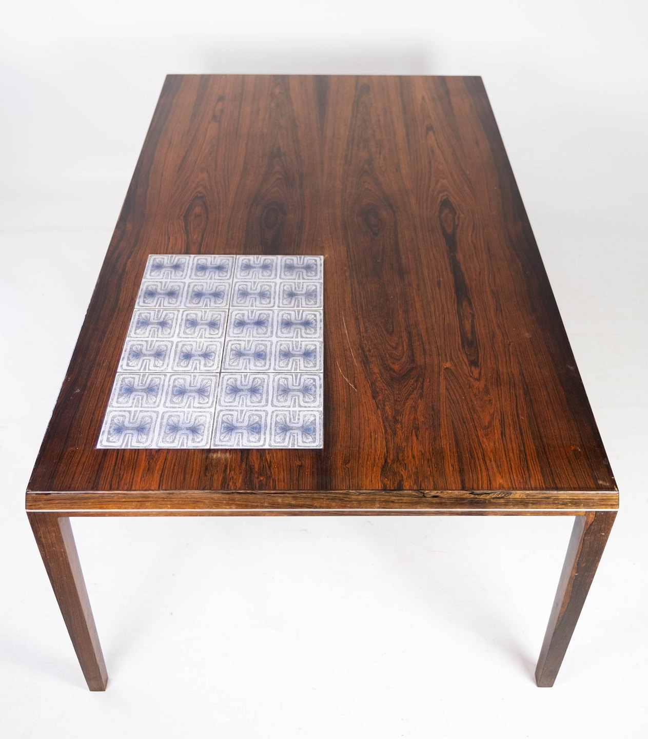 Sofabord i palisander med klinker, designet af Johannes Andersen og fremstillet af Silkeborg Møbelfabrik fra 1960erne. Bordet er i flot brugt stand.