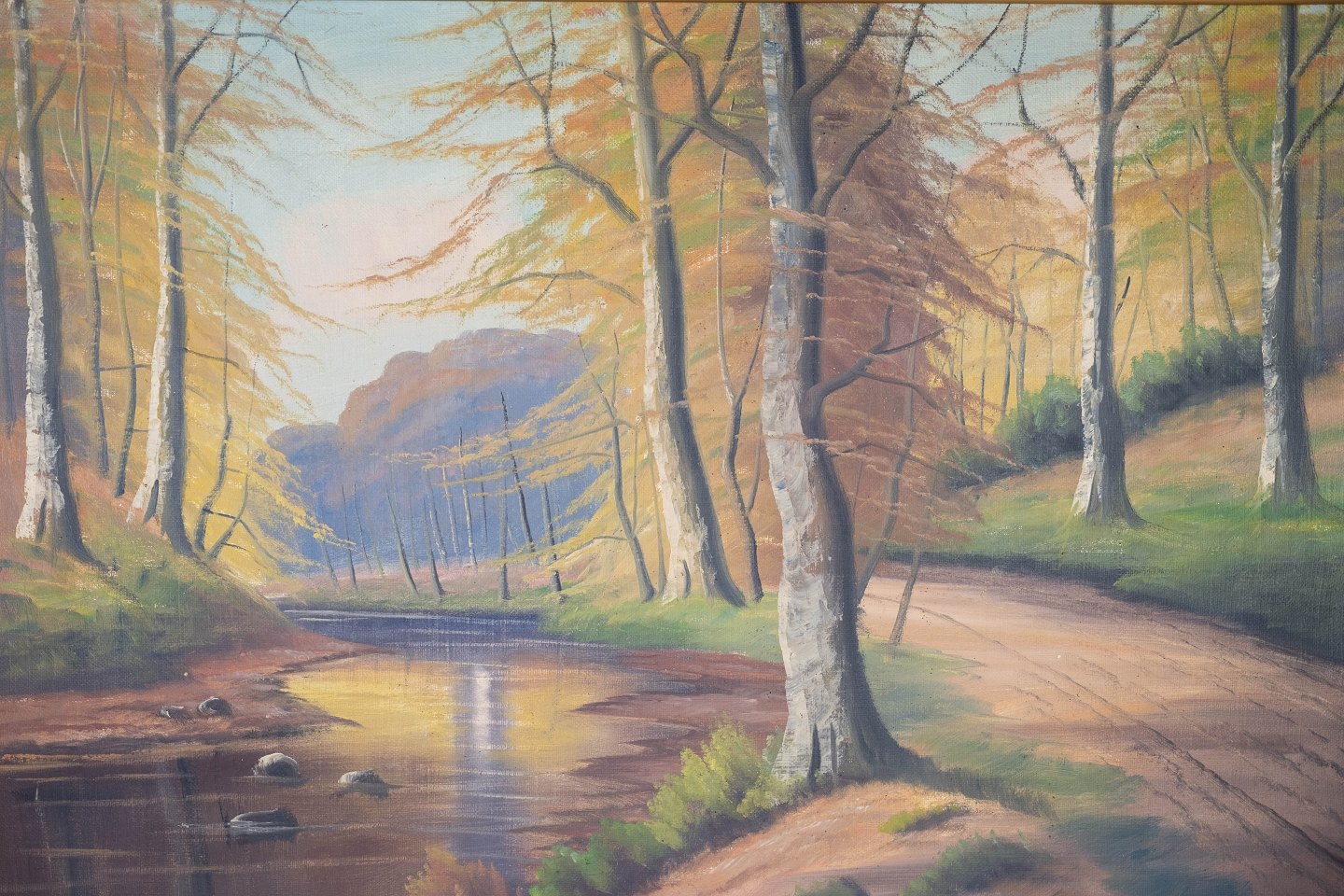 SoldOil painting with nature motif and wooden frame, signed Højby from the 1930s.