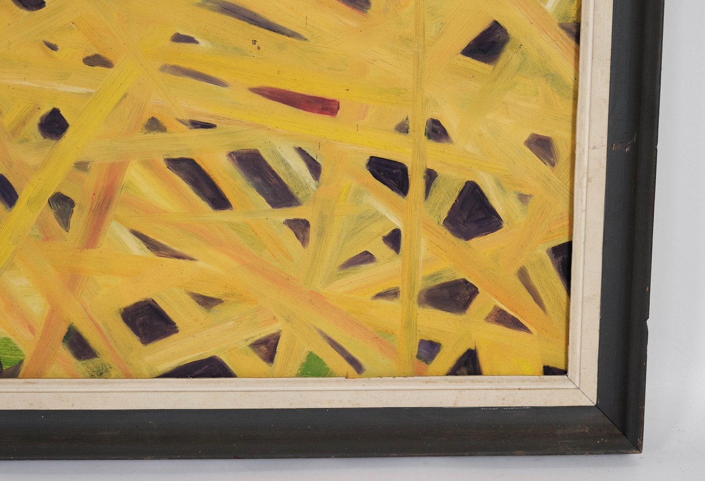 Painting in yellow colors with dark wooden frame from the 1970s.