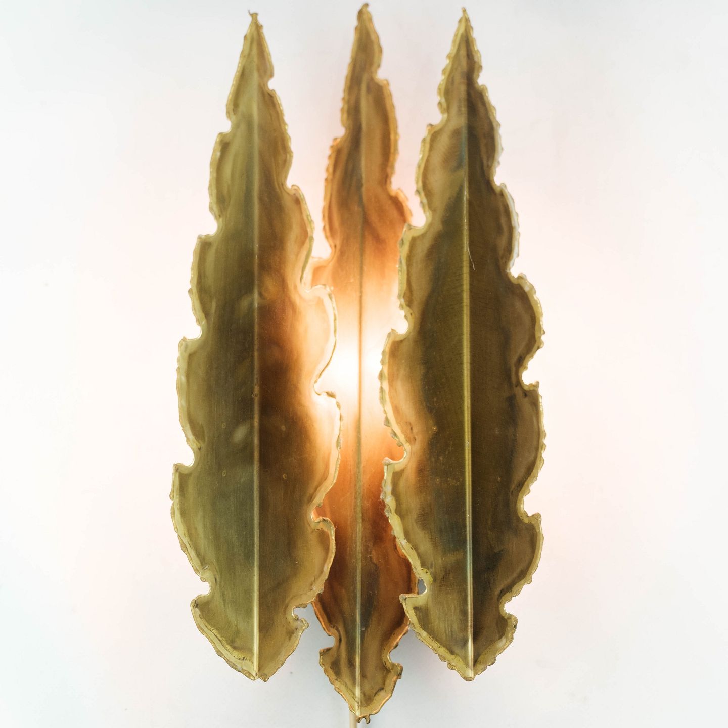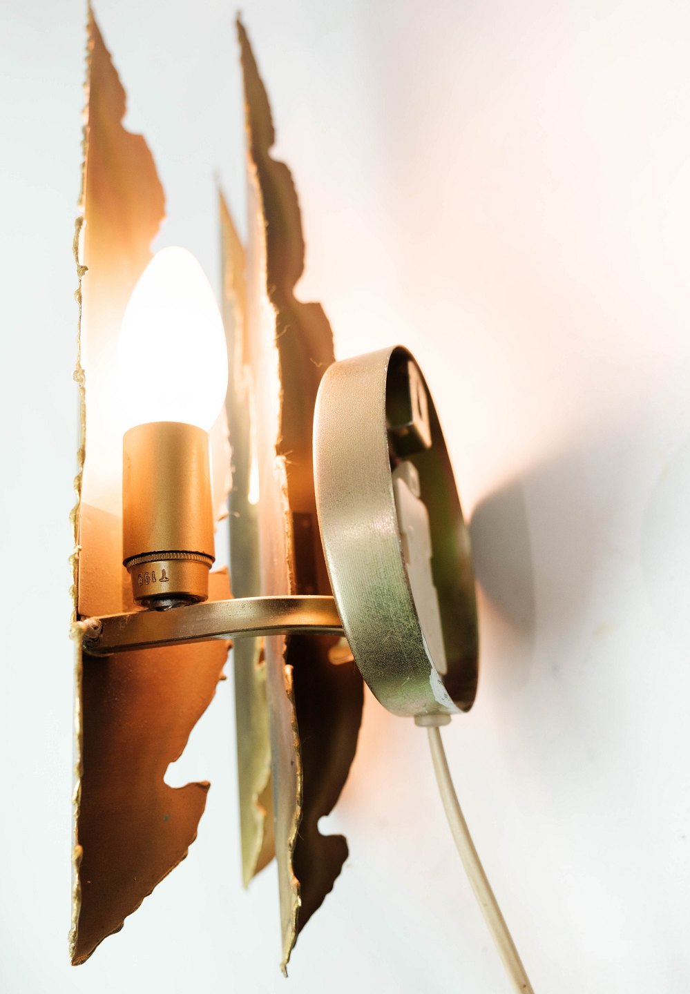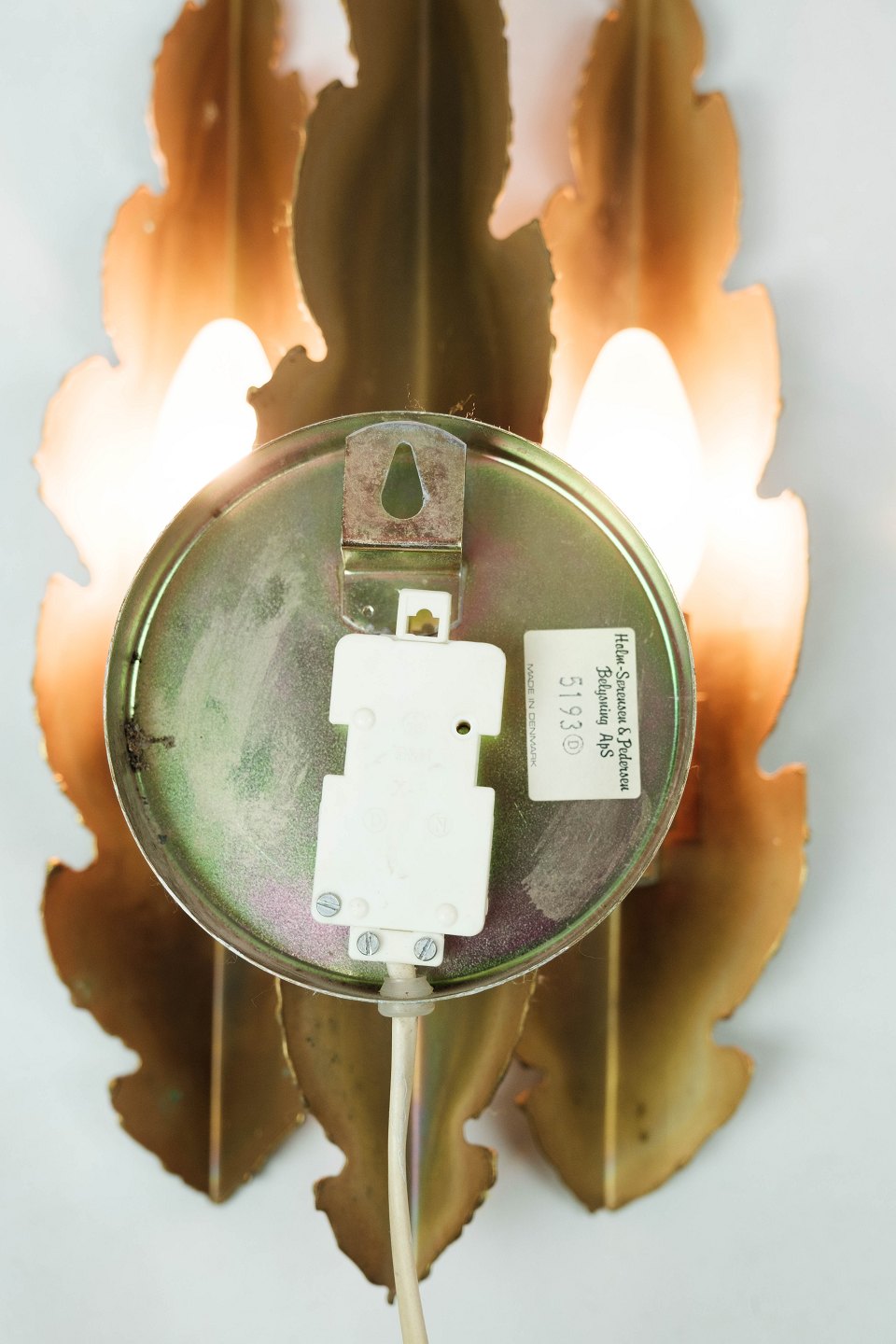 SoldWall mounted lamp in the shape of gilded leaves of Danish design by Holm-Sørensen and Pedersen. The lamp is in great vintage condition.