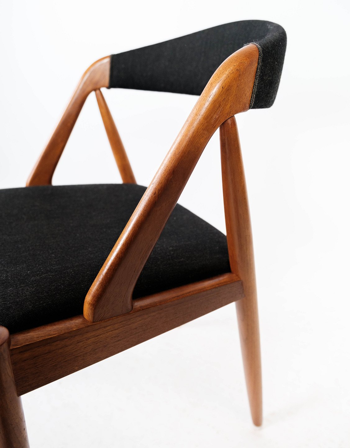 SoldDining room chair, model 31, designed by Kai Kristiansen in 1956 and manufactured by Schou Andersen in the 1960s. The chair is of teak and upholstered in black fabric.