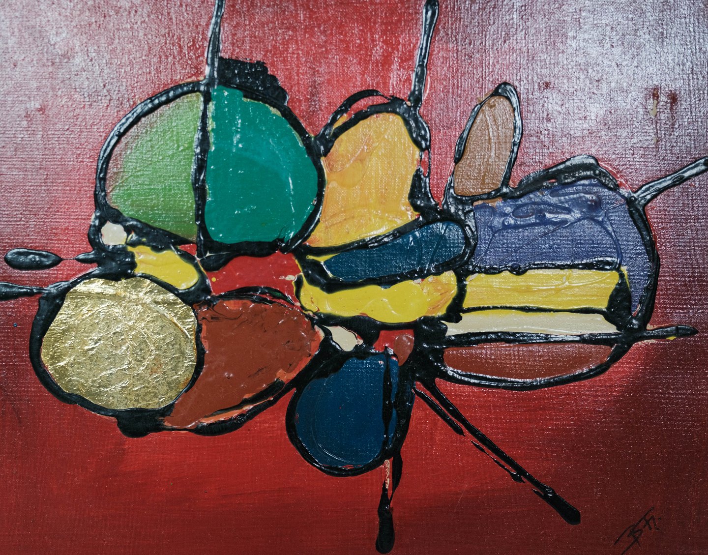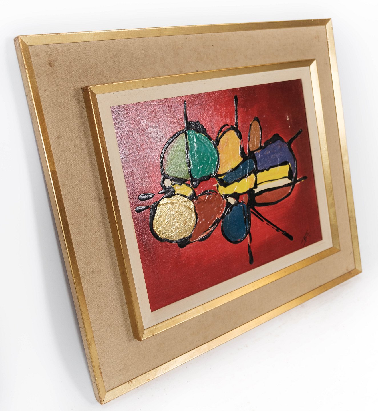 Painting on canvas in dark colors and gilded frame, signed B.F.