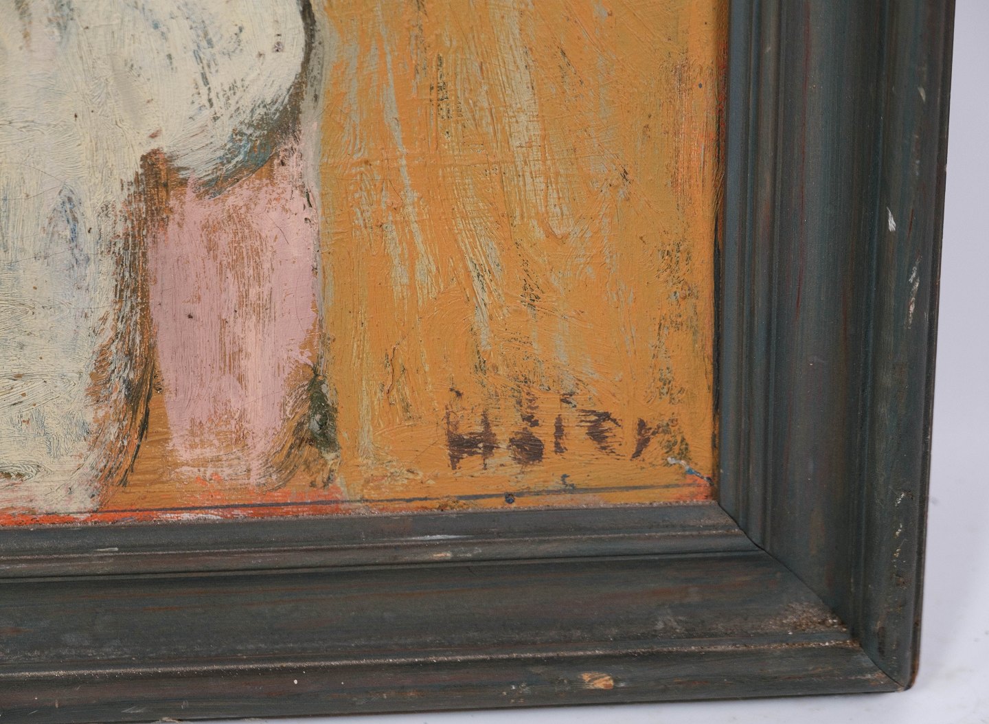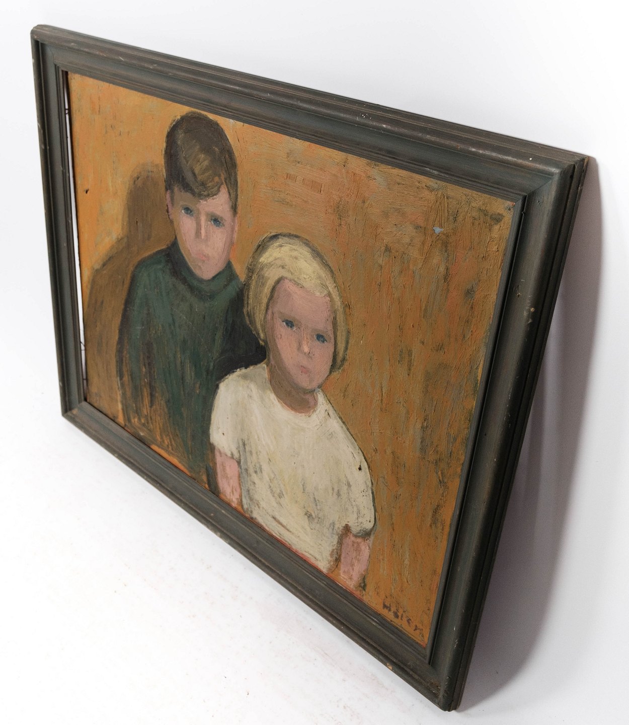 Portrait painting in dark colors and with dark frame, signed by Hans Christian Høier 1919-2003.
