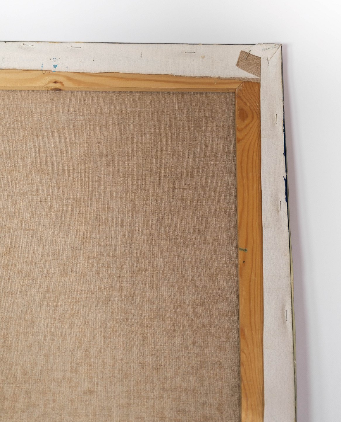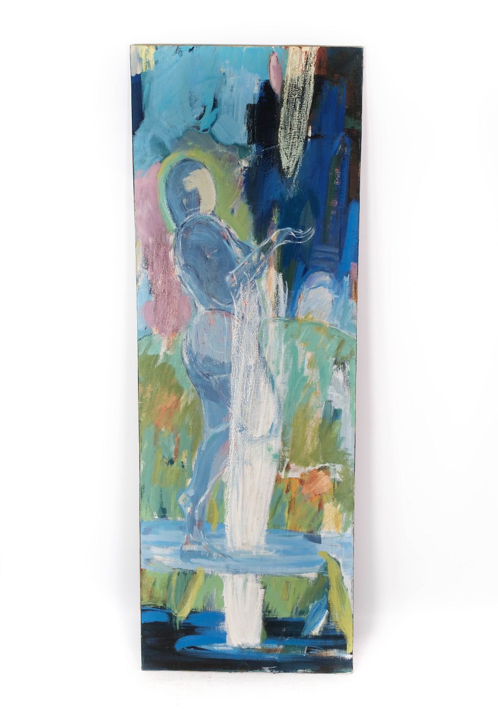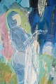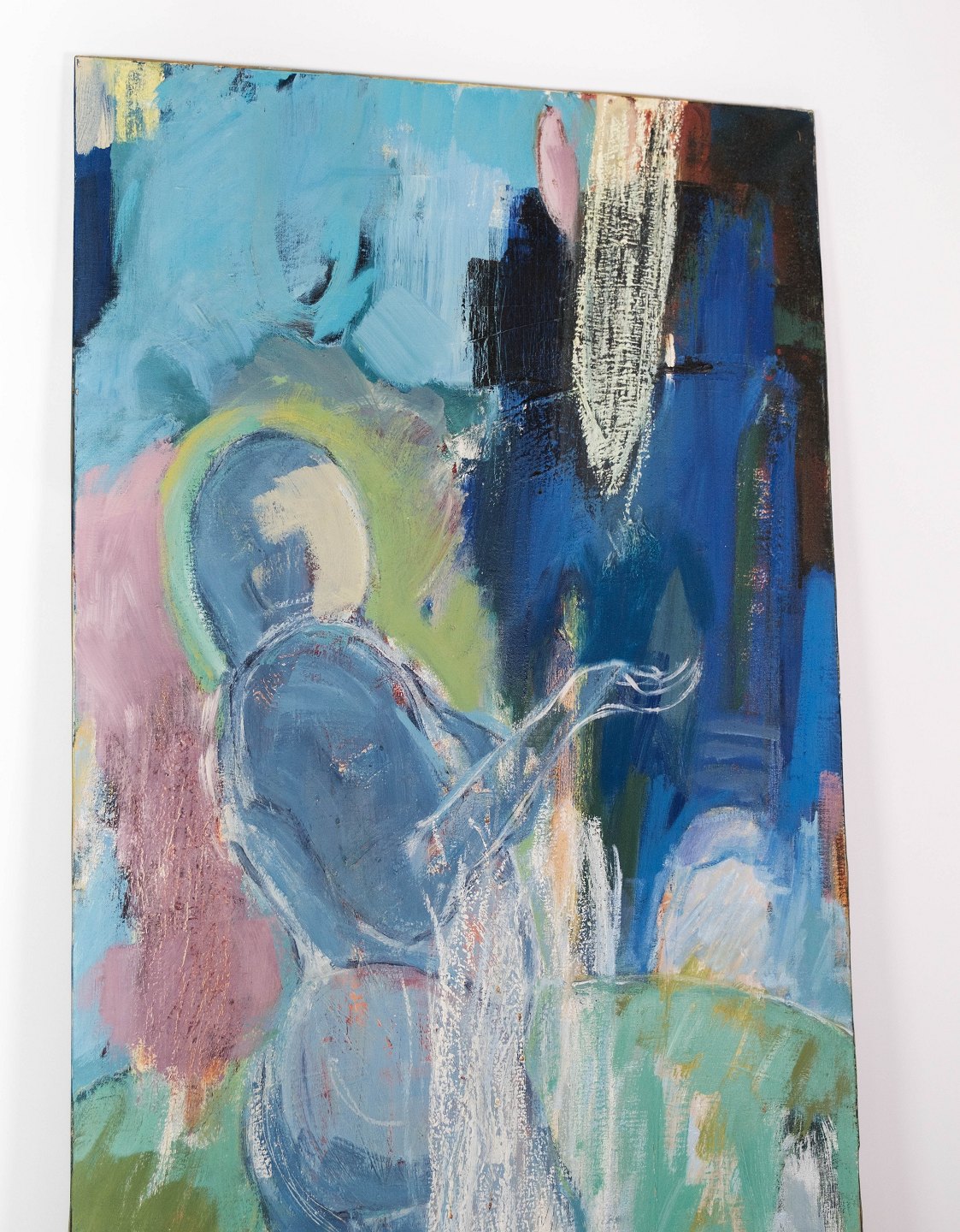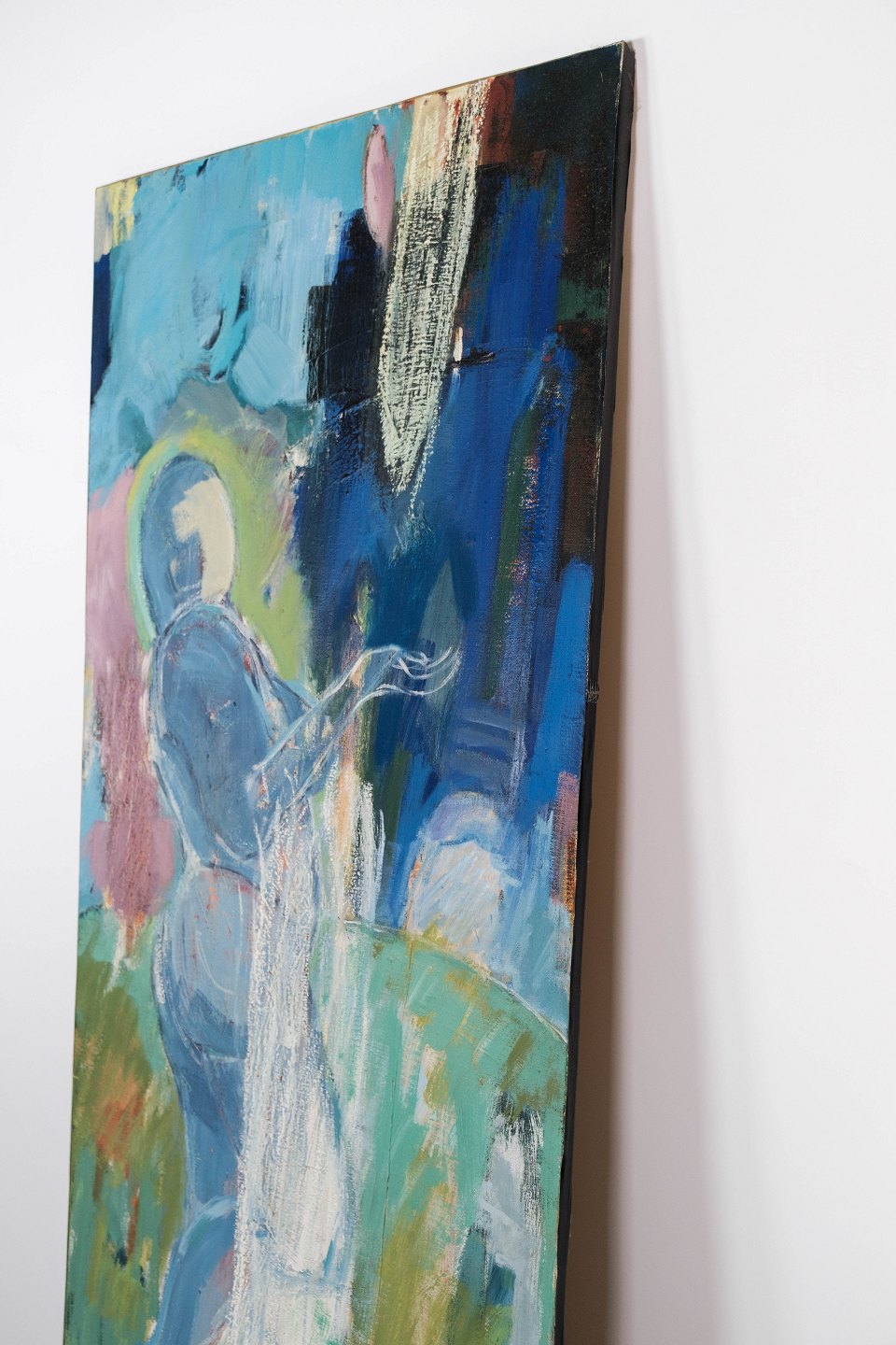 Oil painting on canvas in strong blue colors by the danish artist Åse Højer, b. 1952.