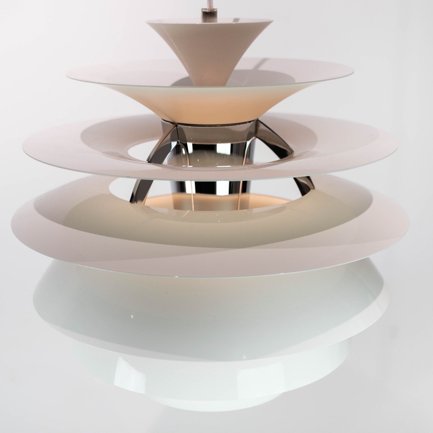 PH Snowball with white lacqured shades designed by Poul Henningsen and manufactured by Louis Poulsen. The lamp is in great vintage condition.