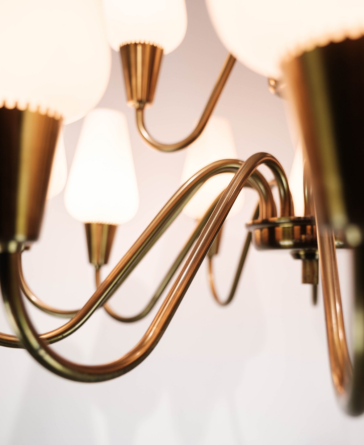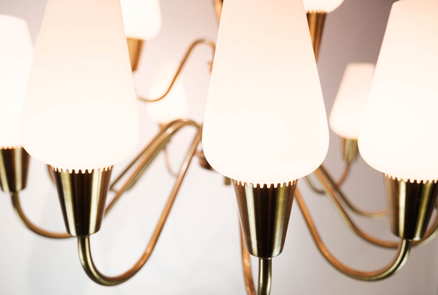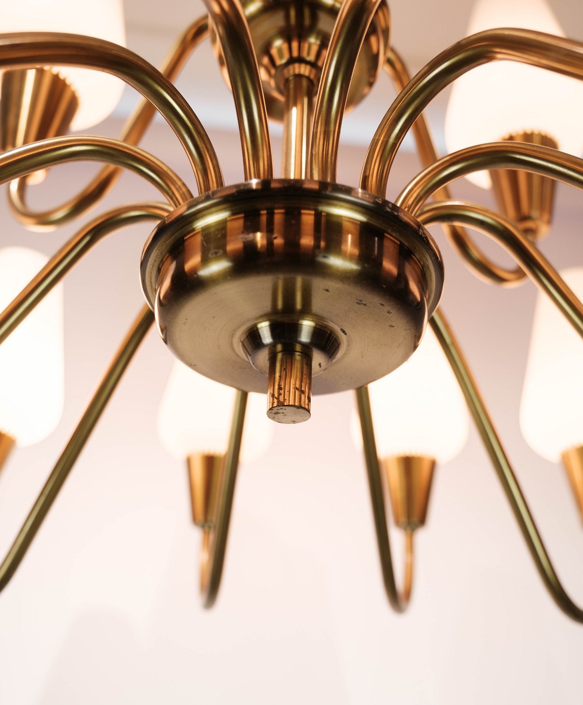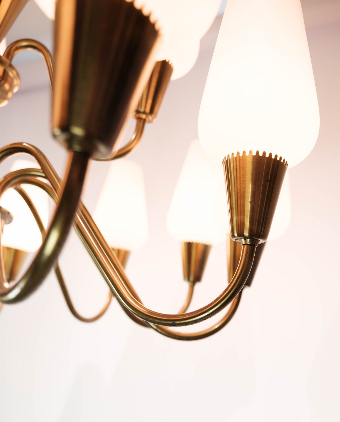 Lamp with arms of brass and glass, of Danish design from the 1950s.