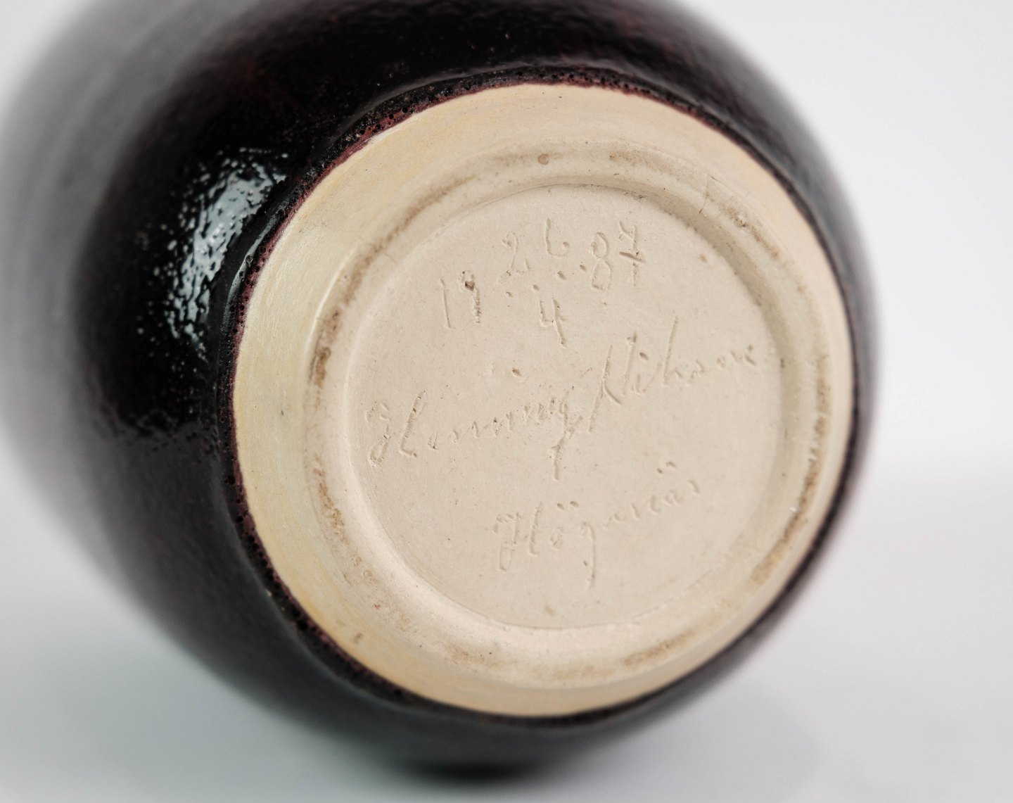 Ceramic vase with bordeaux glase by the artist Henning Nilsson for Häganäs in 1987.