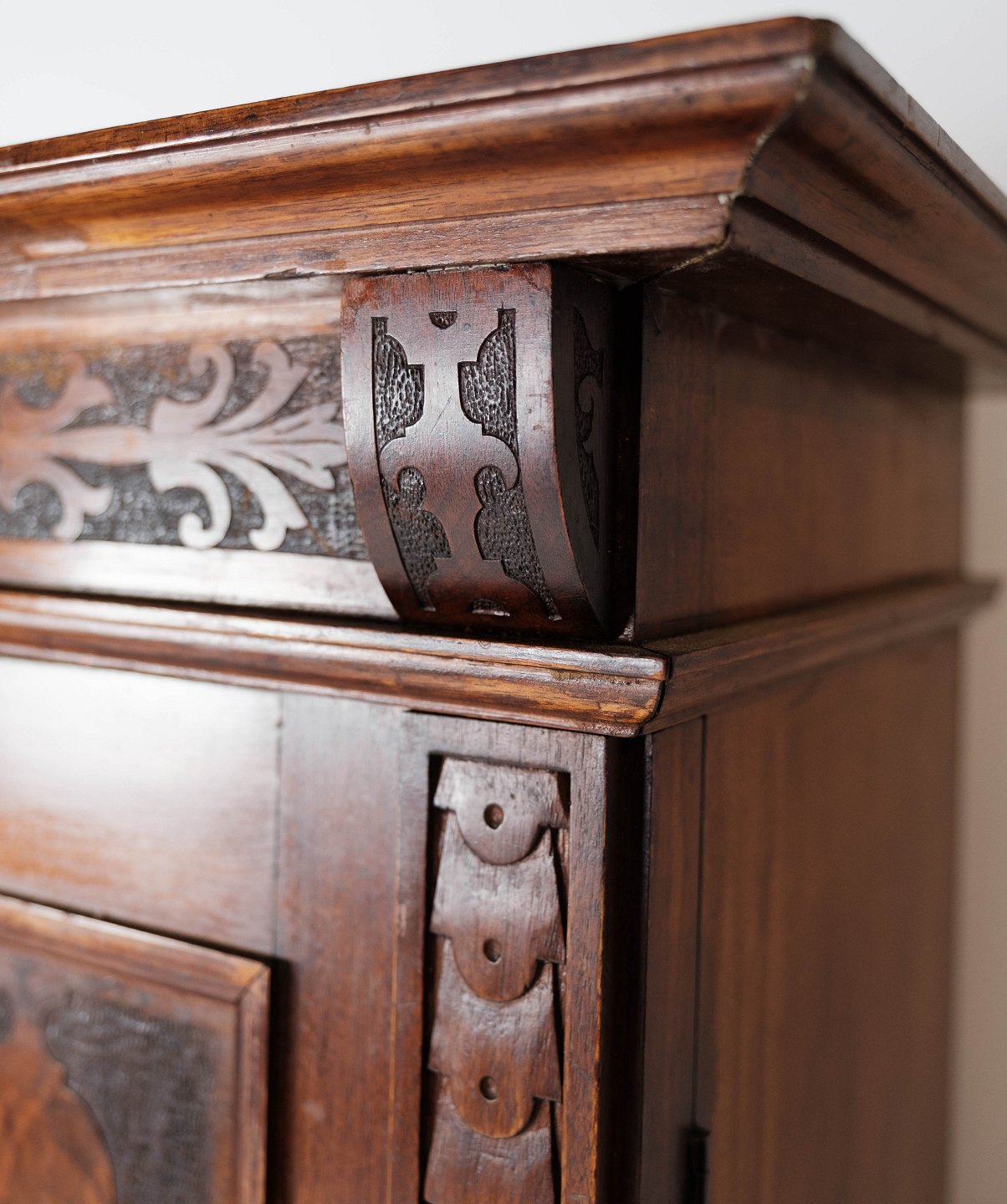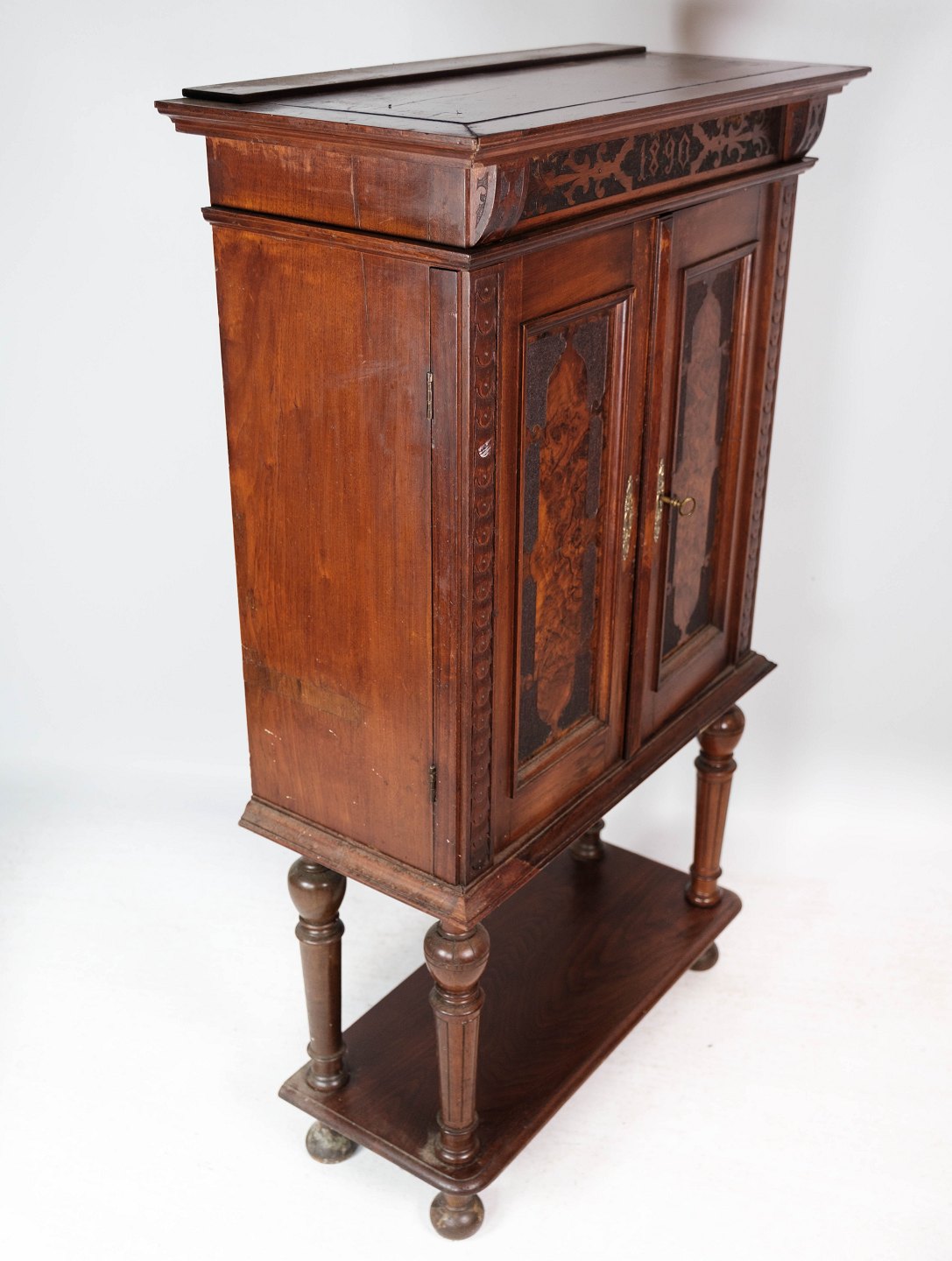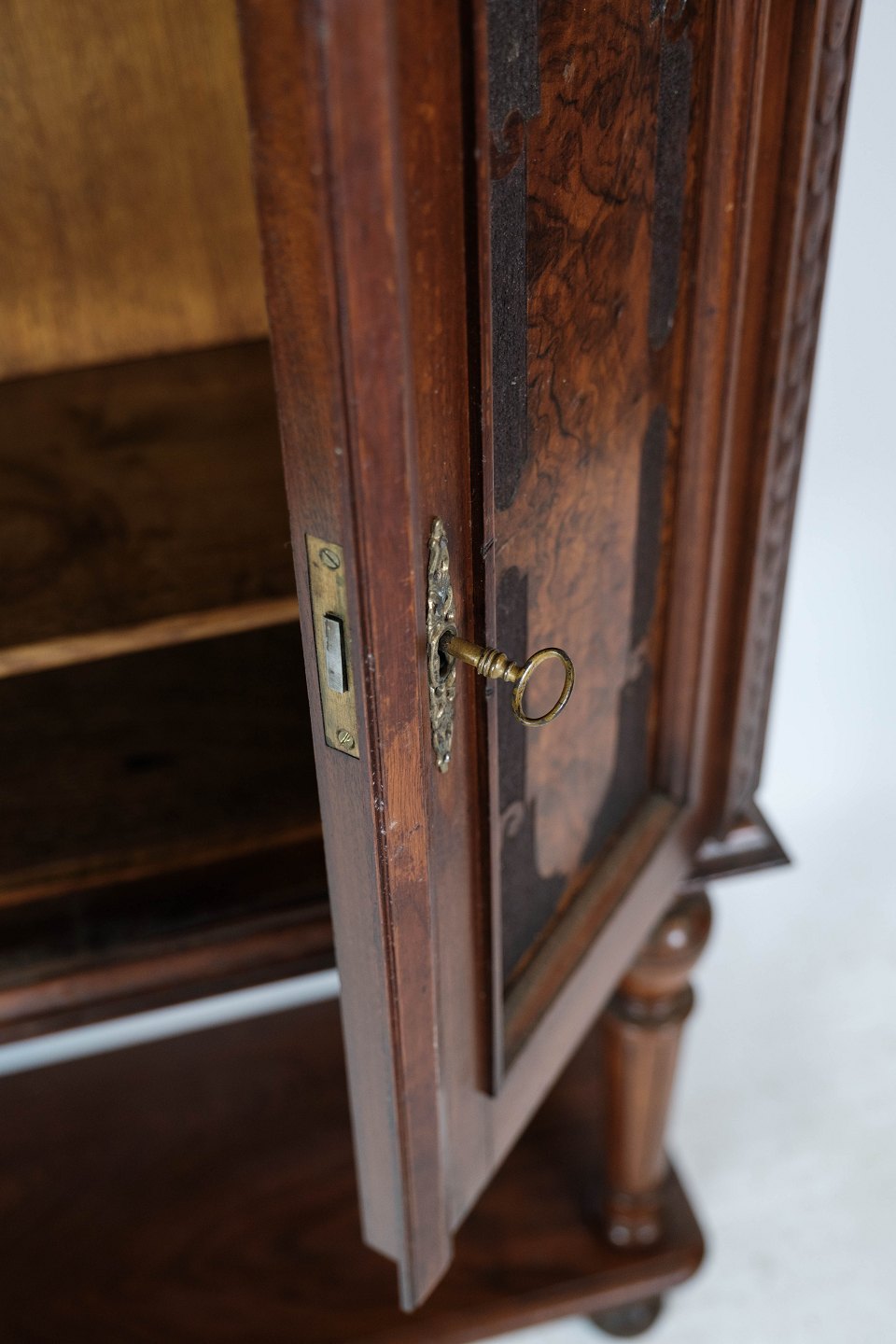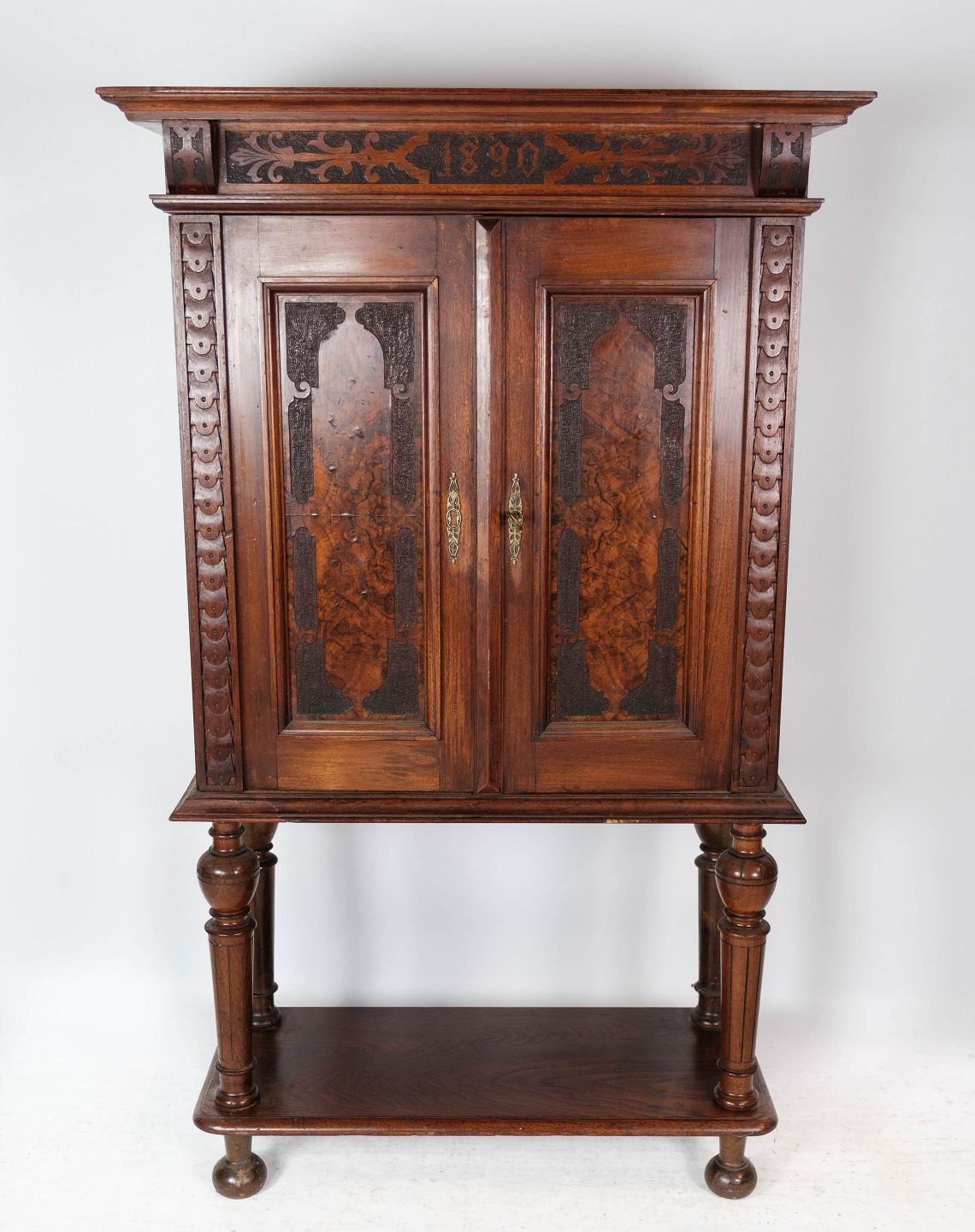Large cabinet of mahogany and walnut decorated with carvings, in great antique condition from the 1860s.