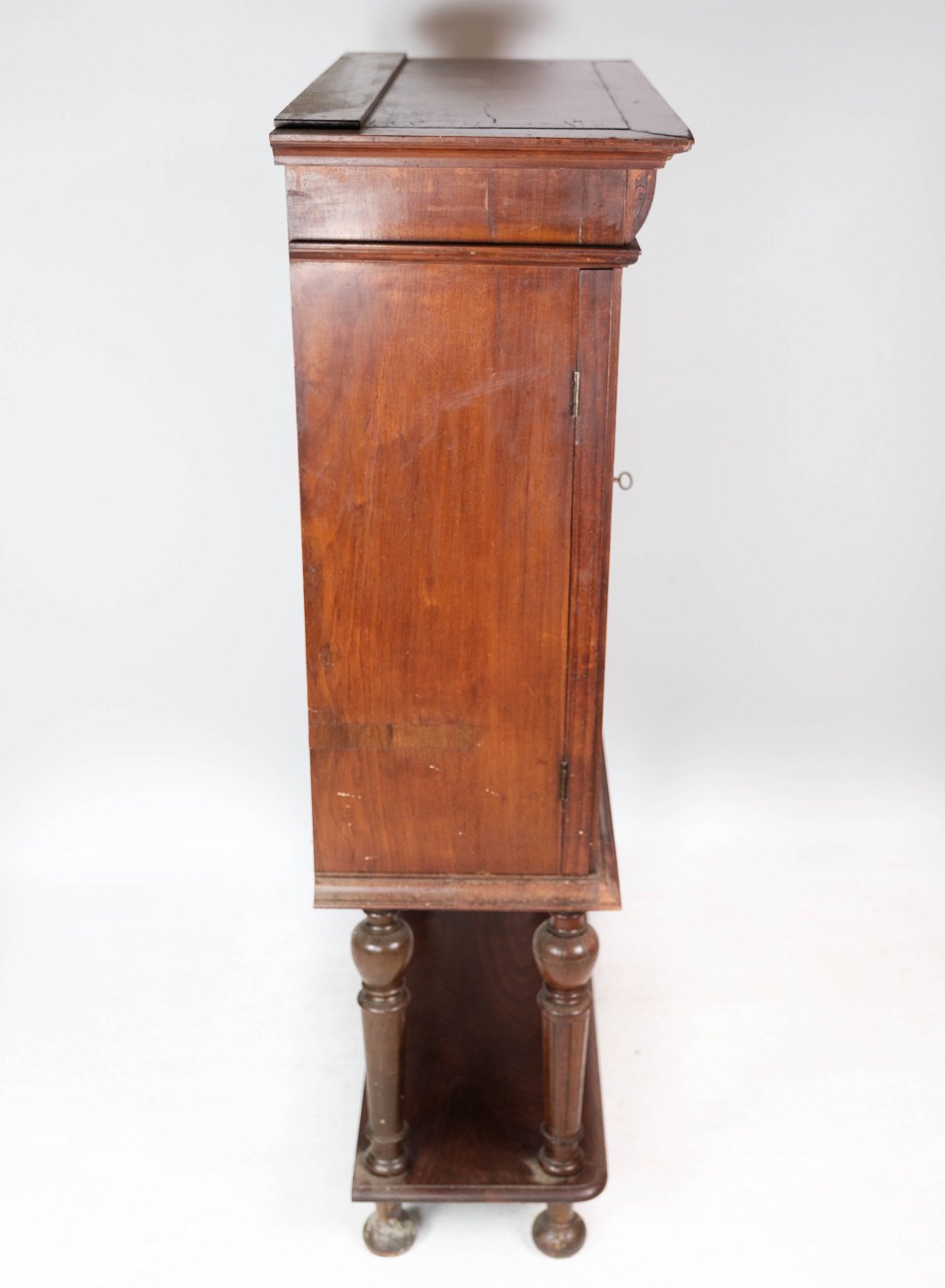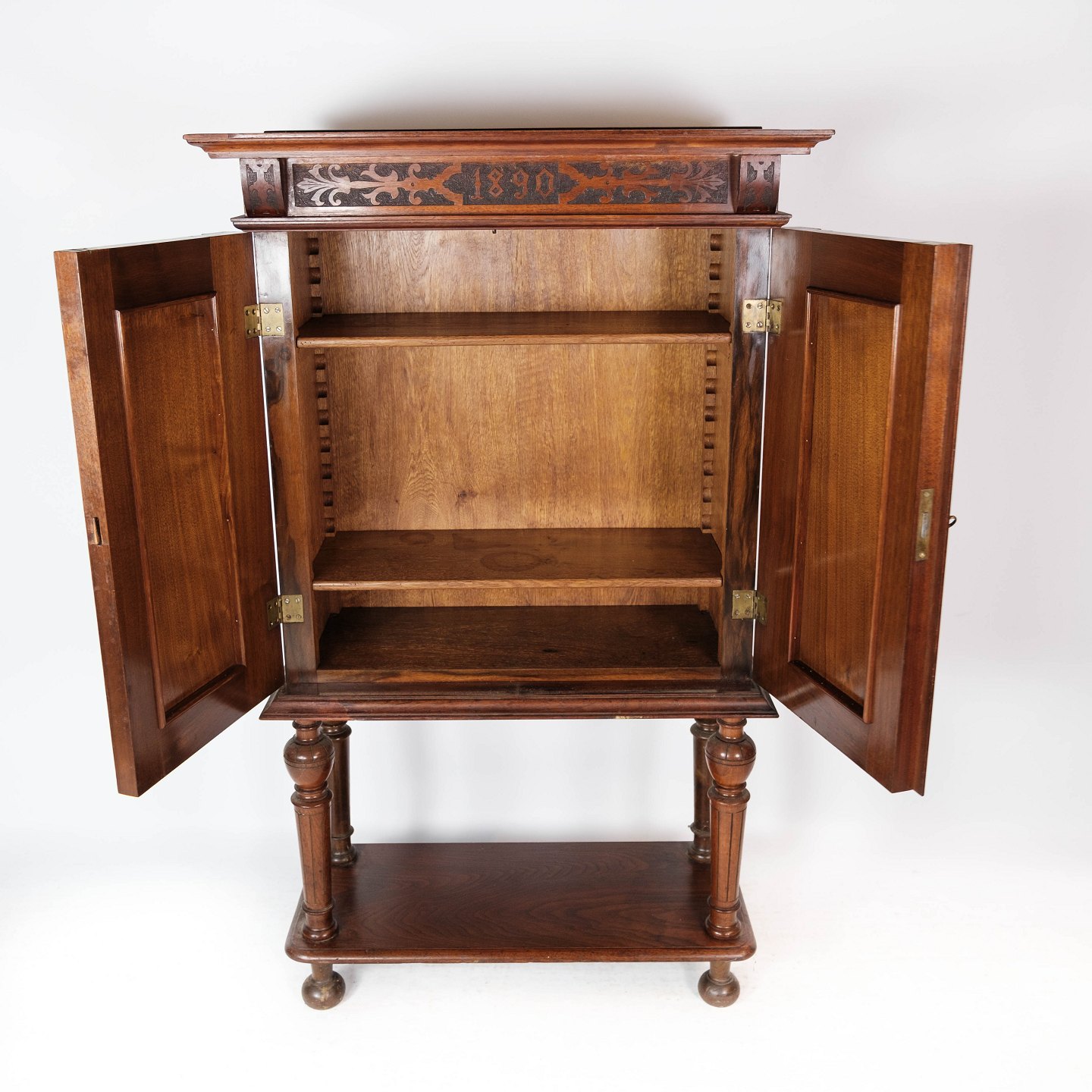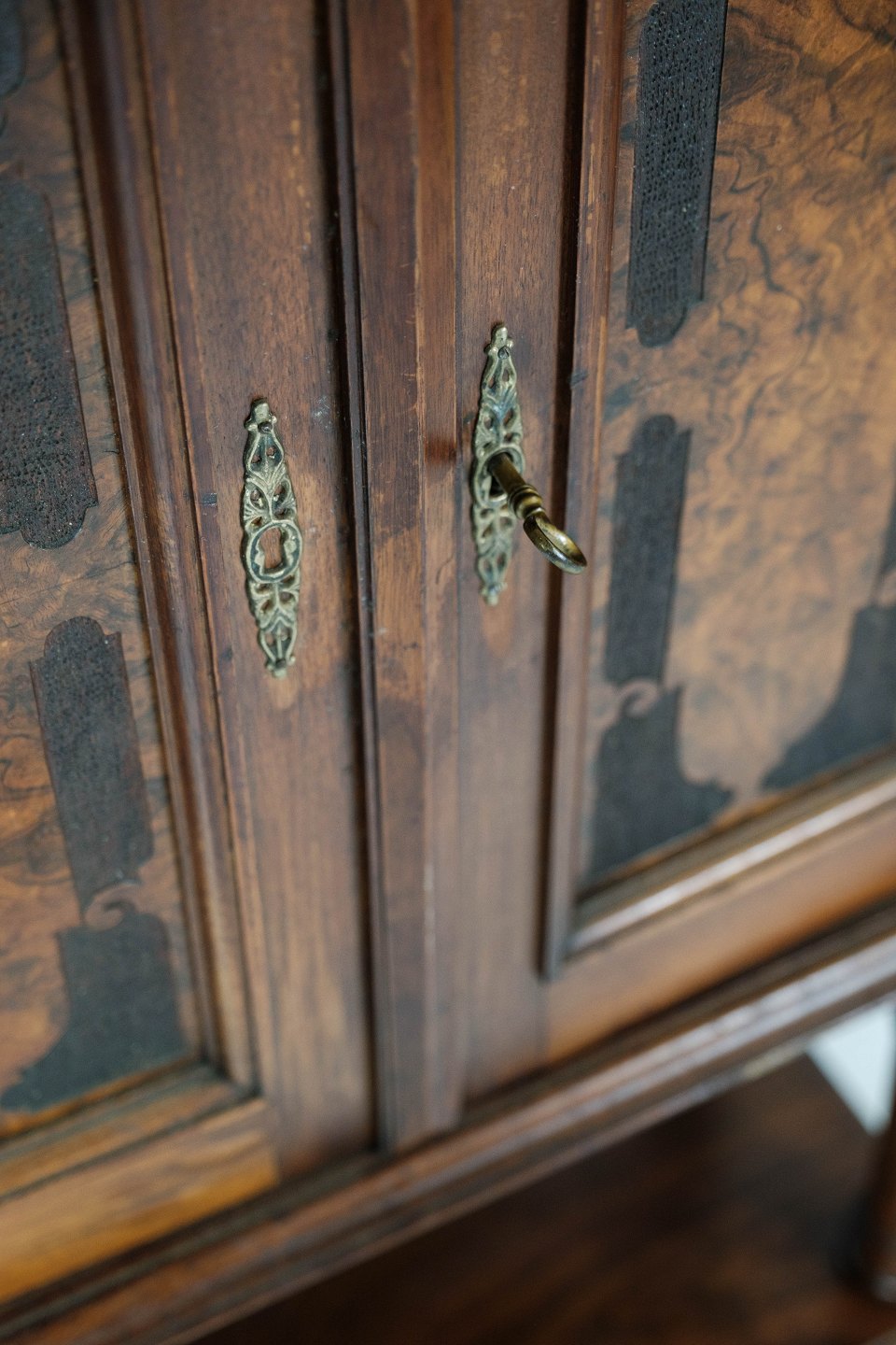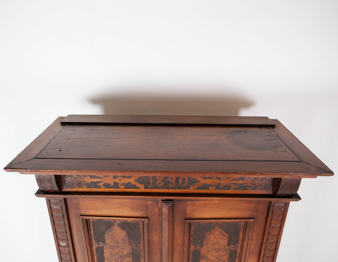Large cabinet of mahogany and walnut decorated with carvings, in great antique condition from the 1860s.