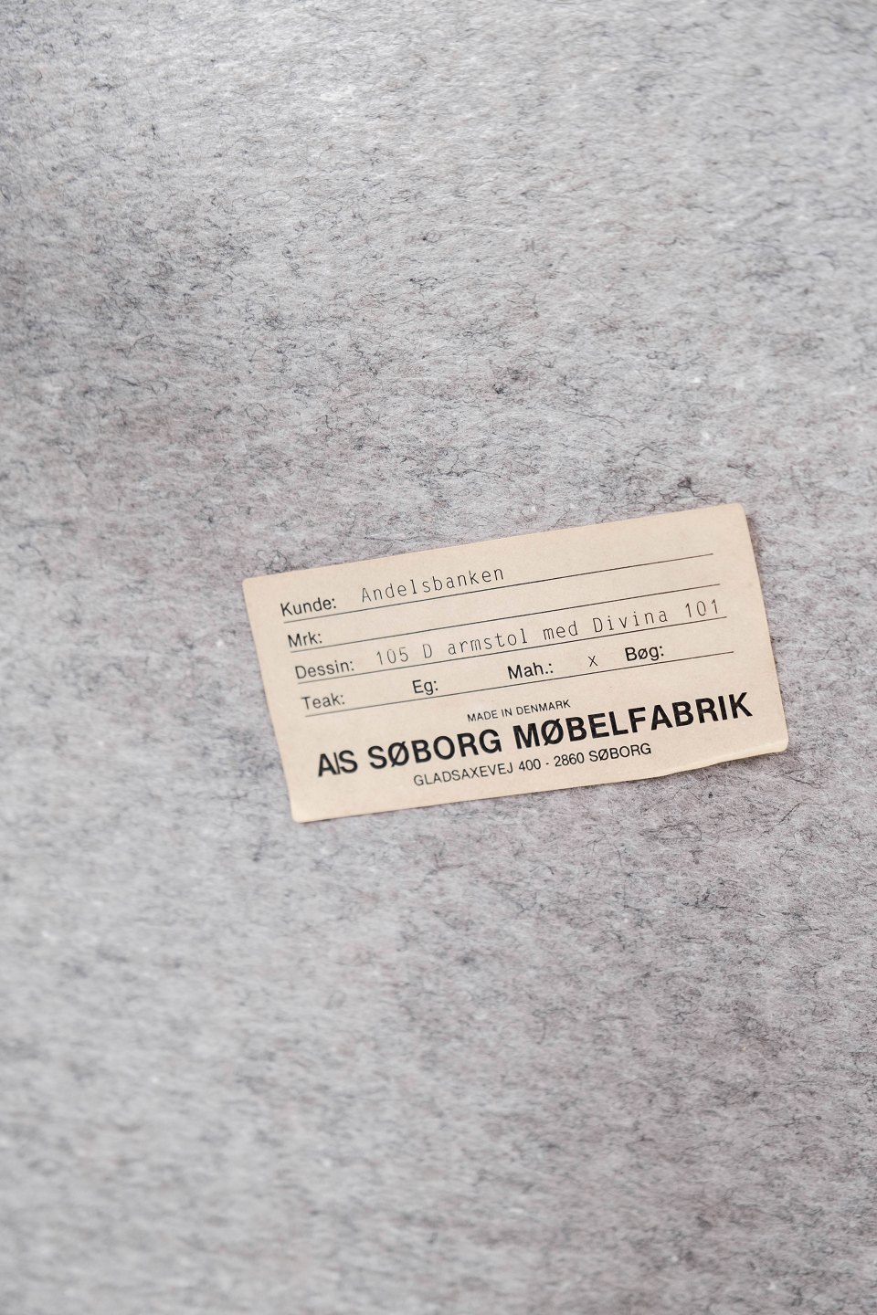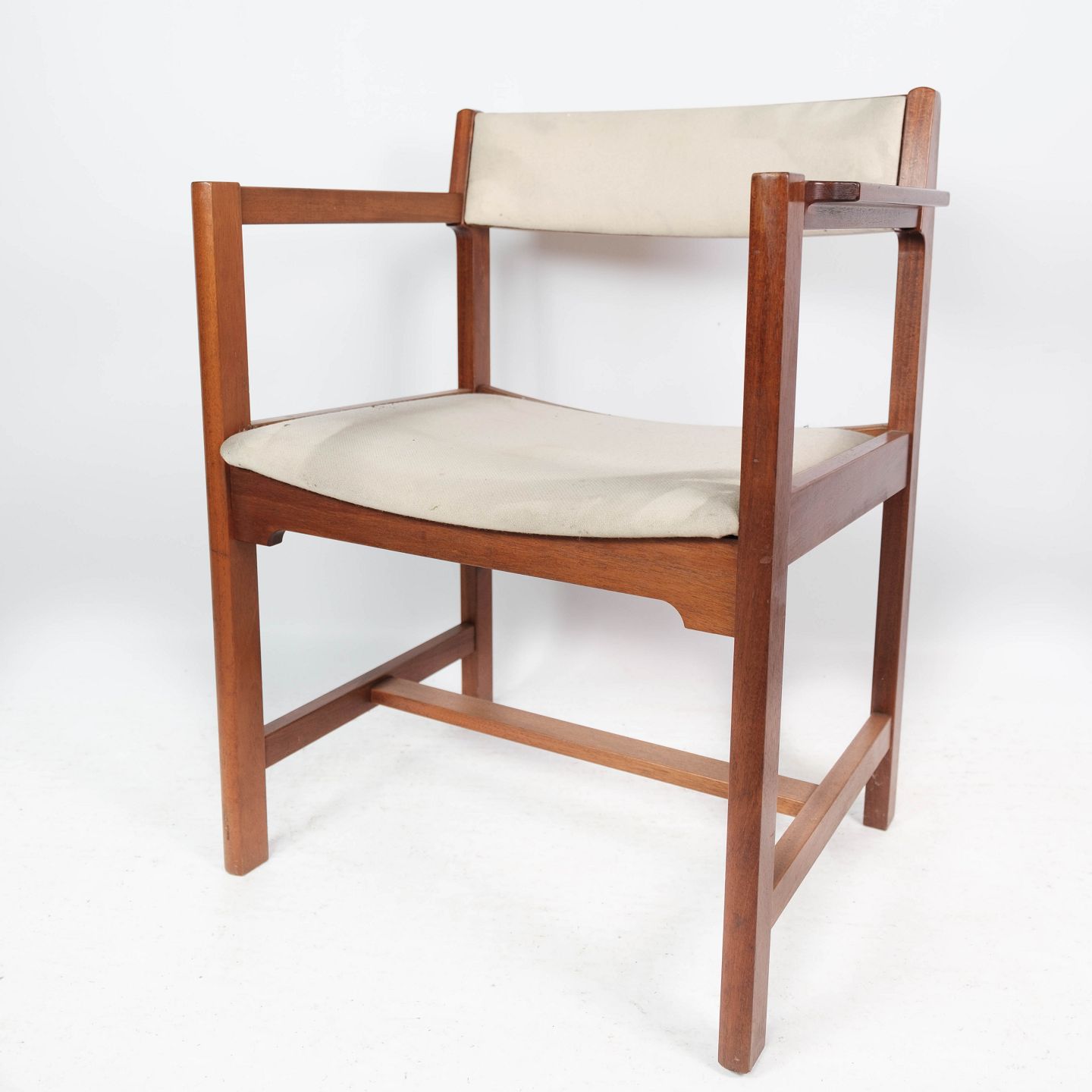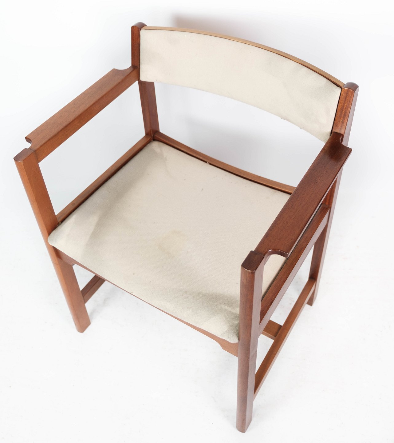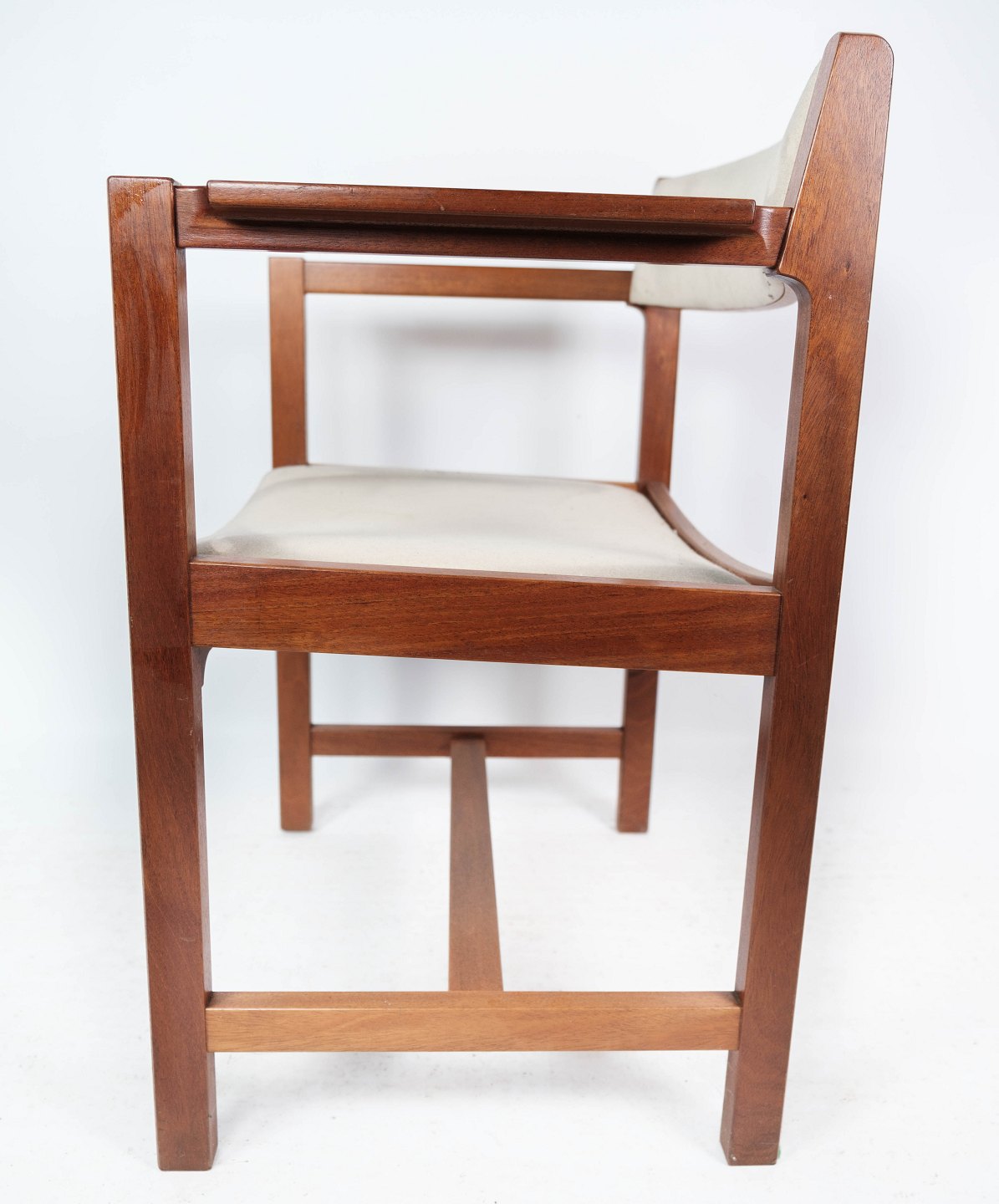 Armchair in mahogany and light fabric of Danish design manufactured by Søborg Furniture in the 1960s.