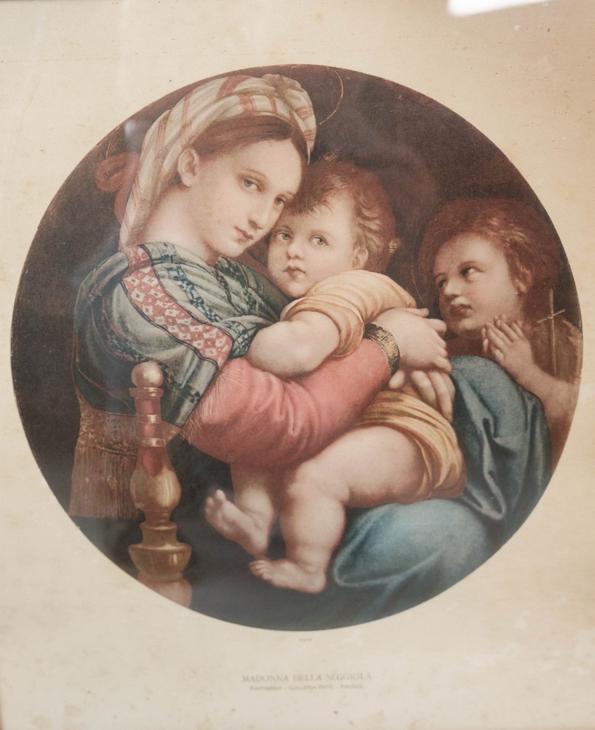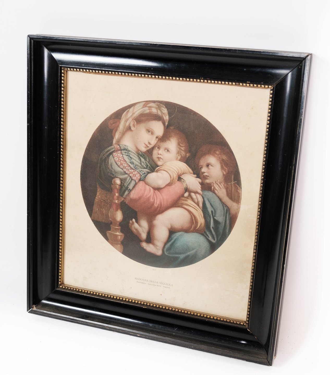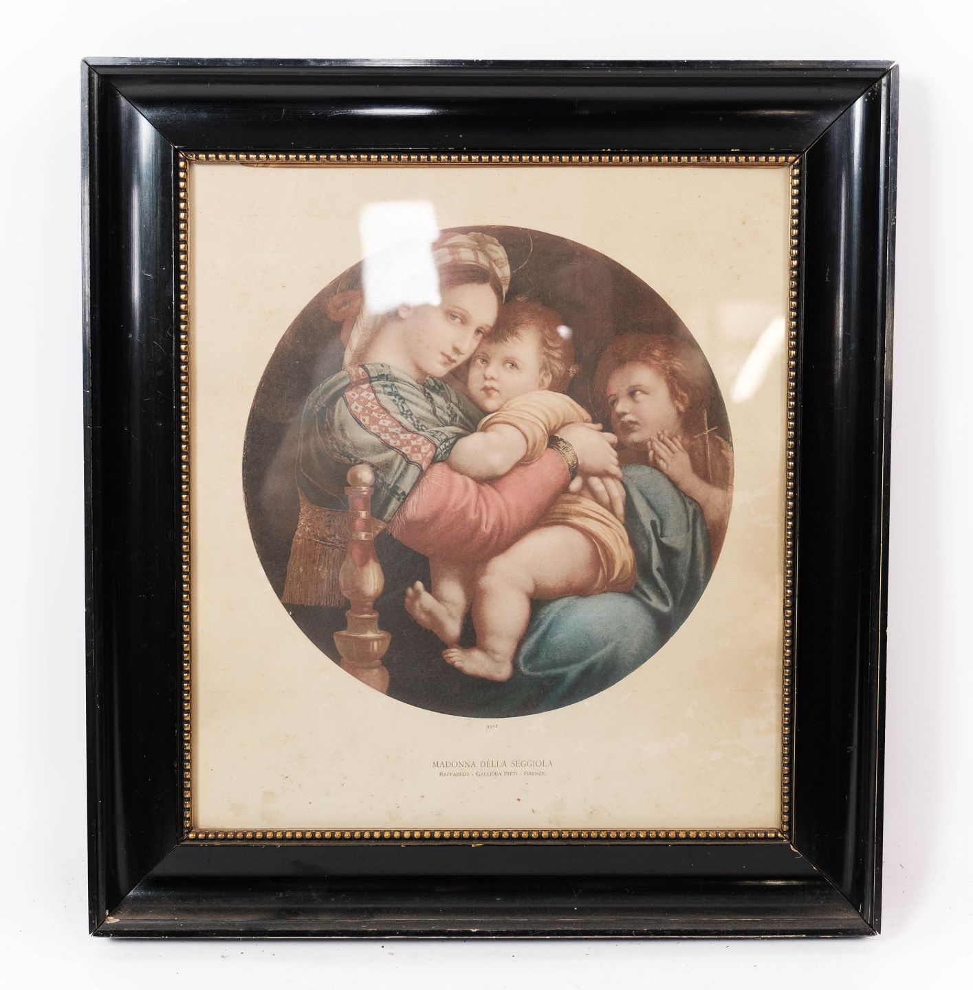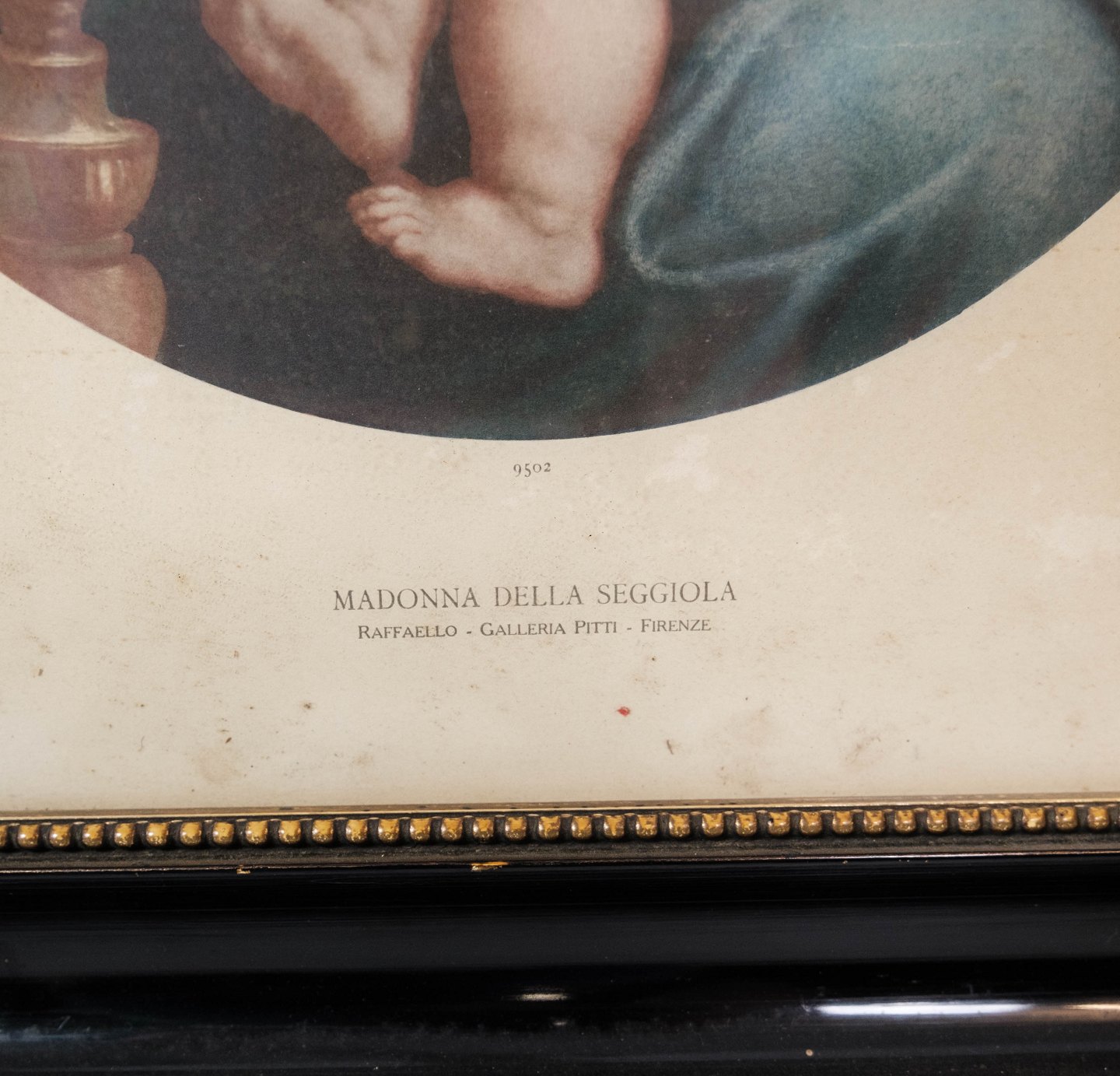 Tryk af Madonna Della Seggiola med sort ramme fra 1940erne.