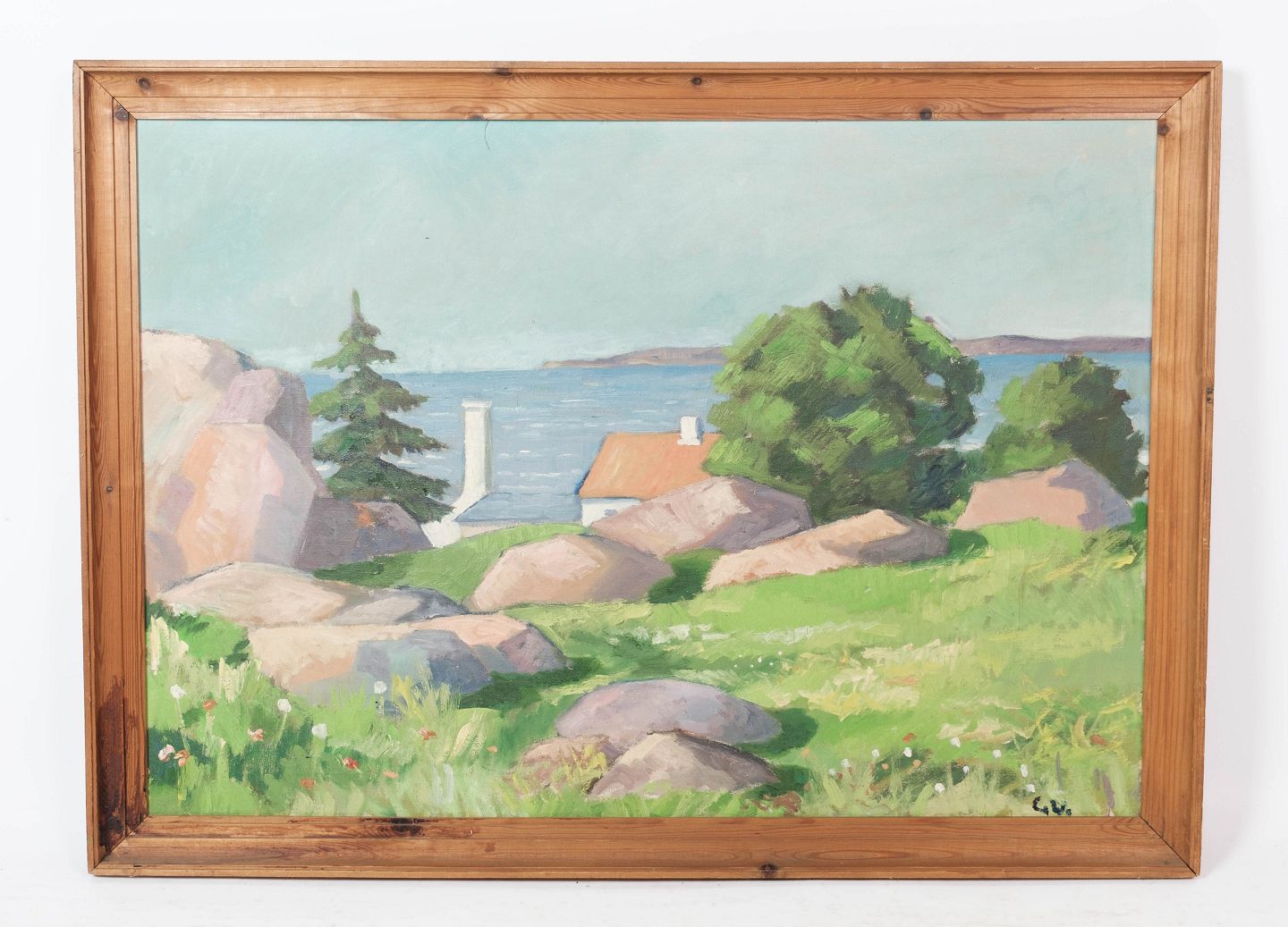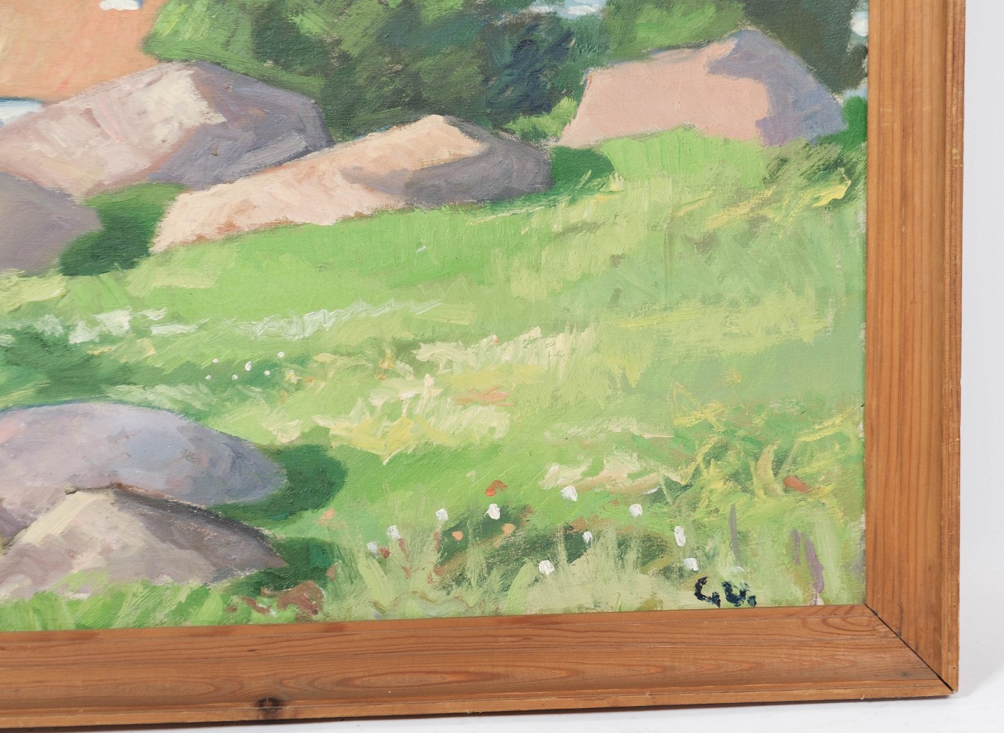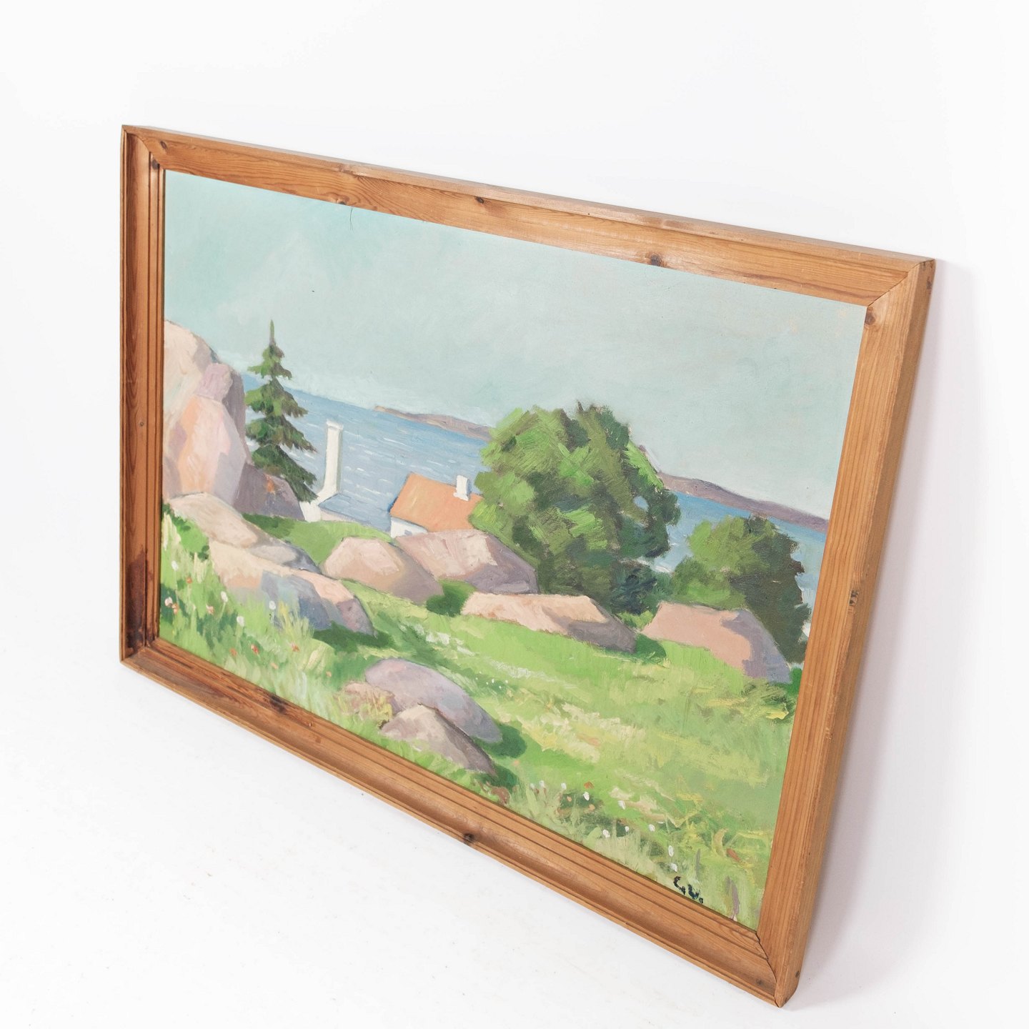 SoldPainting on canvas with nature motif and gilded frame, signed CK from the 1950s.