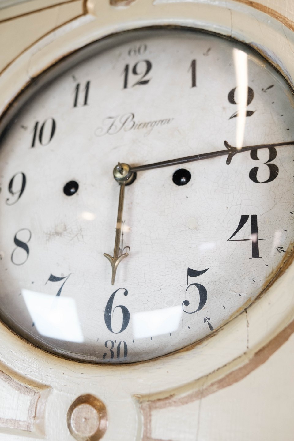 Bornholmerur af hvid malet træ og dekoreret med guld, i flot antik stand fra 1820erne.