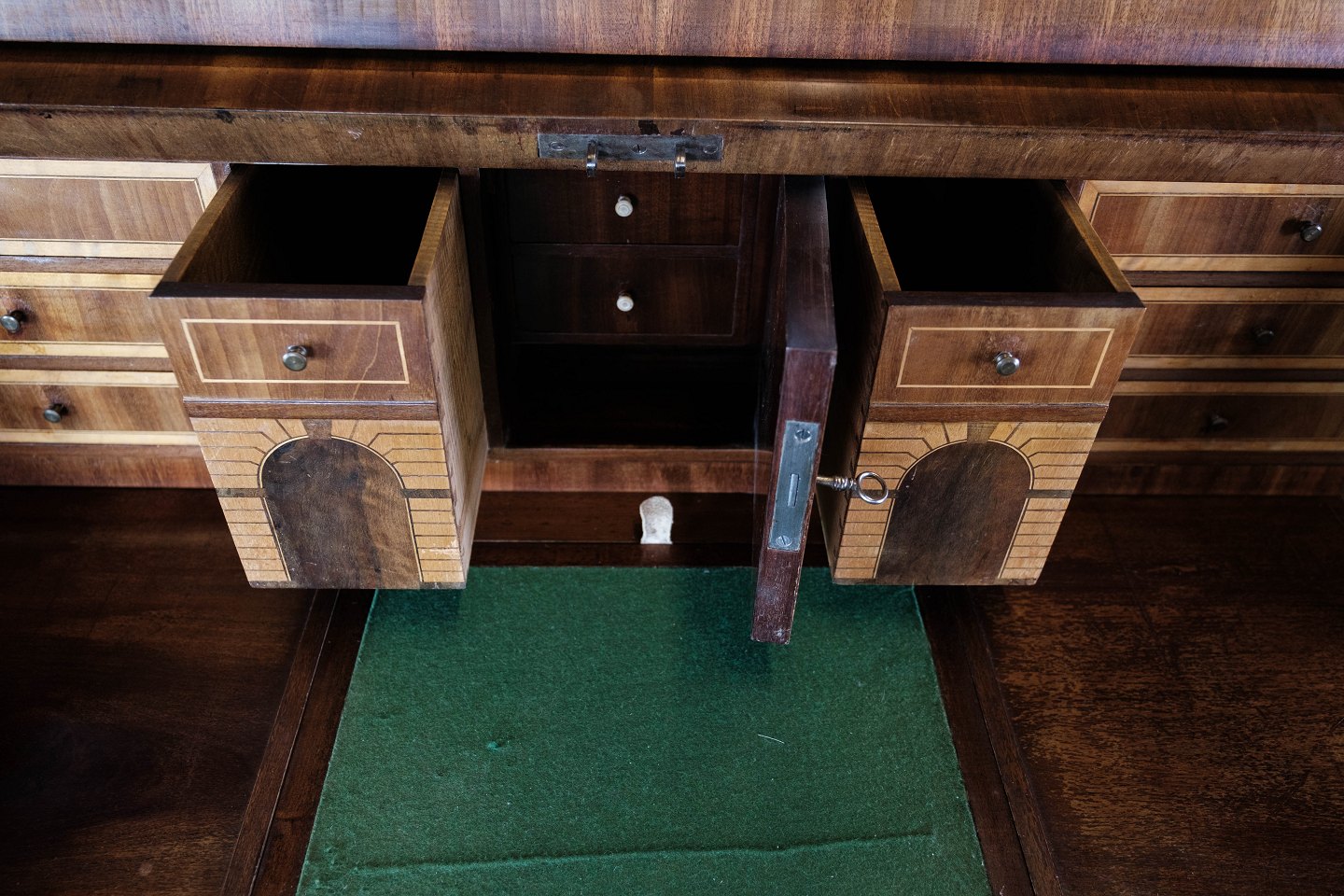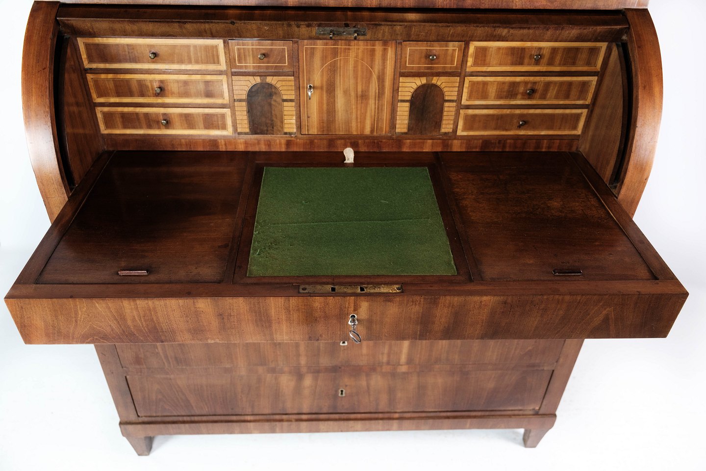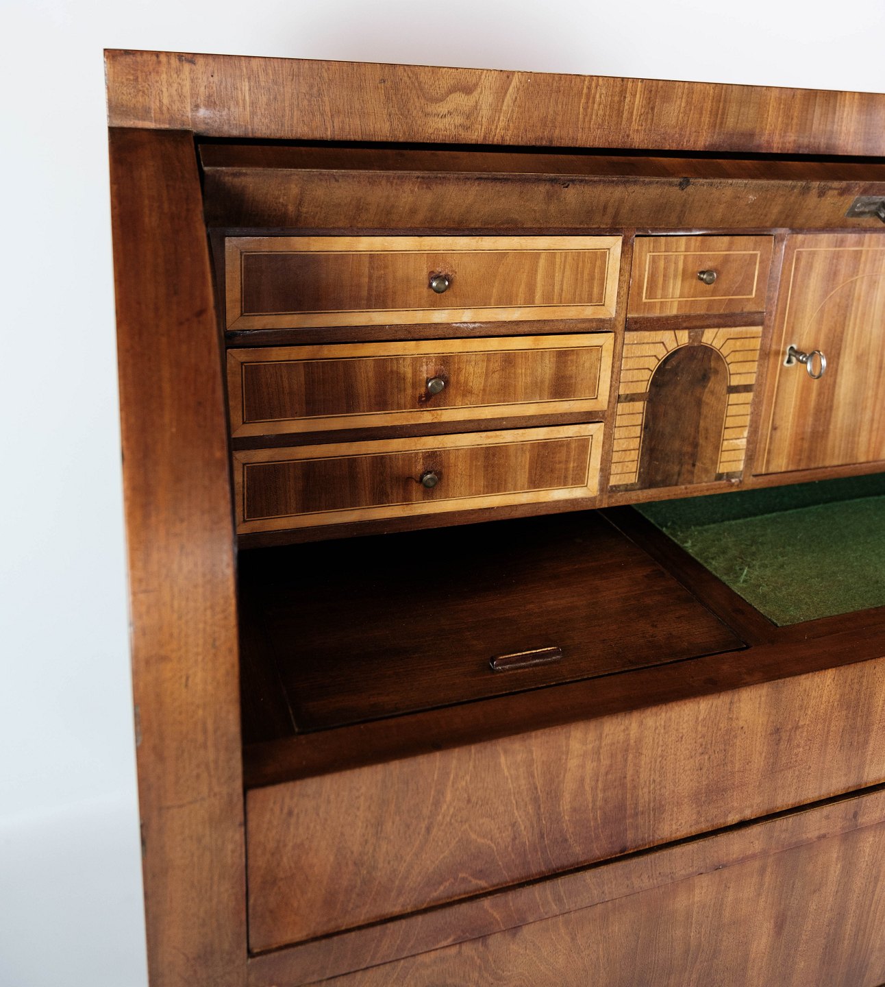 SoldEmpire bureau of mahogany with inlaid wood, in great antique condition from the 1840s.