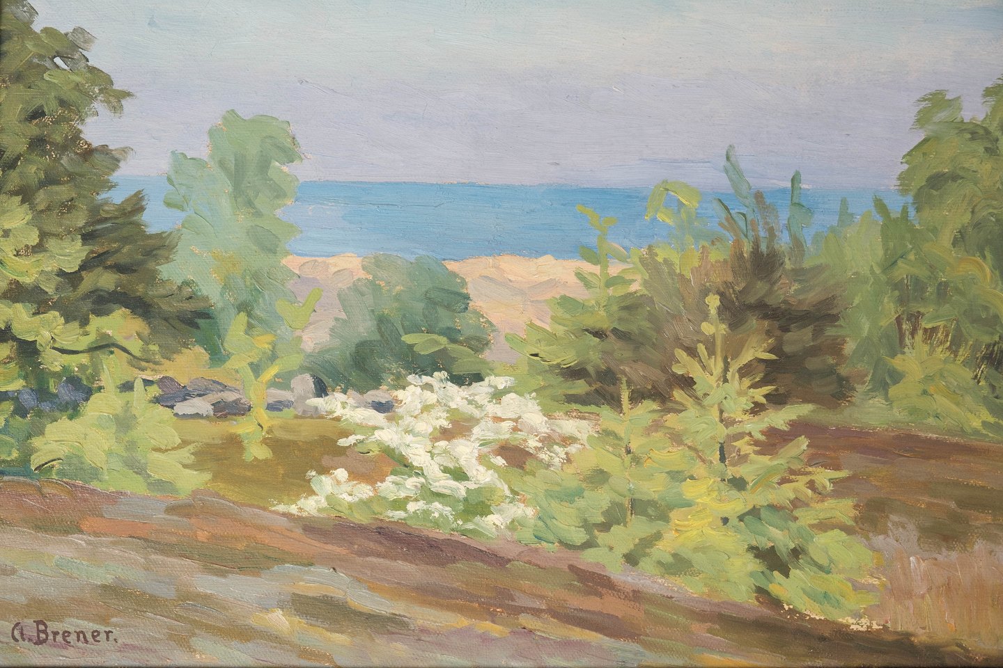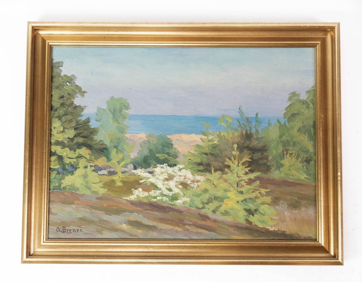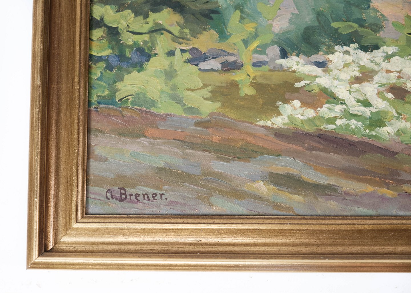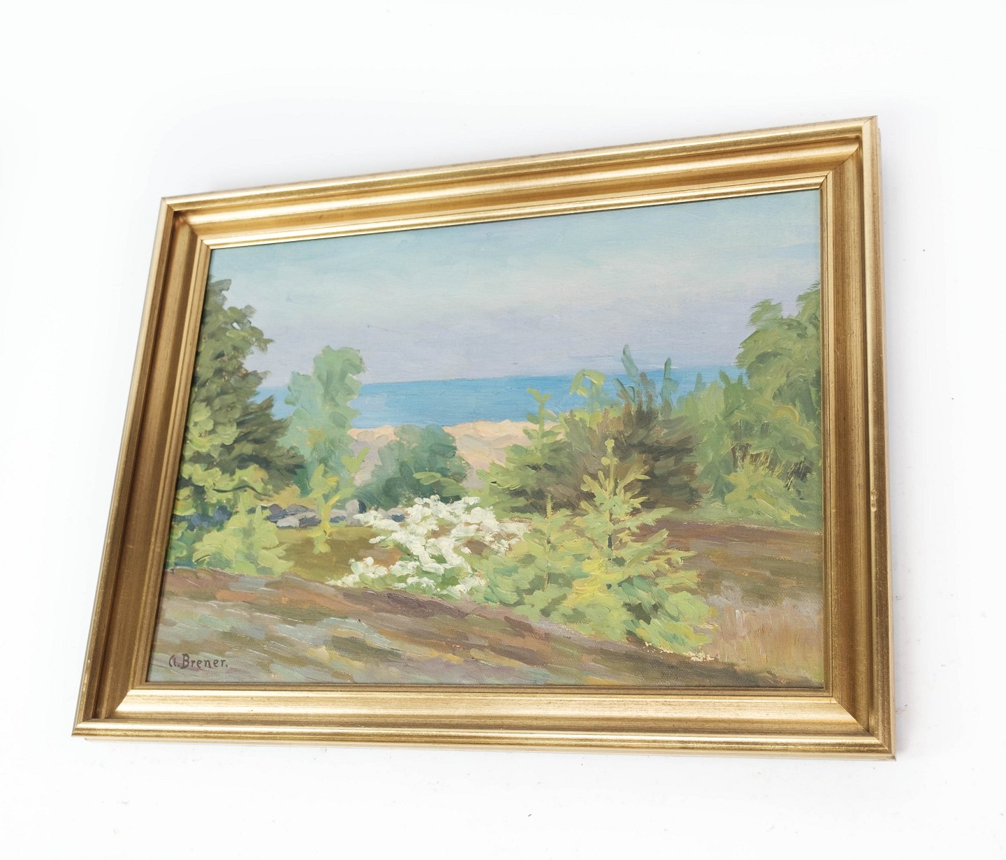 Painting on canvas with nature motif with gilded frame signed by Arthur Brener from the 1940s.