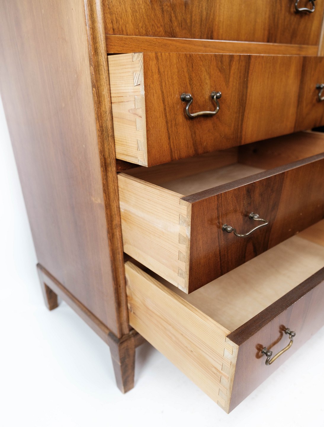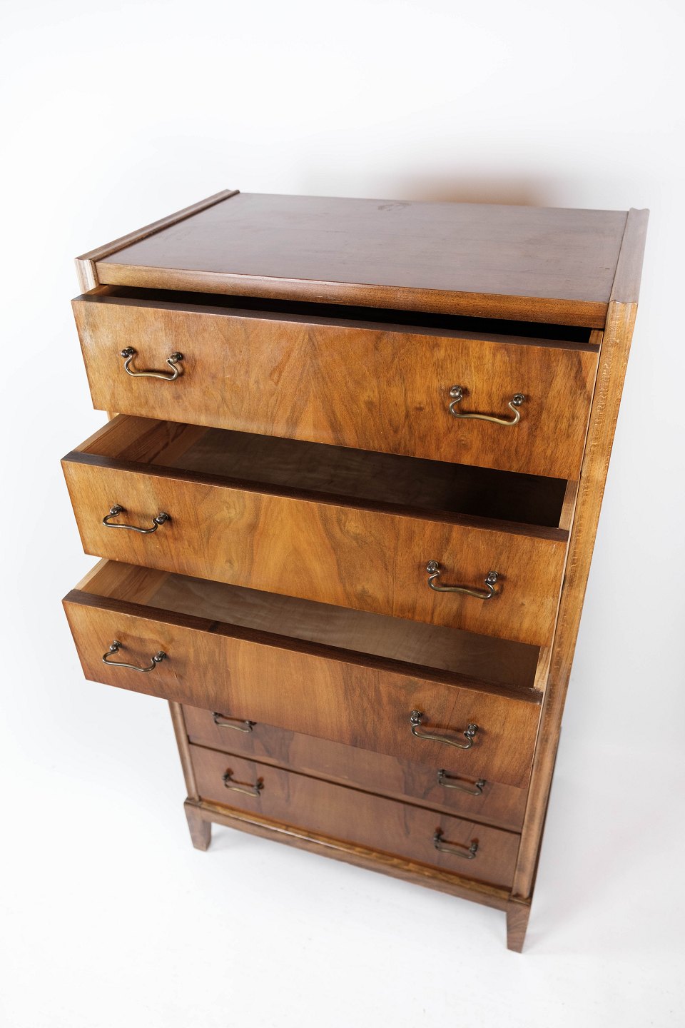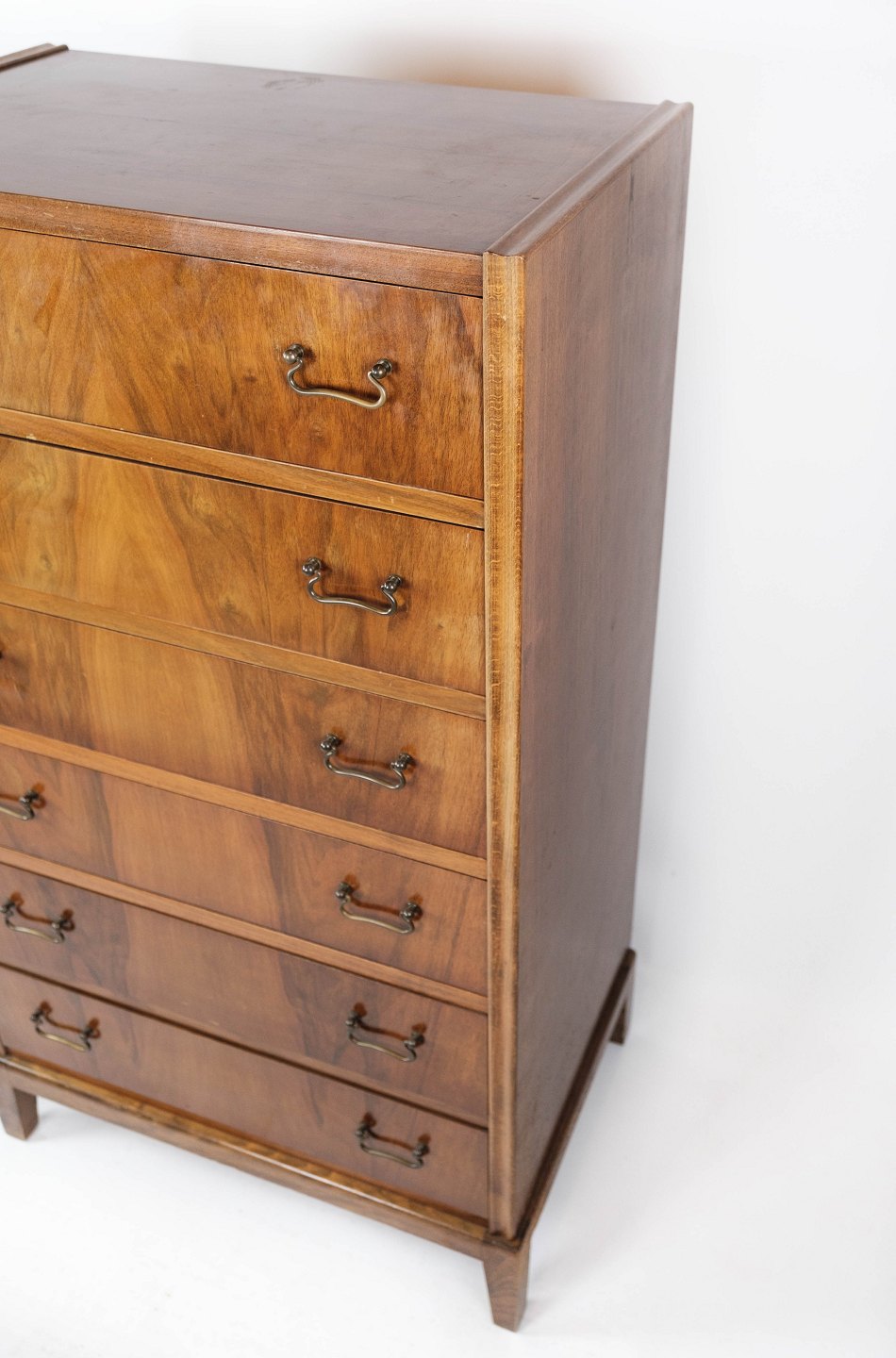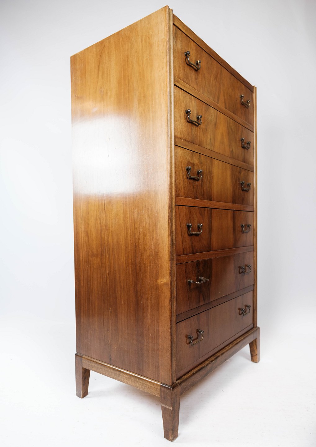 SolgtKommode med seks skuffer af nøddetræ designet af Frits Henningsen fra 1940erne. Kommoden er i flot brugt stand.
