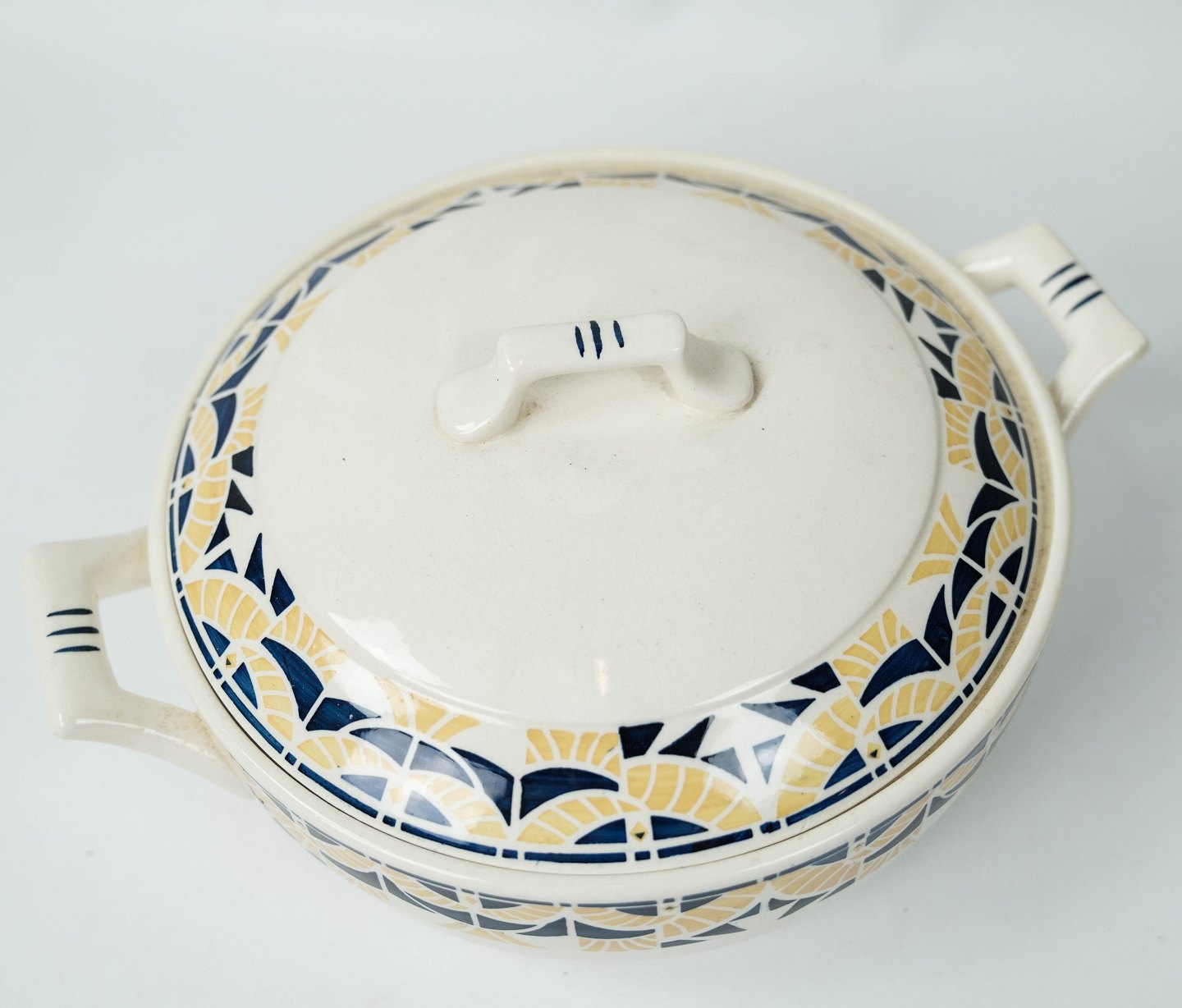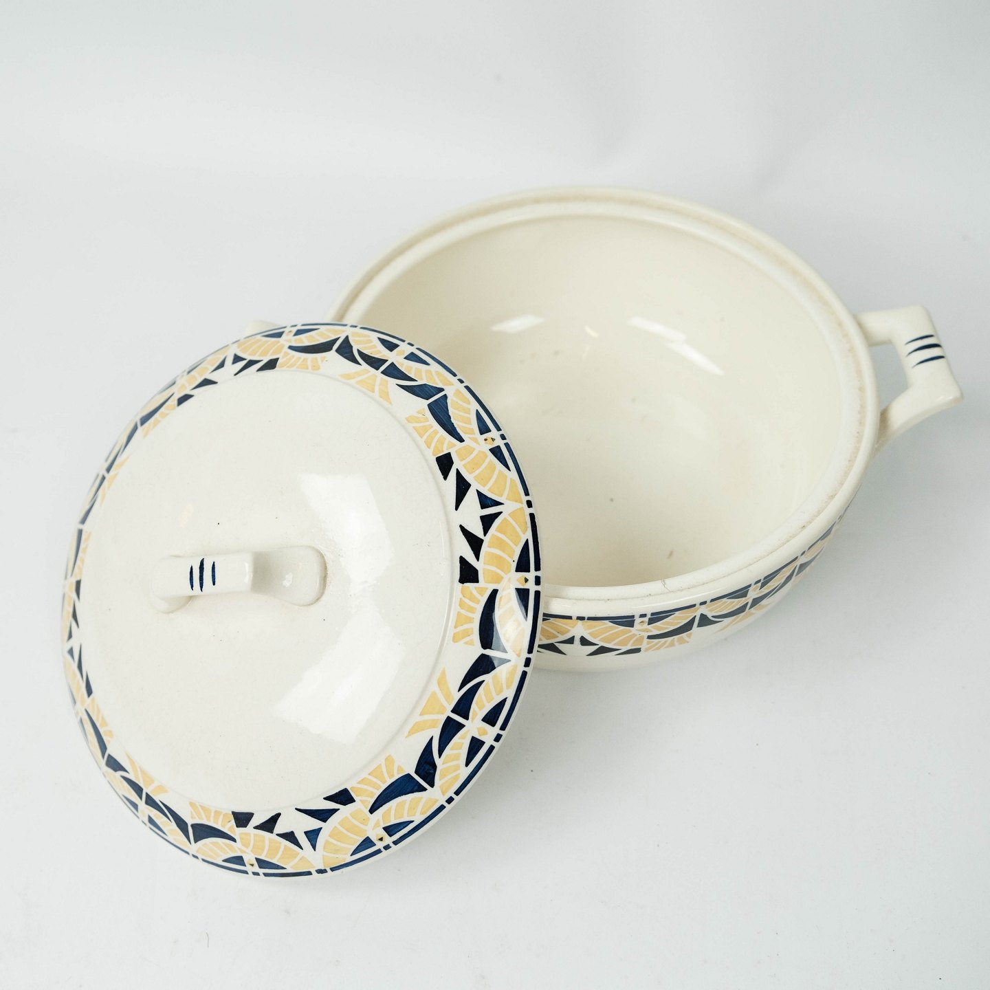 Terrin dekoreret med gule og blå farver fra 1960erne.