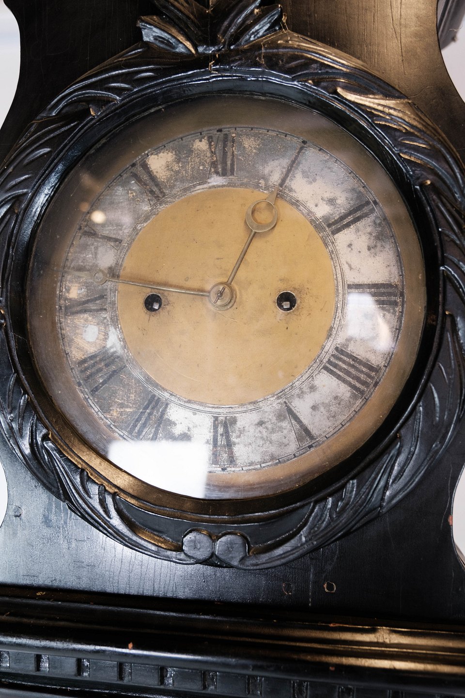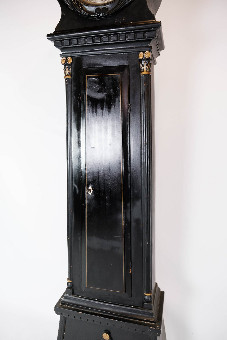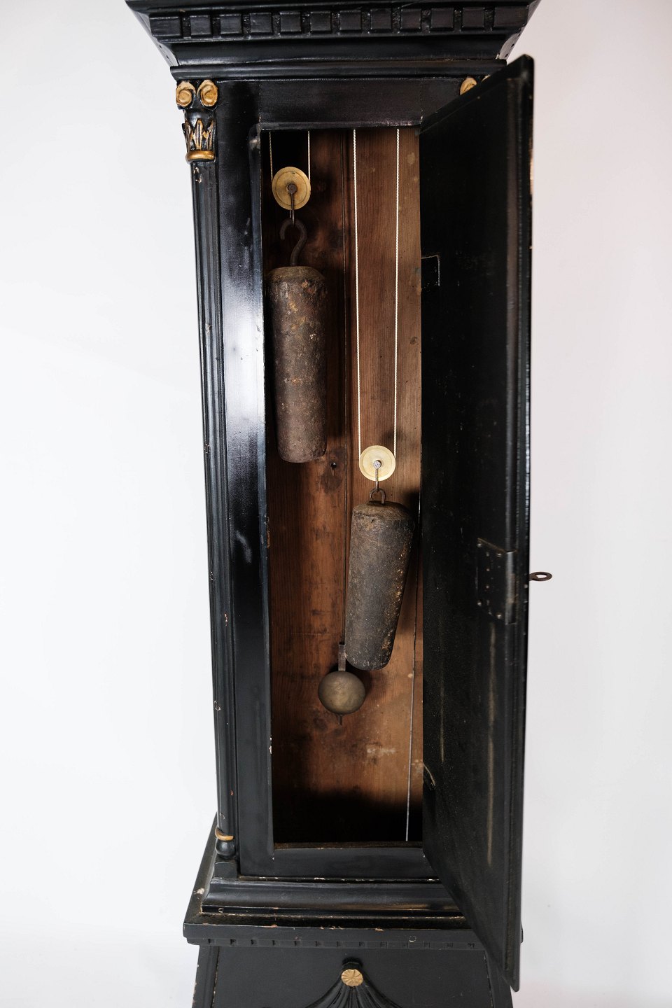 Grandfather clock of black painted wood, in great antique condition from the 1790s.