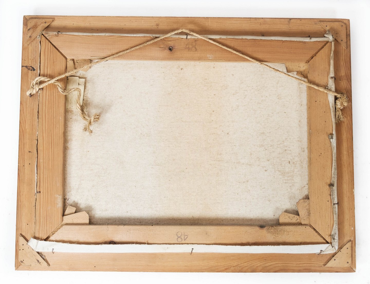 Maleri på lærred med natur motiv og forgyldt ramme, signeret S.H.N. fra 1920erne.