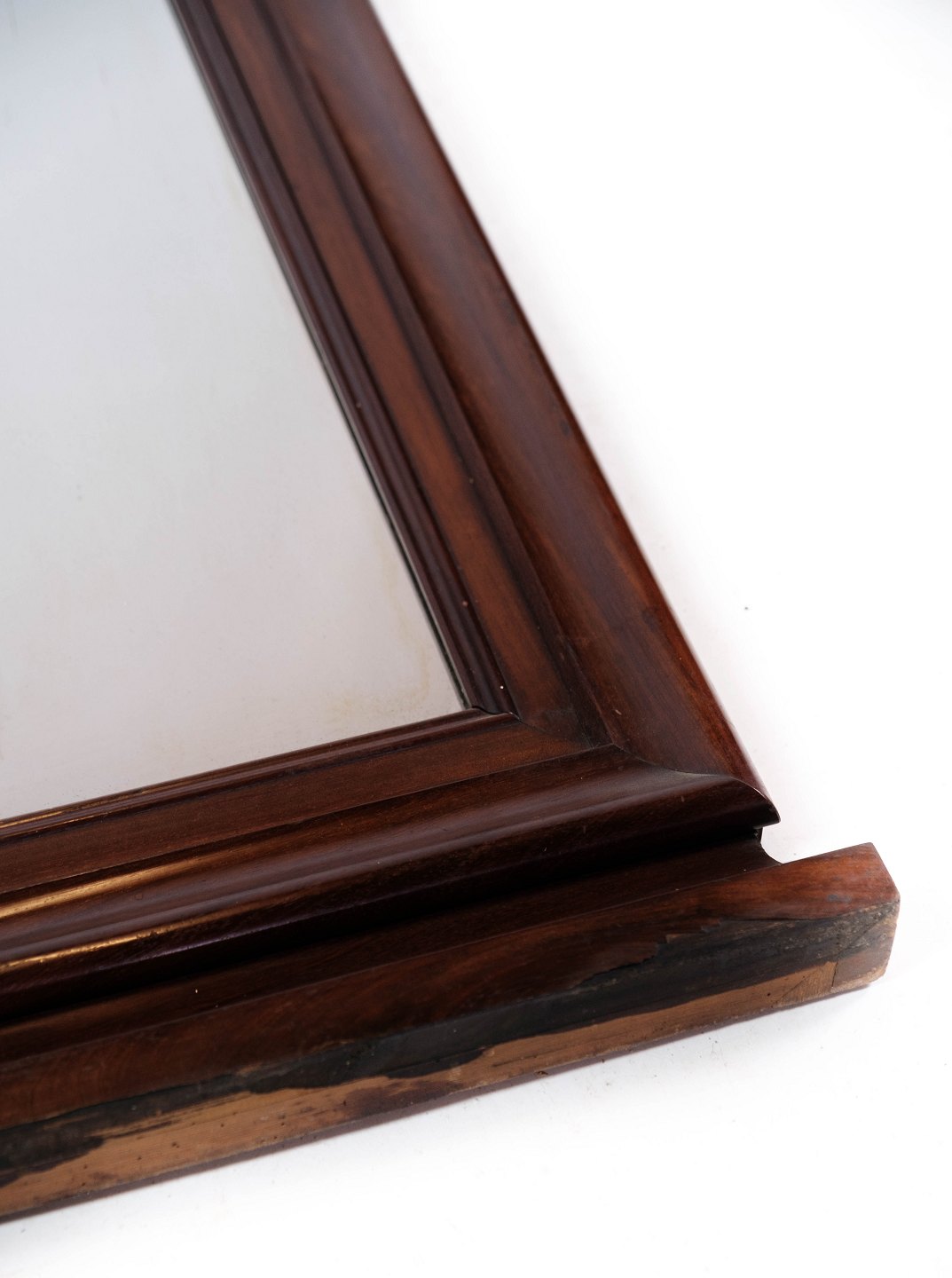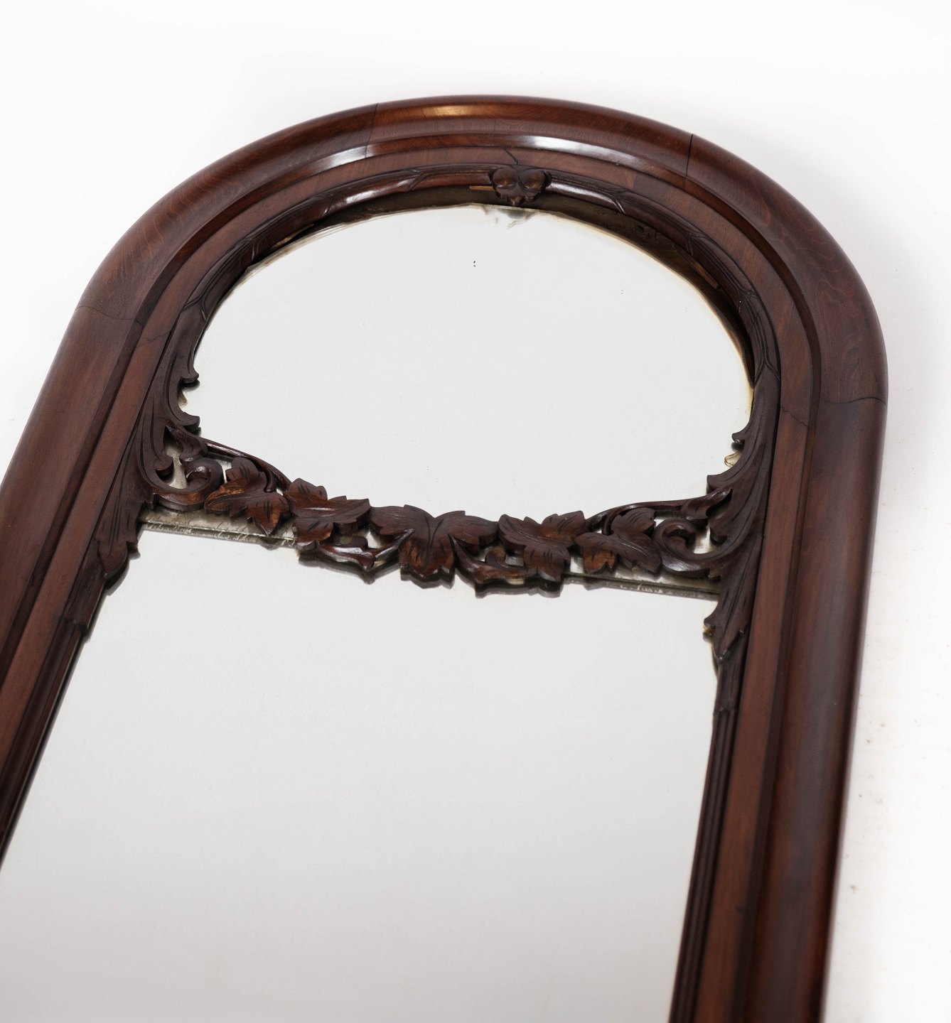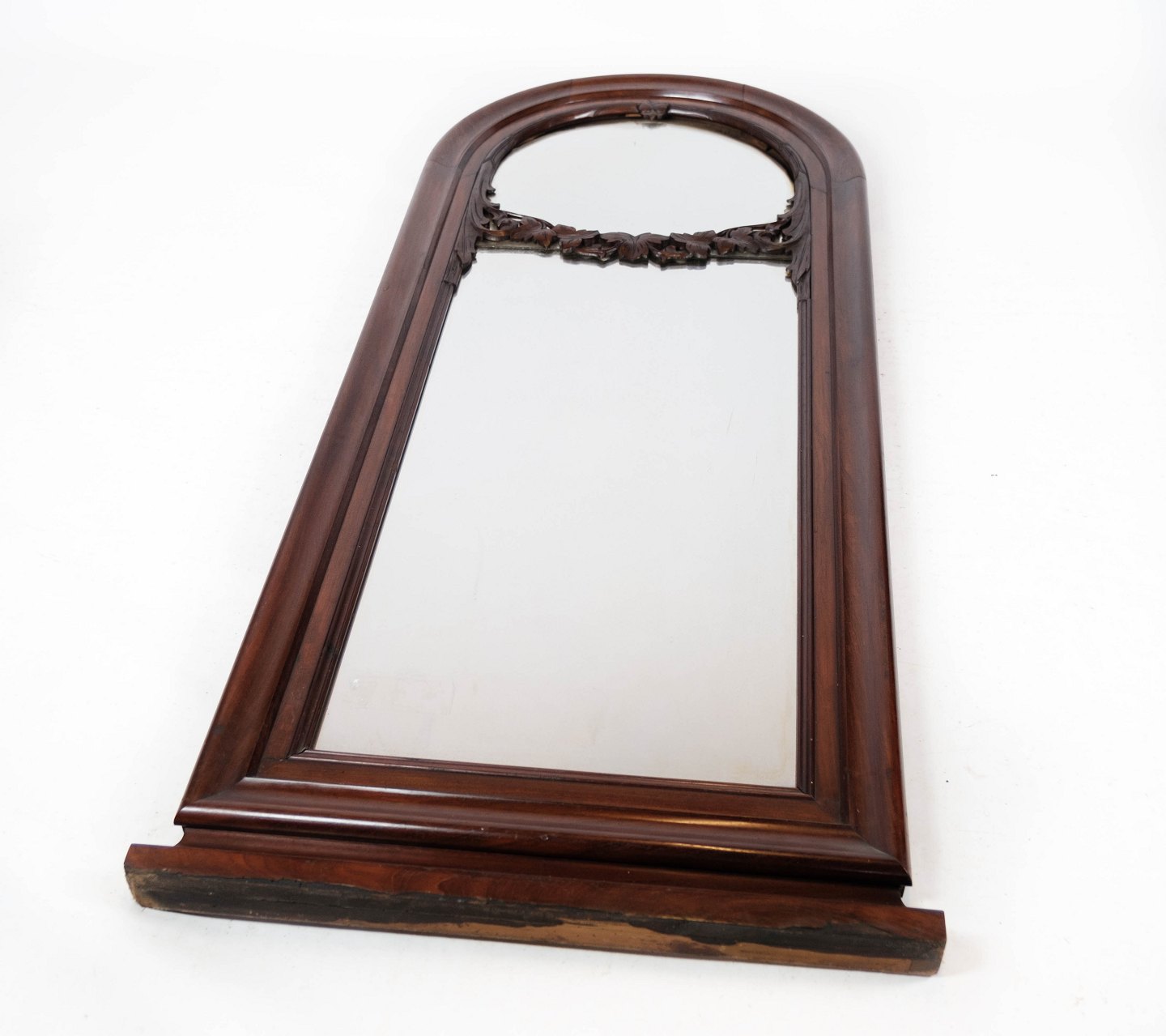 Spejl af mahogni dekoreret med udskæringer, i flot antik stand fra 1860erne.