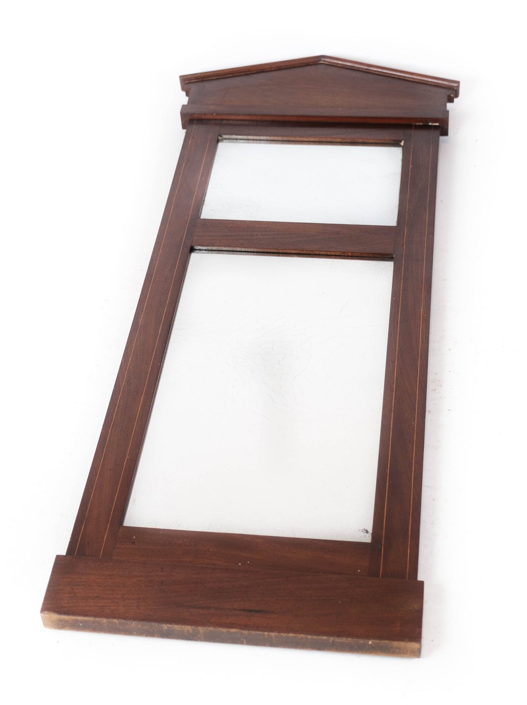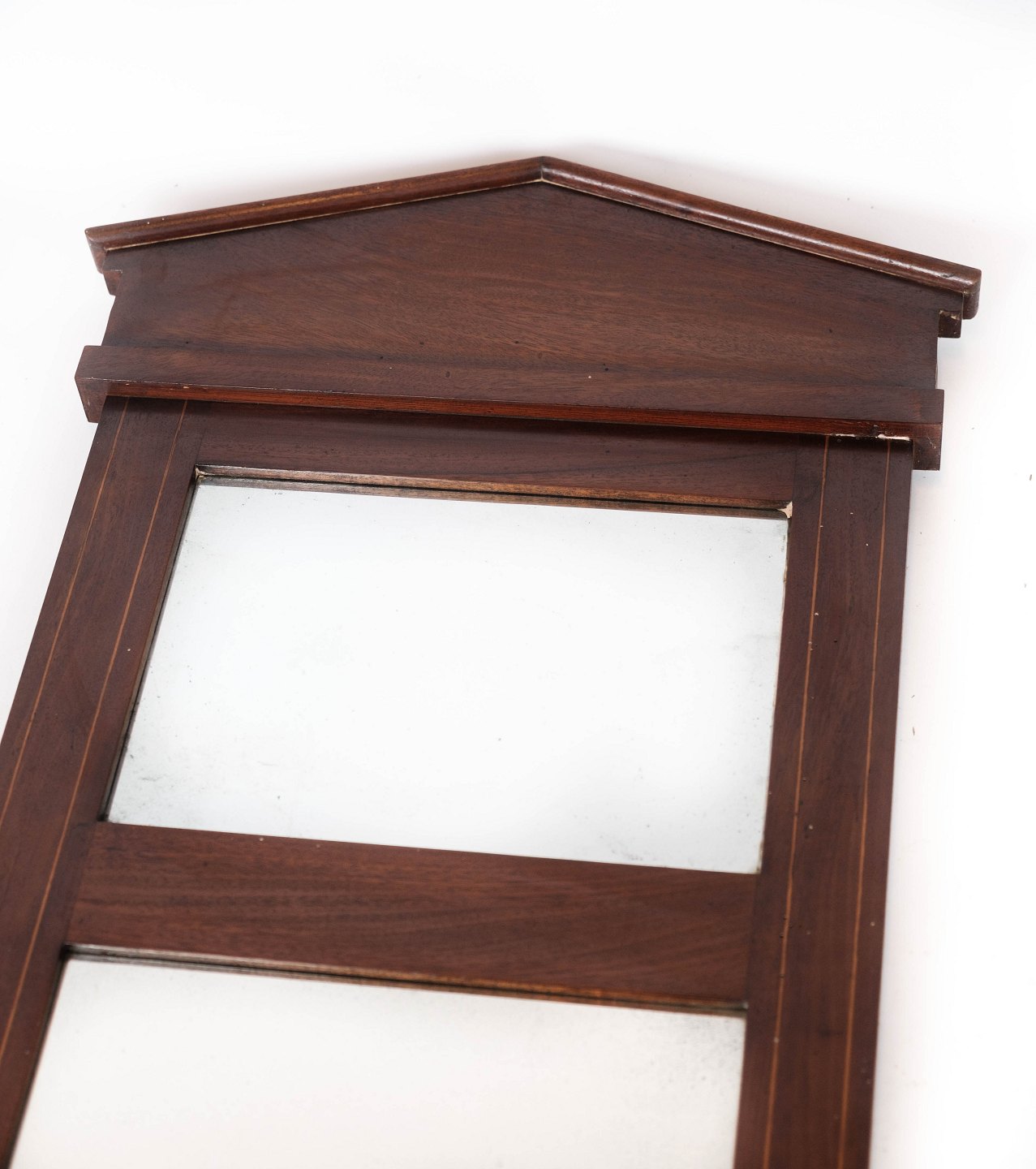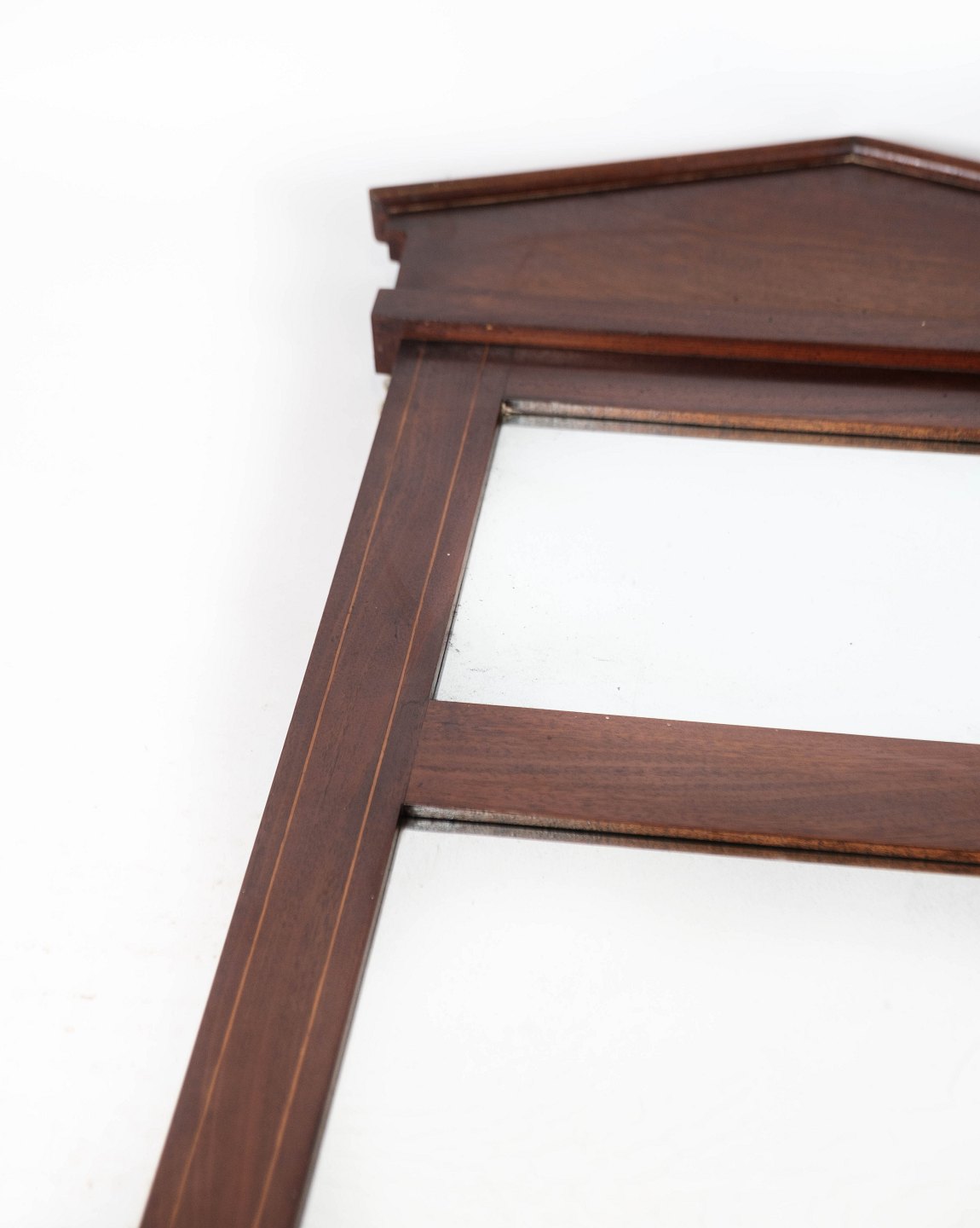 Højt spejl af mahogni, i flot antik stand.