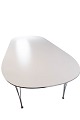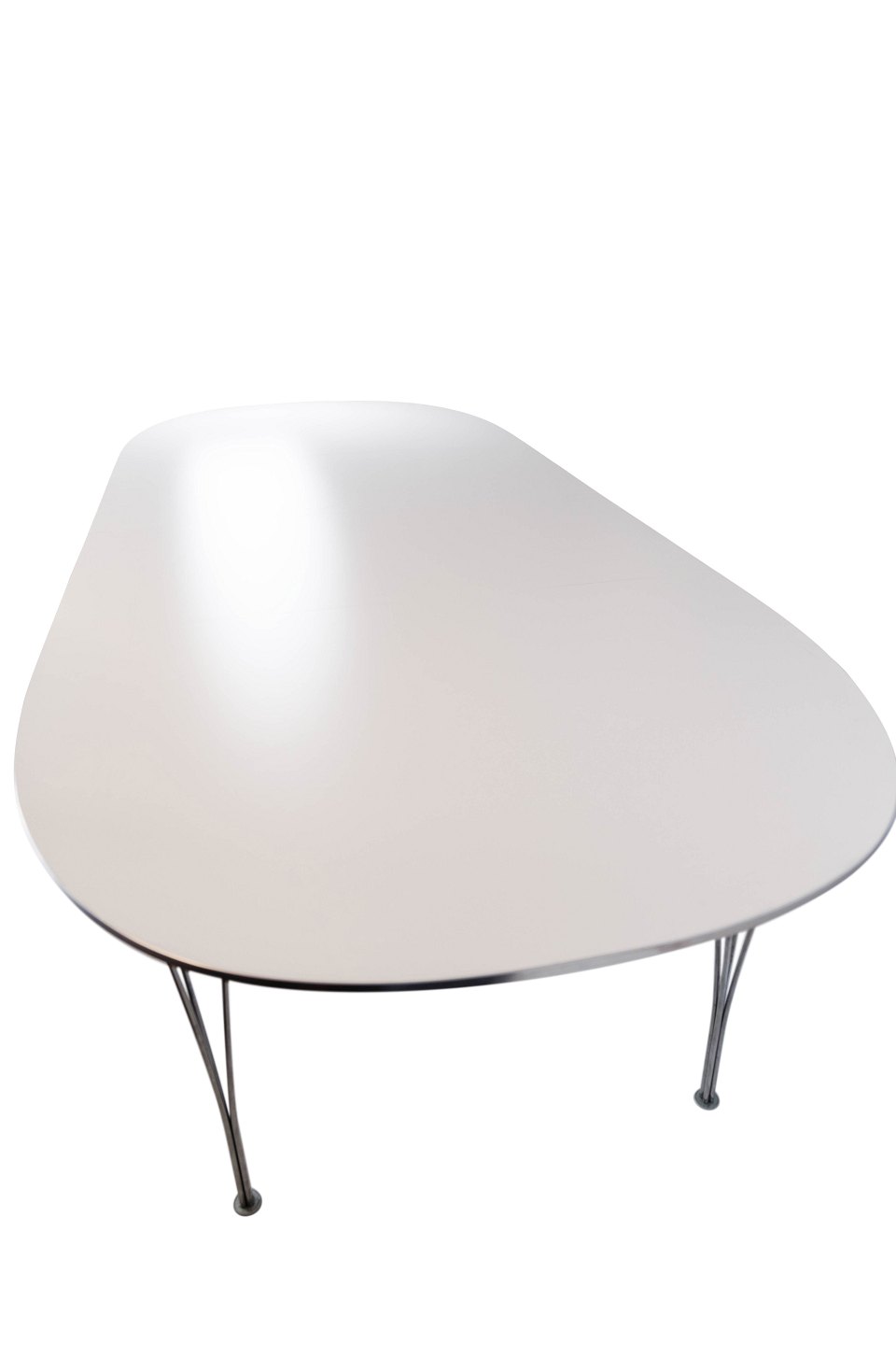 Super Ellipse spisebord med hvid laminat designet af Piet Hein og Arne Jacobsen, samt fremstillet af Fritz Hansen i 1998.