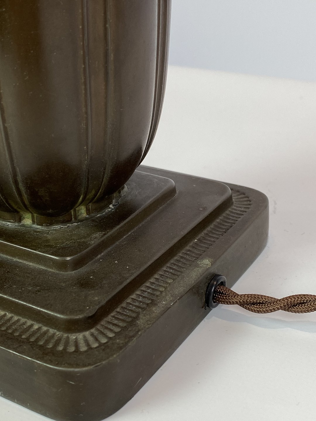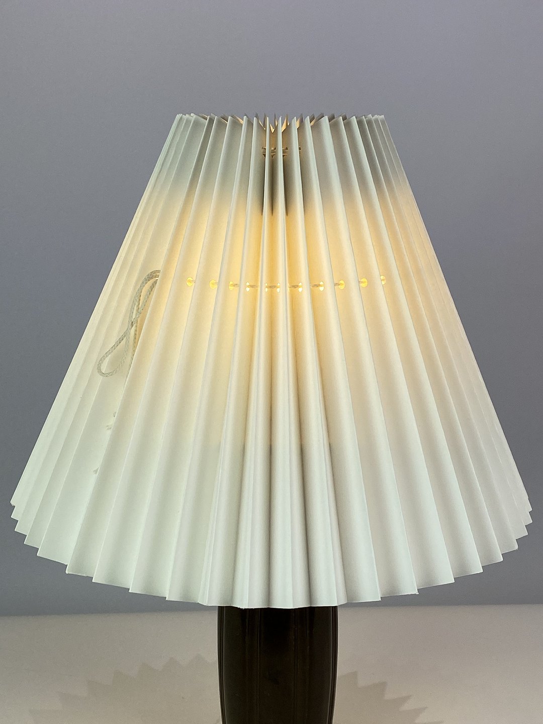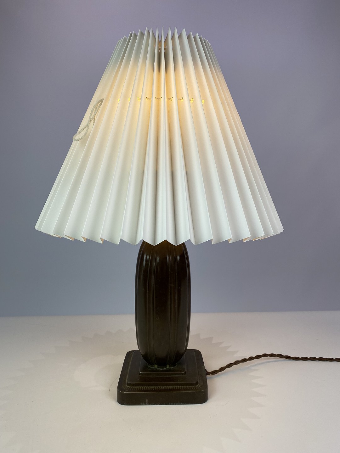 SoldTable lamp of disco-metal by Just Andersen with paper shade, from the 1930s. The lamp is in great vintage condition.