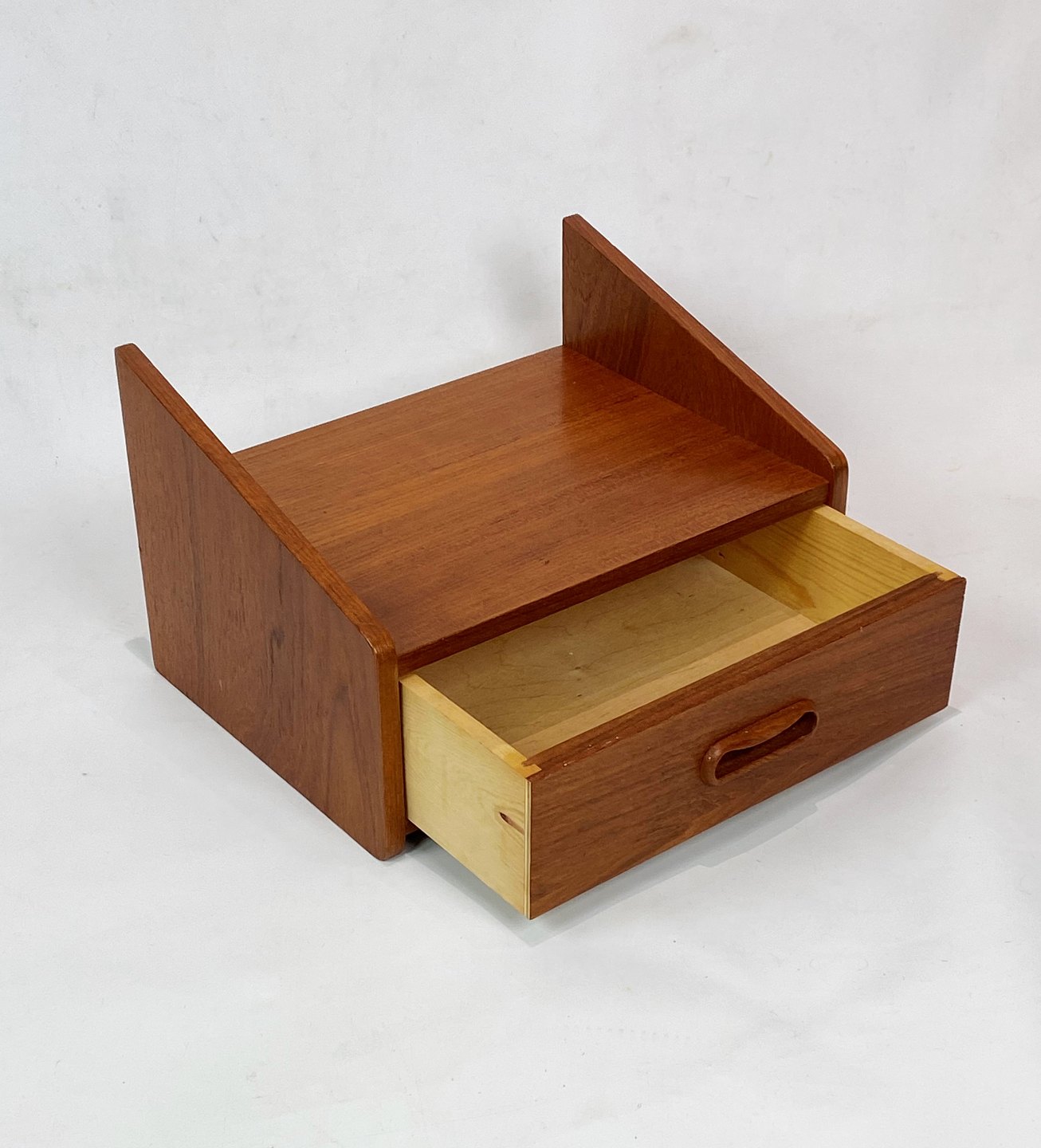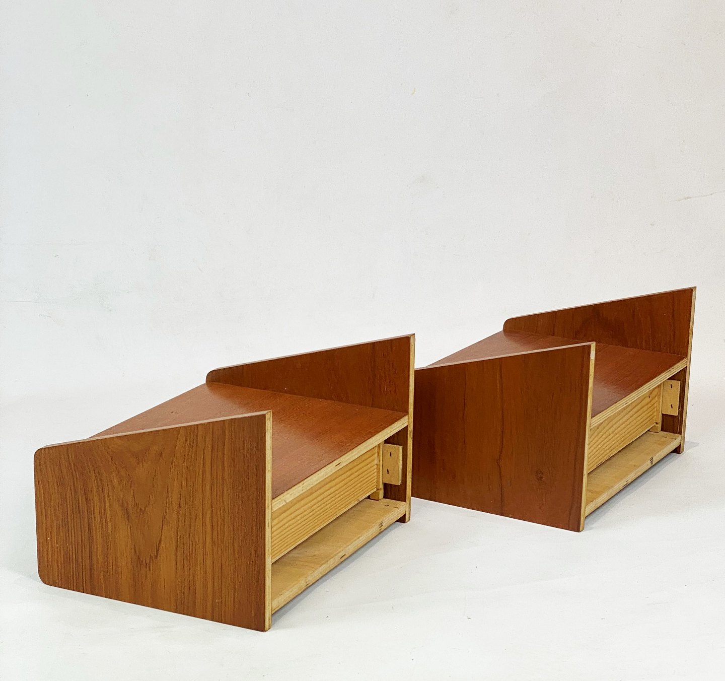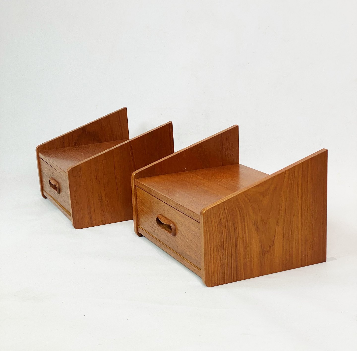 A set of bedside tables with drawer in teak of Danish design from the 1960s. The items are in great vintage condition.