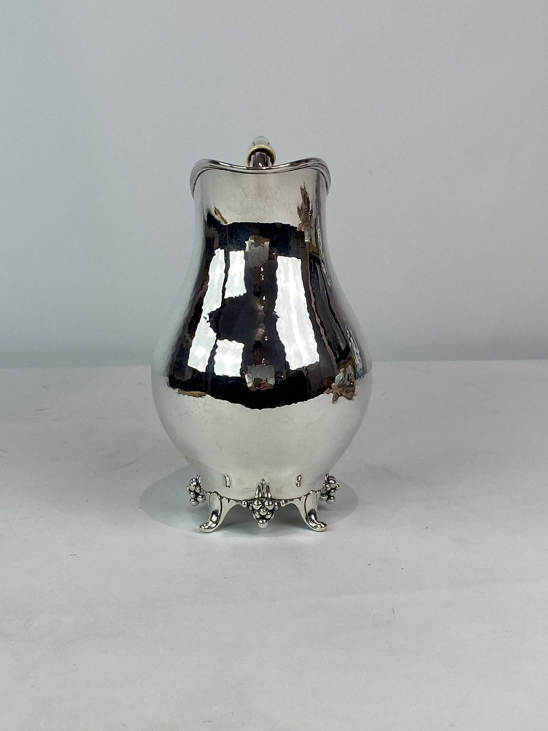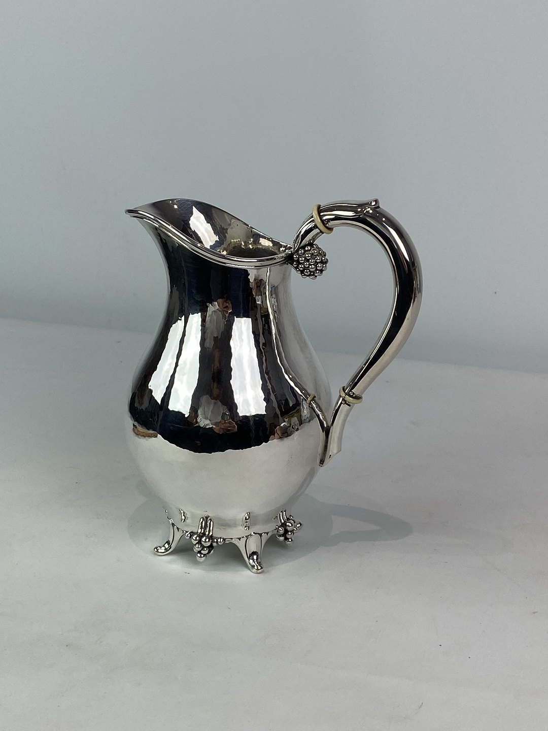 Vandkande på fødder dekoreret med ibenholt af tretårnet sølv, fra 1940erne. Kanden er i flot antik stand.