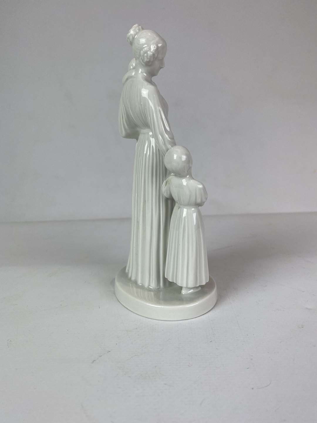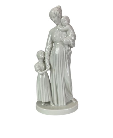 Kgl. hvid porcelænsfigur, dame med to børn. Denne figur er uden nummer, men ellers er dekorationsnummer 12159.