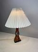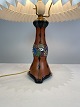 Keramik bordlampe med orange glasur og med papirskærm, fra 1960erne.