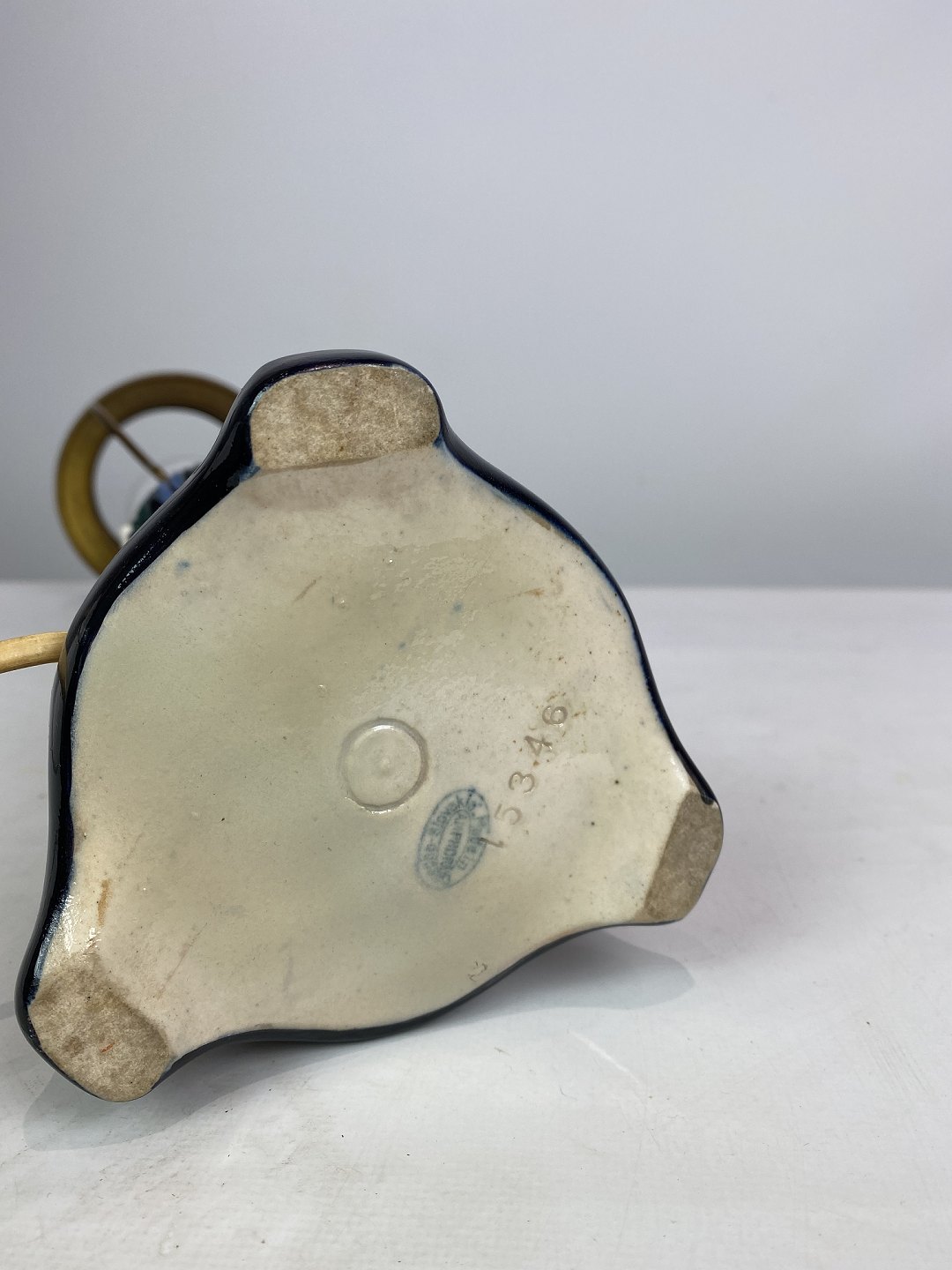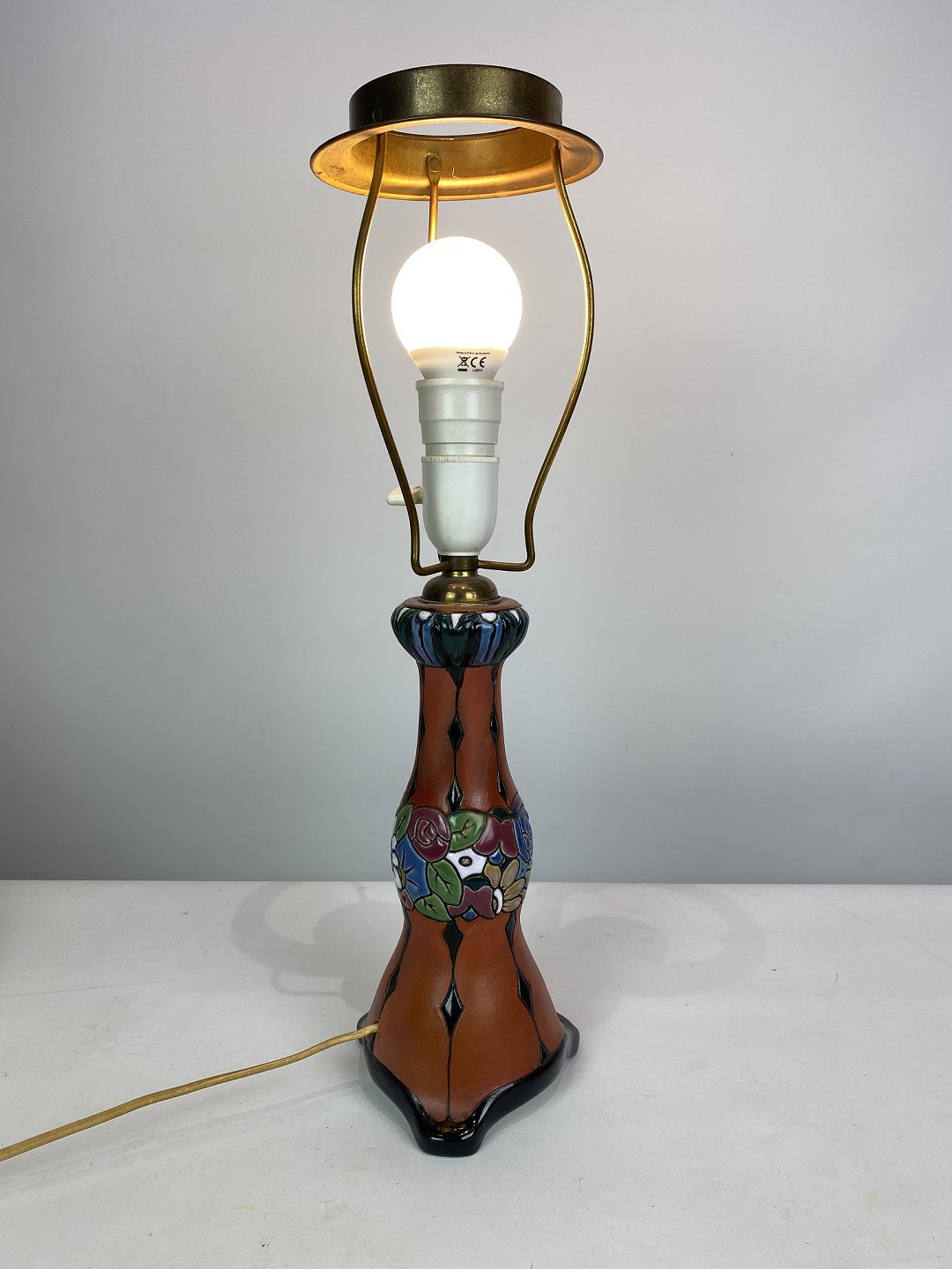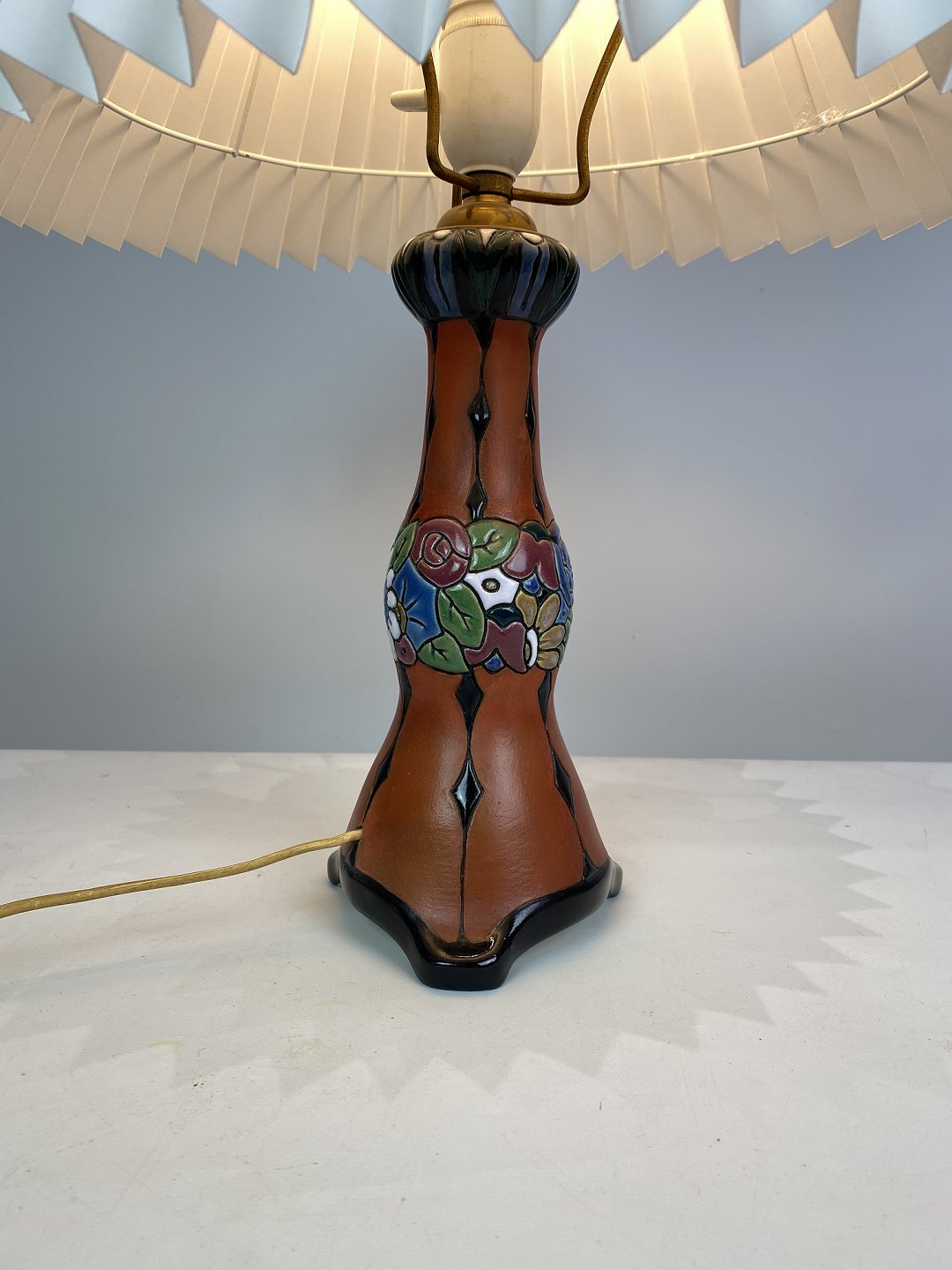 Keramik bordlampe med orange glasur og med papirskærm, fra 1960erne. Lampen er med dekorationsnummer 15346 og er i flot brugt stand.
