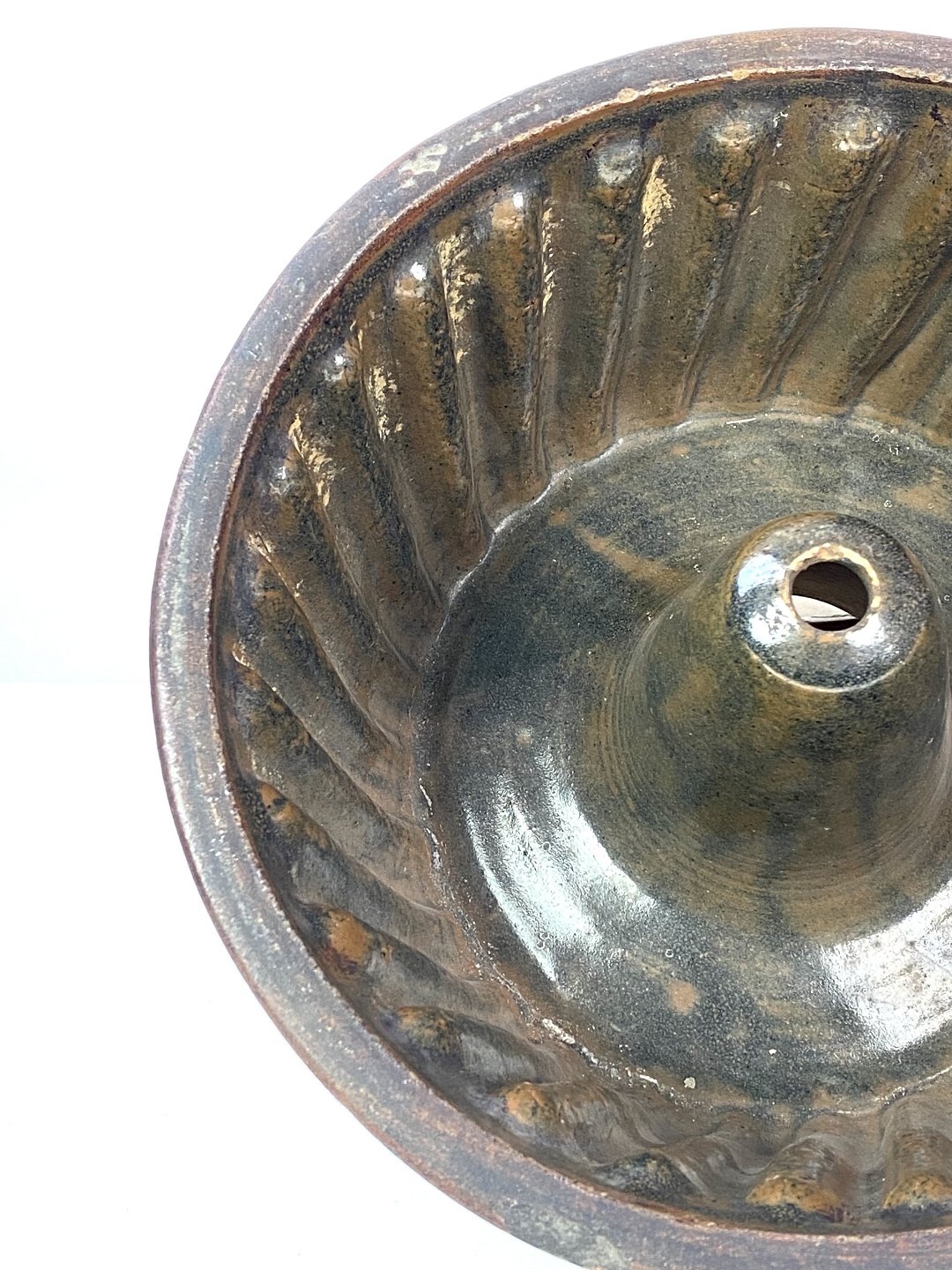 Keramik buddingeform i brune farver fra omkring 1930erne.