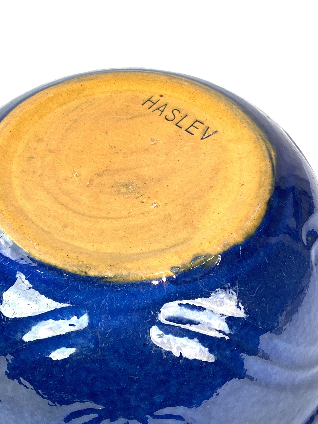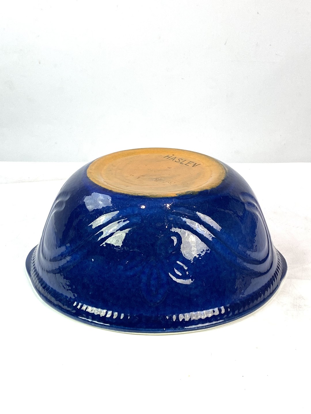 Keramik skål med blå glasur af Haslev keramik fra omkring 1950erne. Skålen er i flot brugt stand.