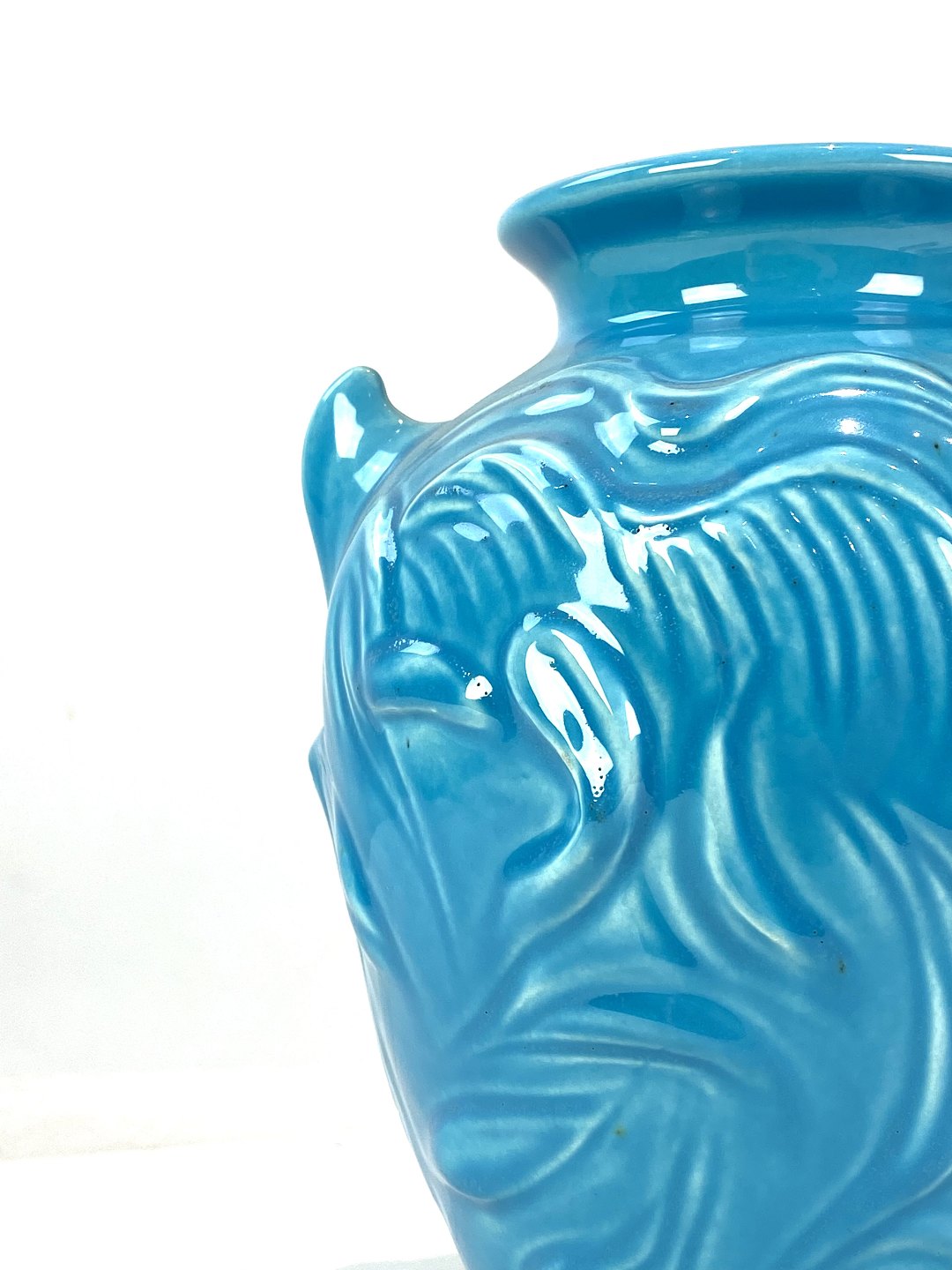 Keramik vase med lyseblå glasur af Knapstrub keramik fra omkring 1960erne. Vasen er i flot brugt stand.