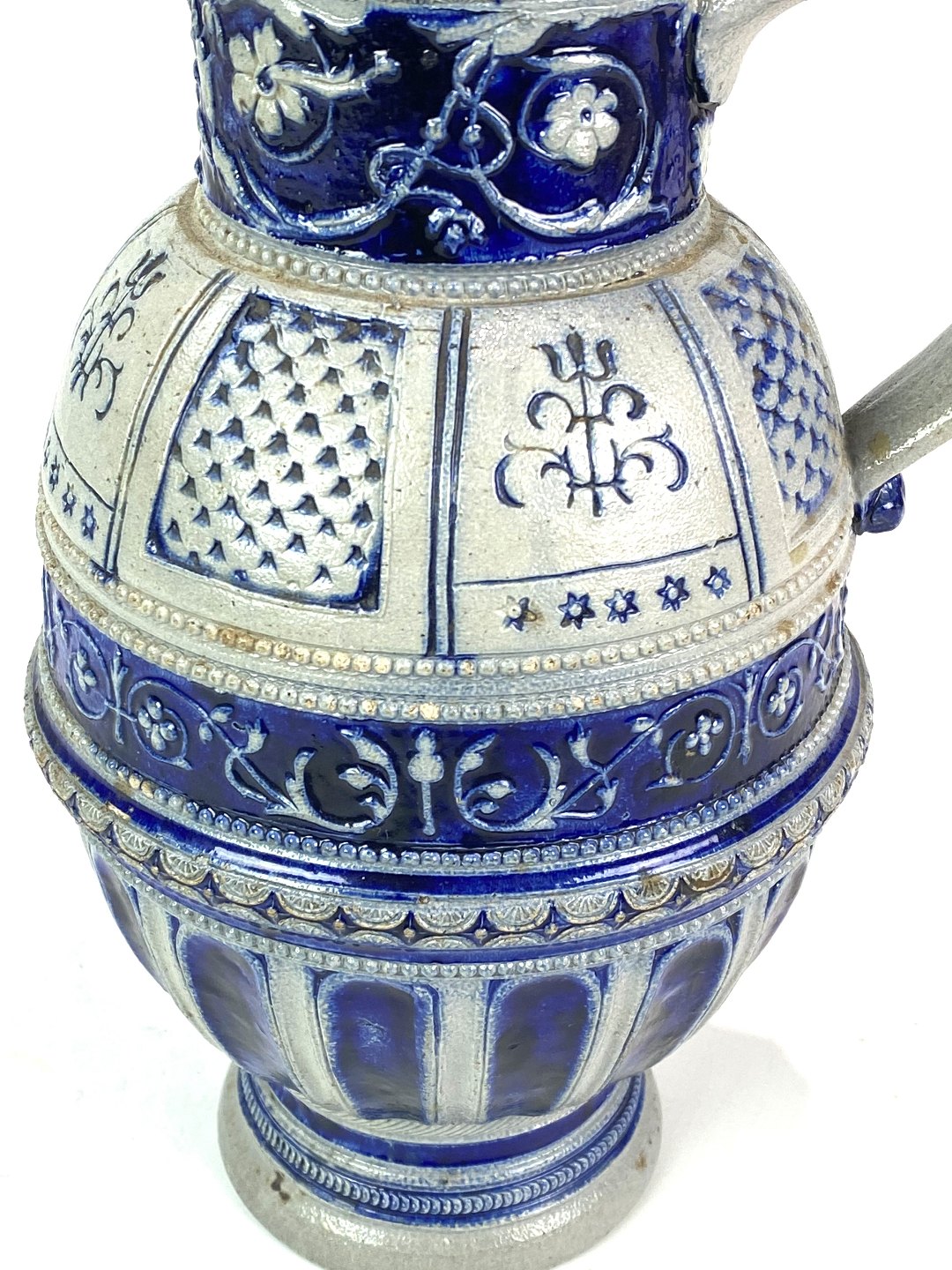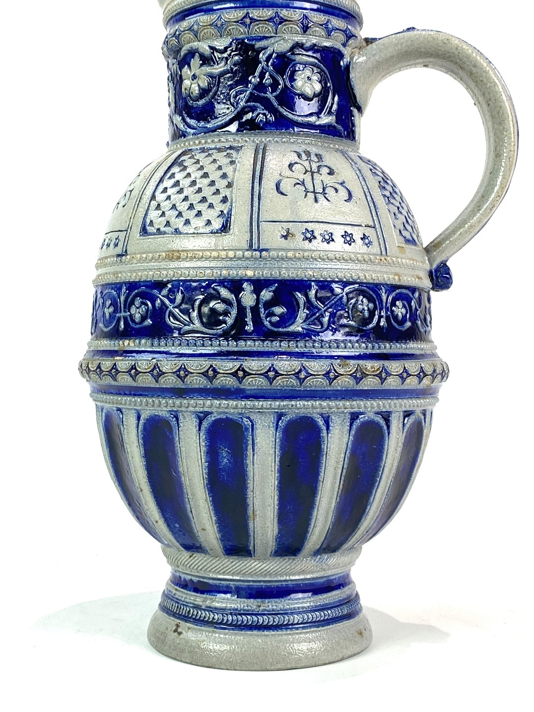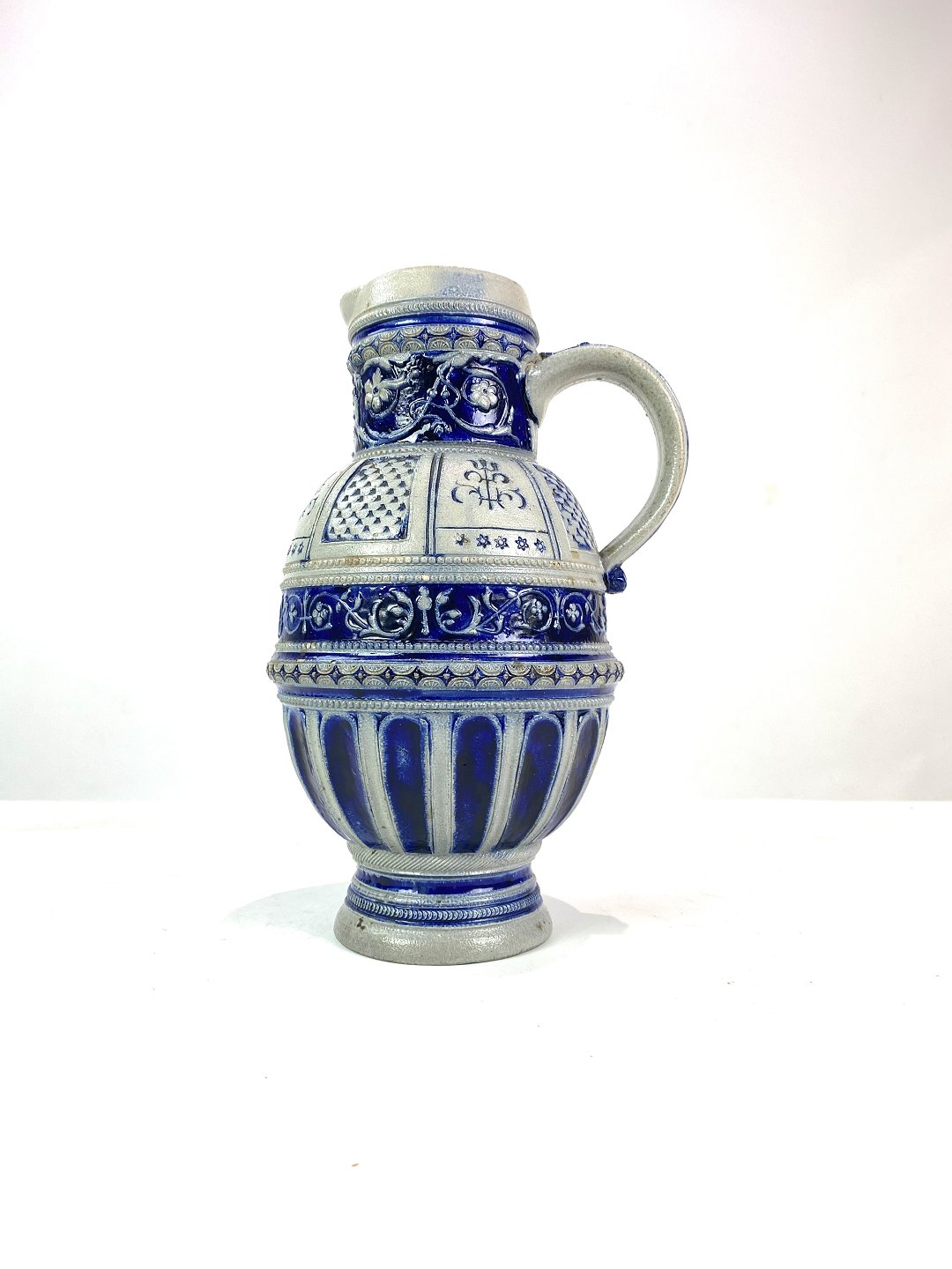 Keramik kande i grå og blå farver, nummeret 58, fra omkring 1940erne. Kanden er i flot brugt stand.