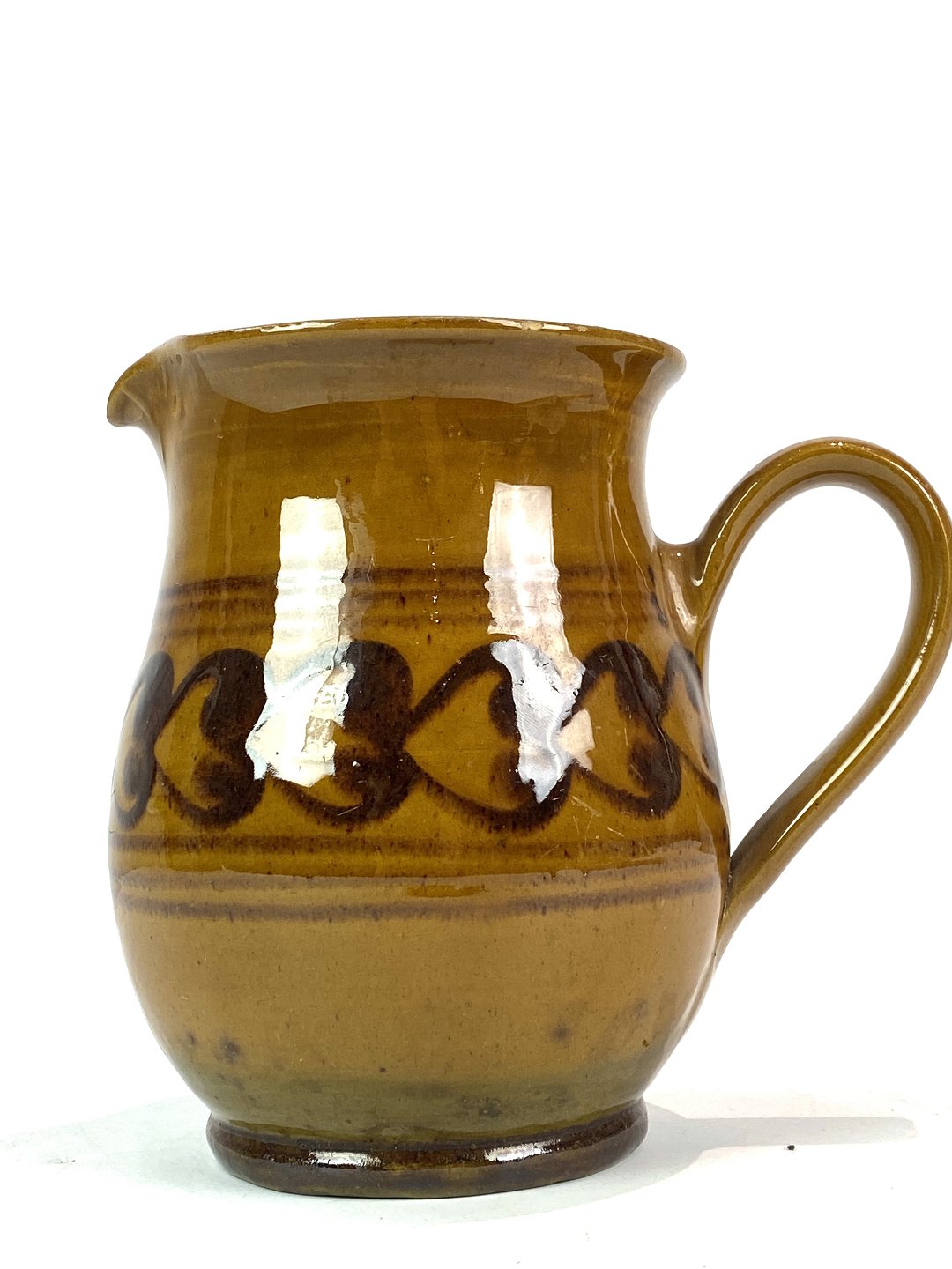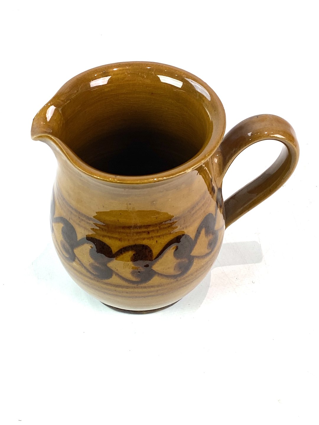 Keramik kande i brune farver af Abbednæs Potteri. Kanden er i flot brugt stand.