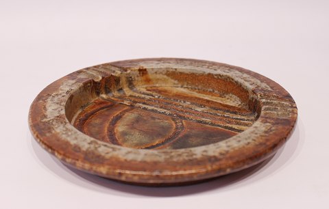 Keramik buddingeform med gul glasur fra omkring 1930erne. Skålen er i flot brugt stand.