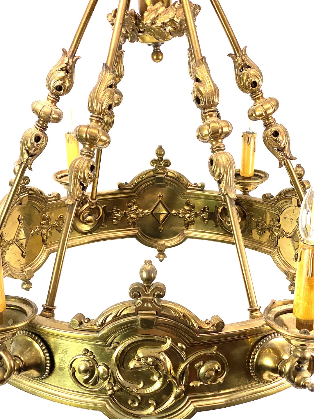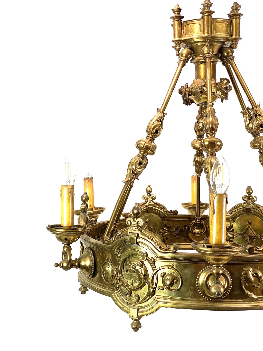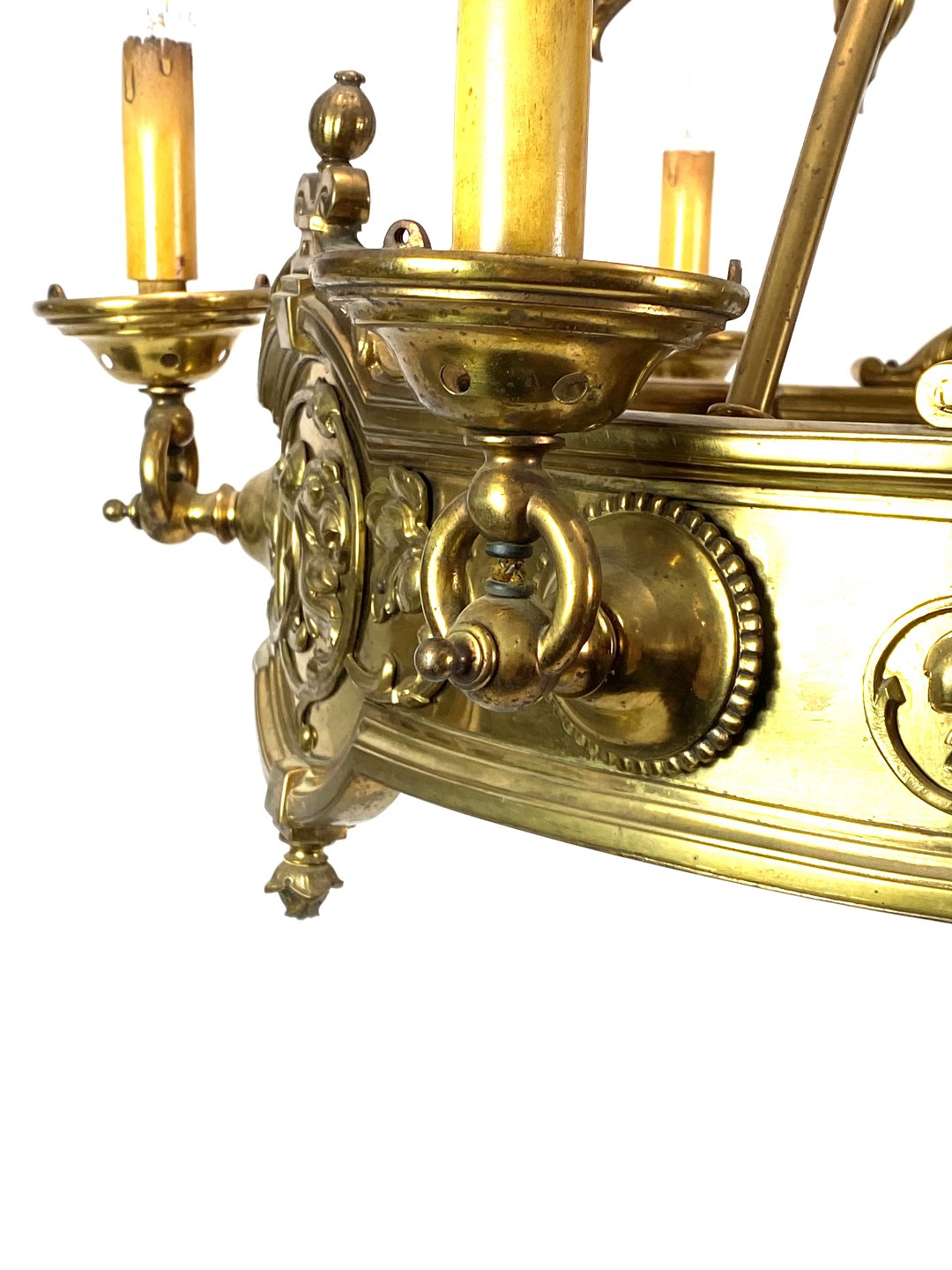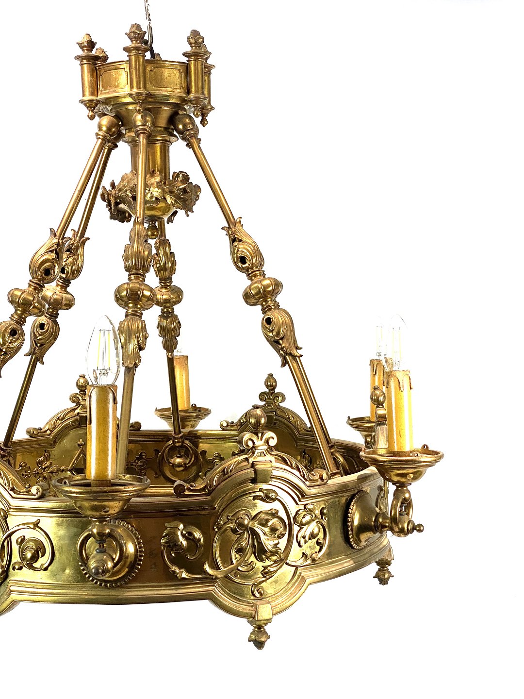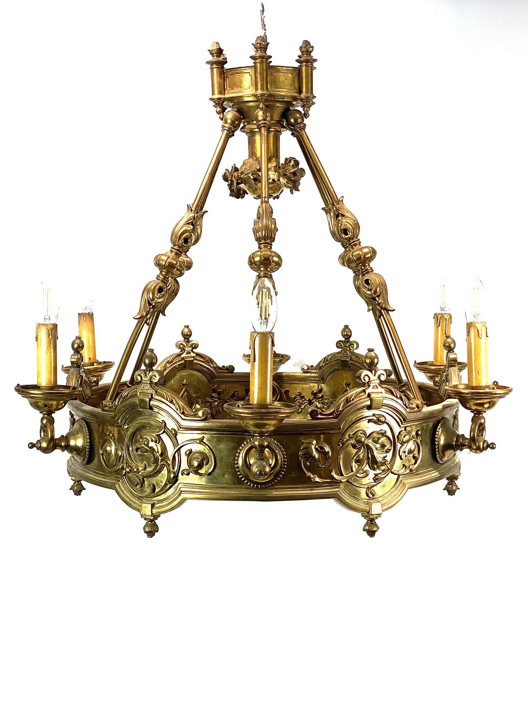 SoldLarge brass chandelier from around 1910. The pendant is in great antique condition.