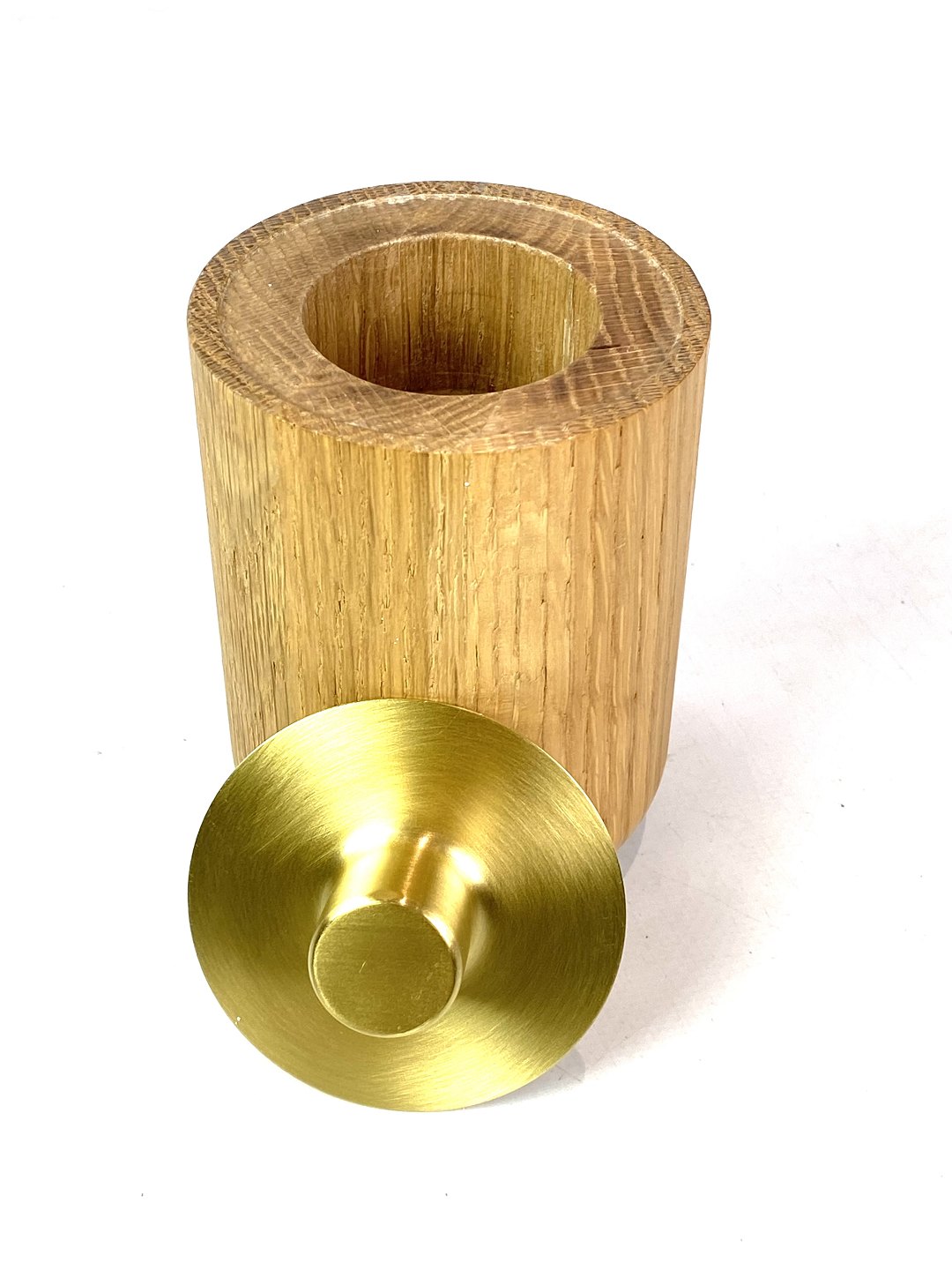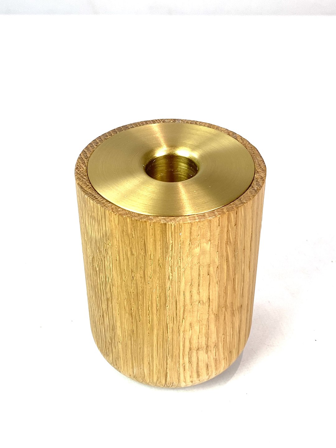 Oak Nordic candlestick in oak and brass by Andersen Furniture.