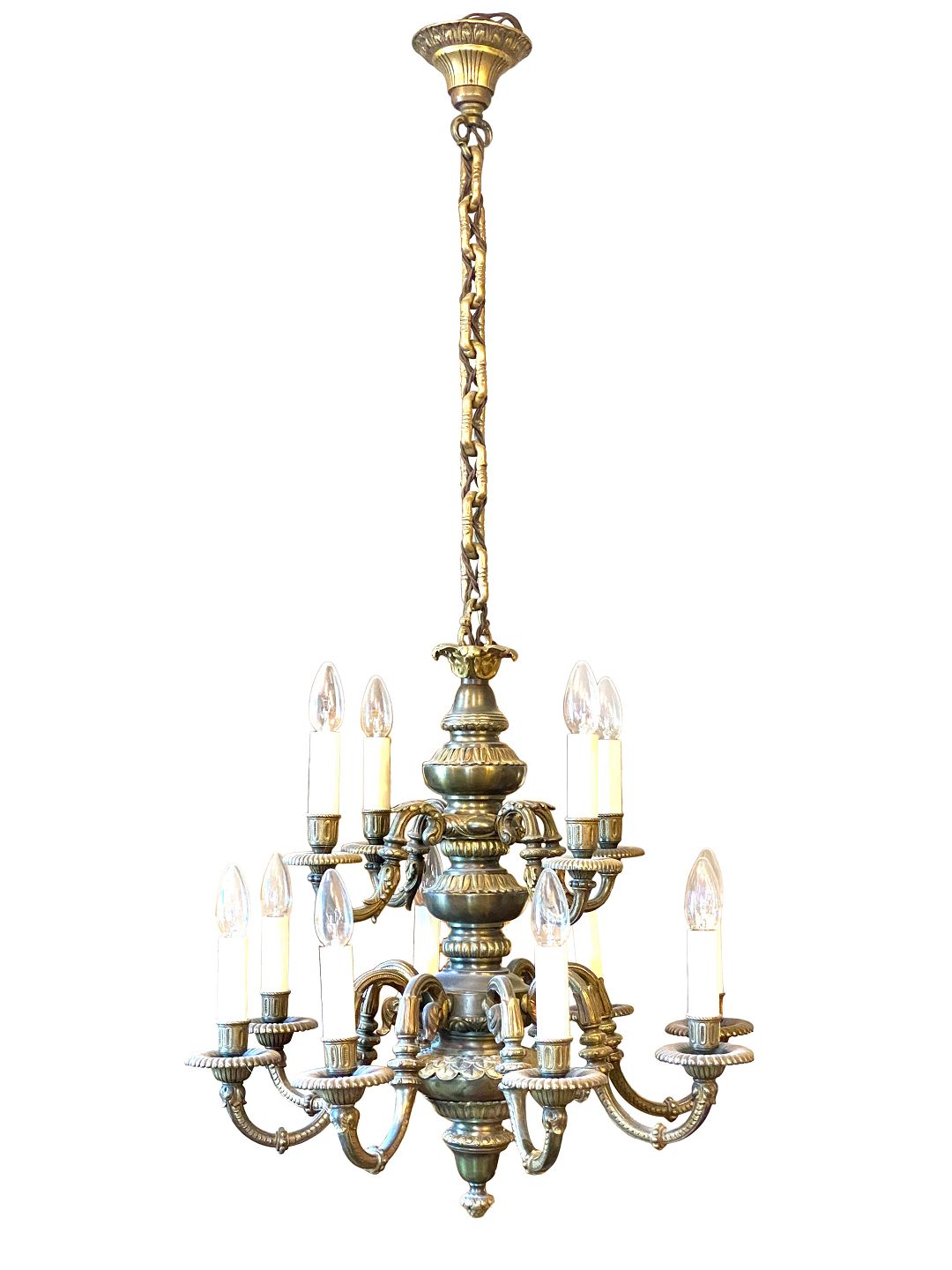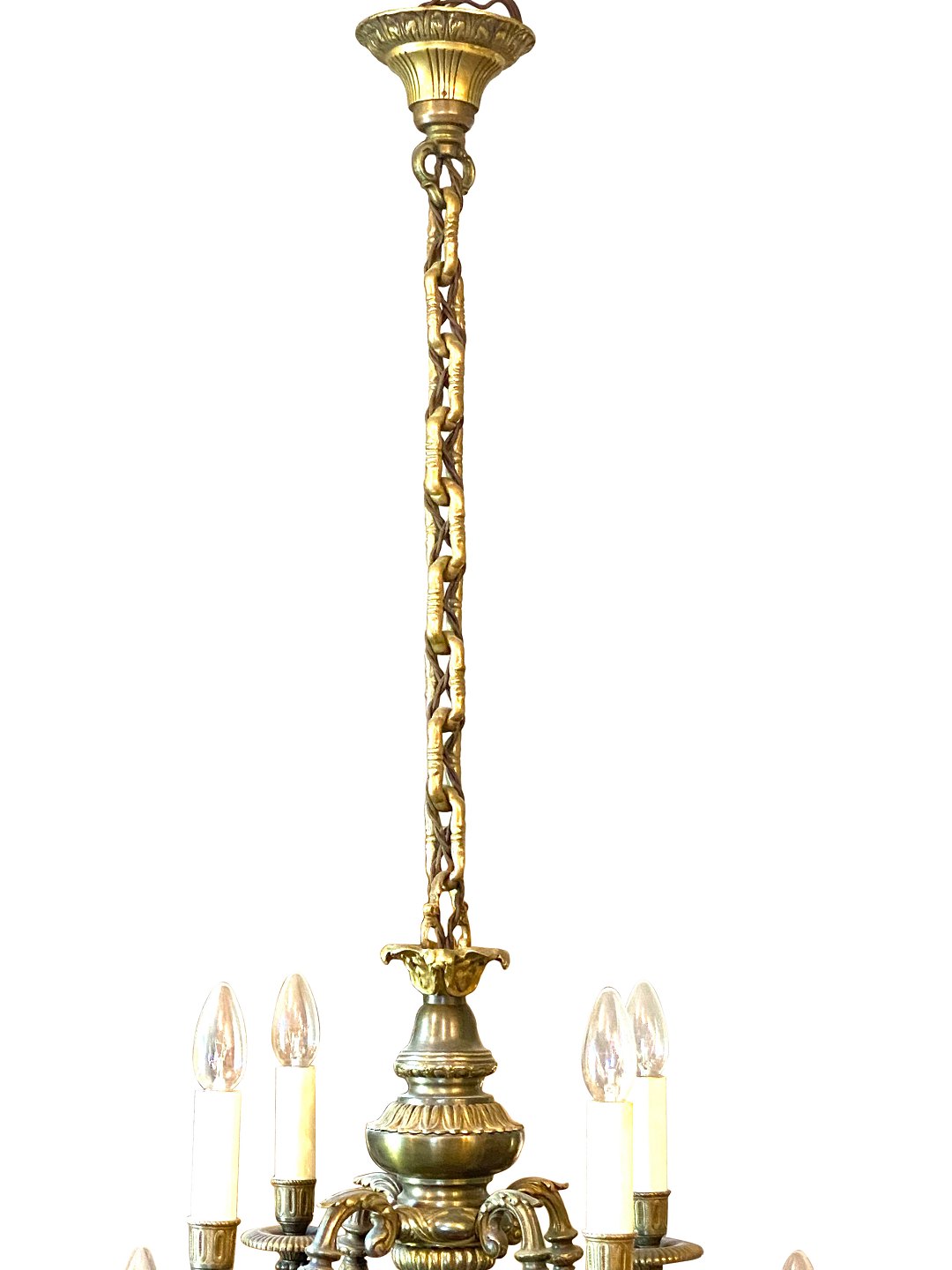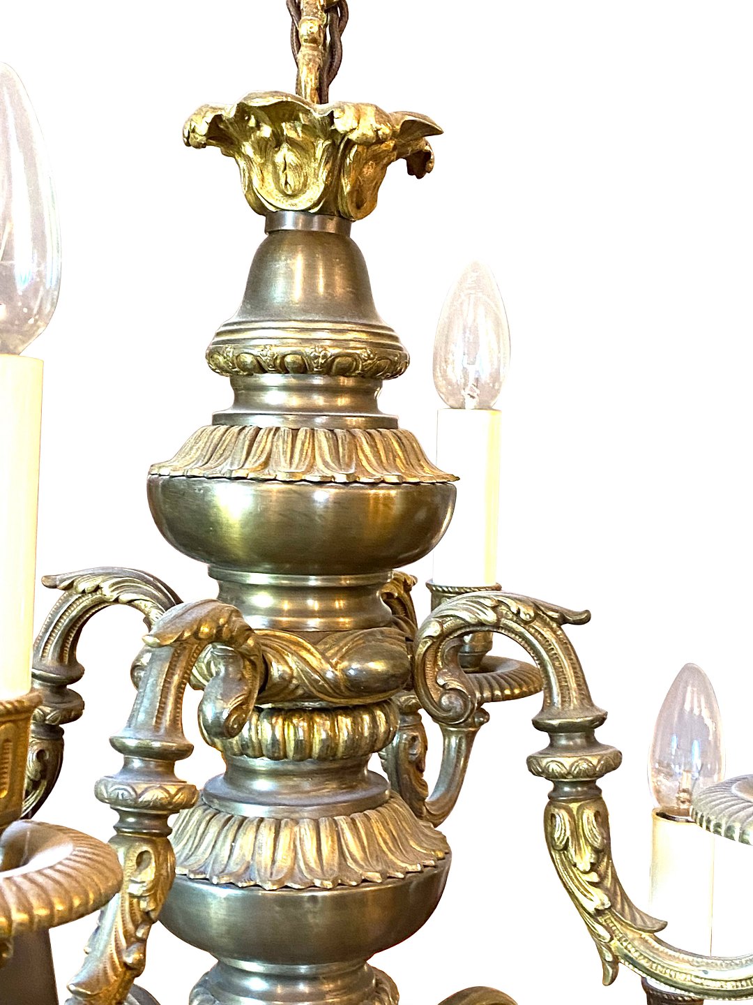 Lysekrone af bruneret messing fra omkring 1910. Kronen er i flot antik stand.