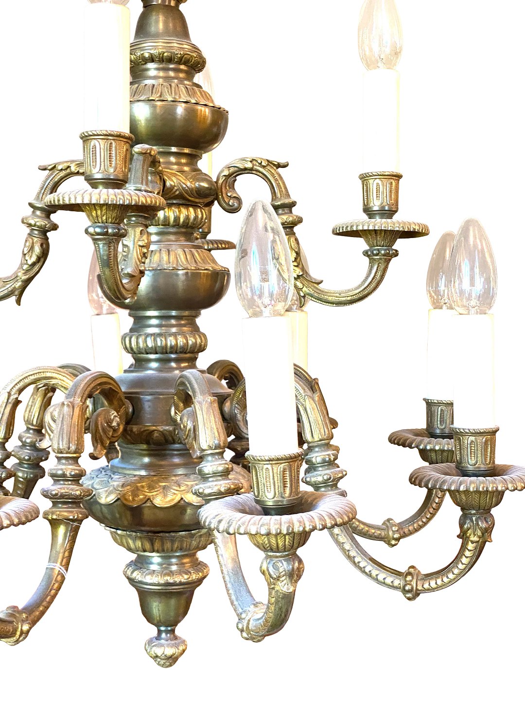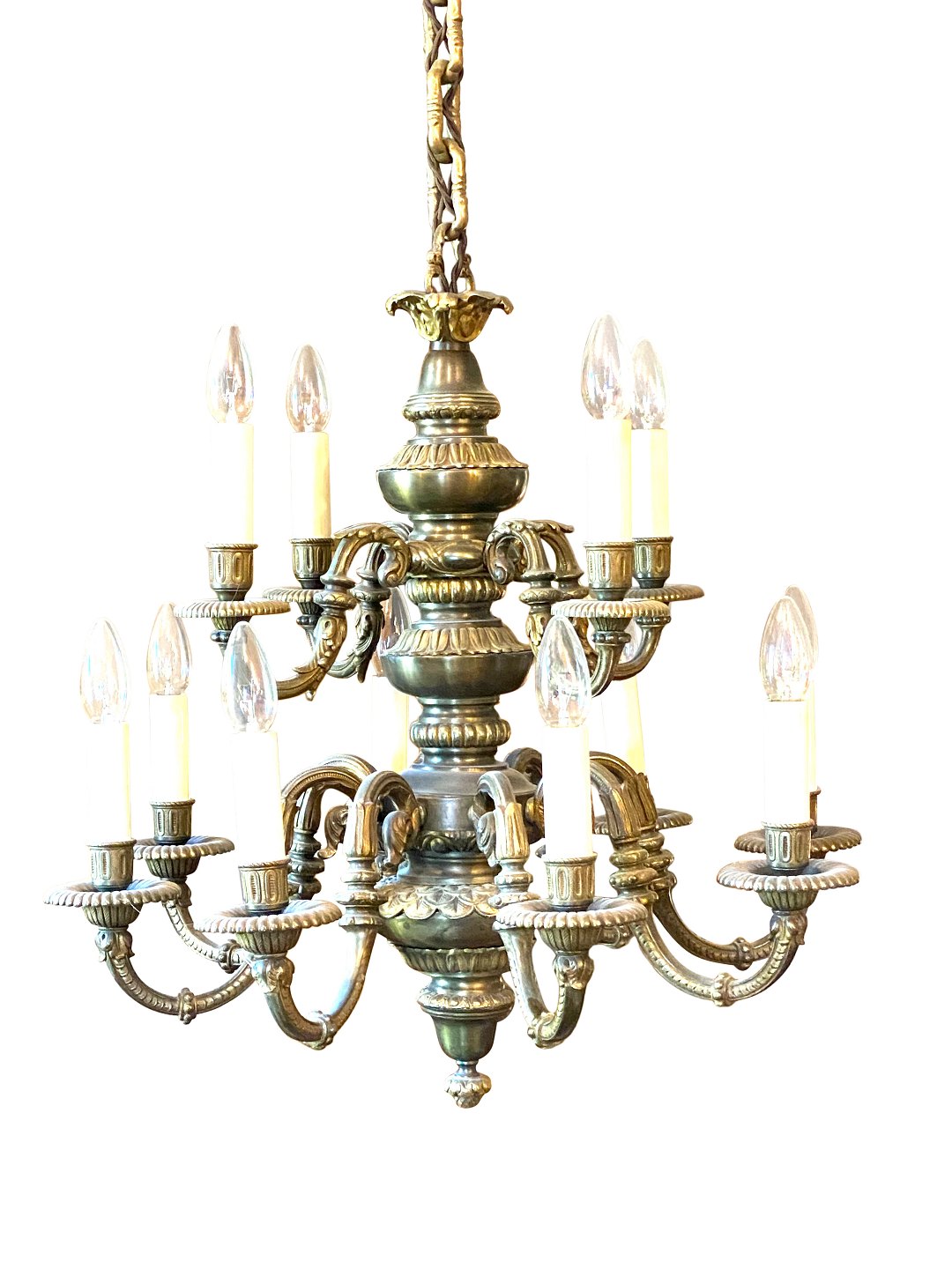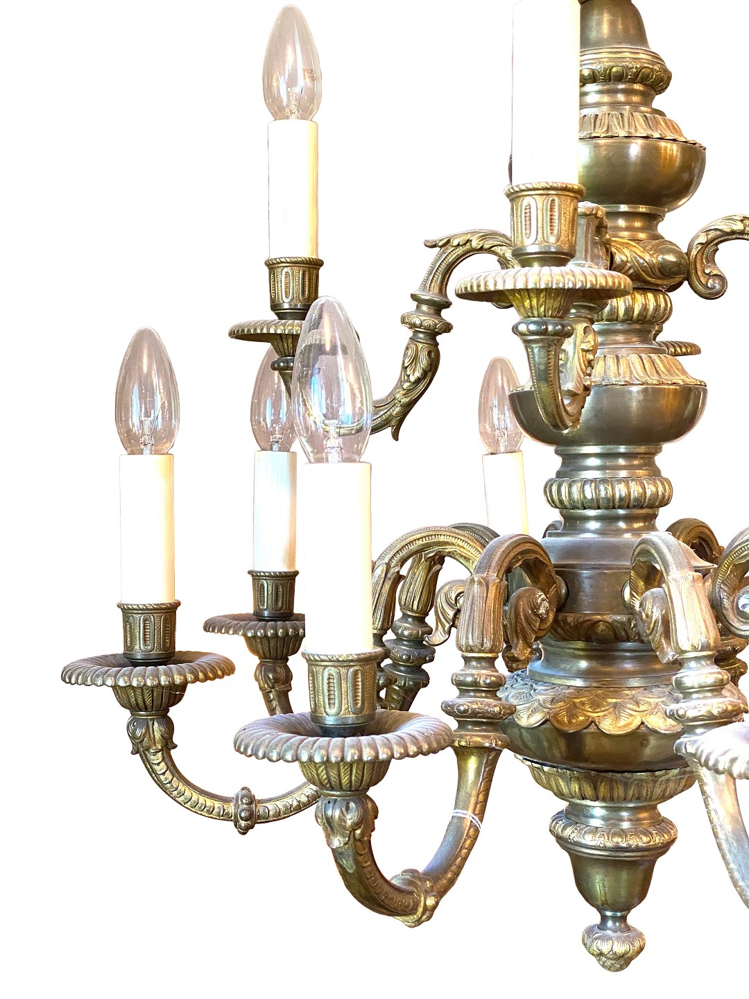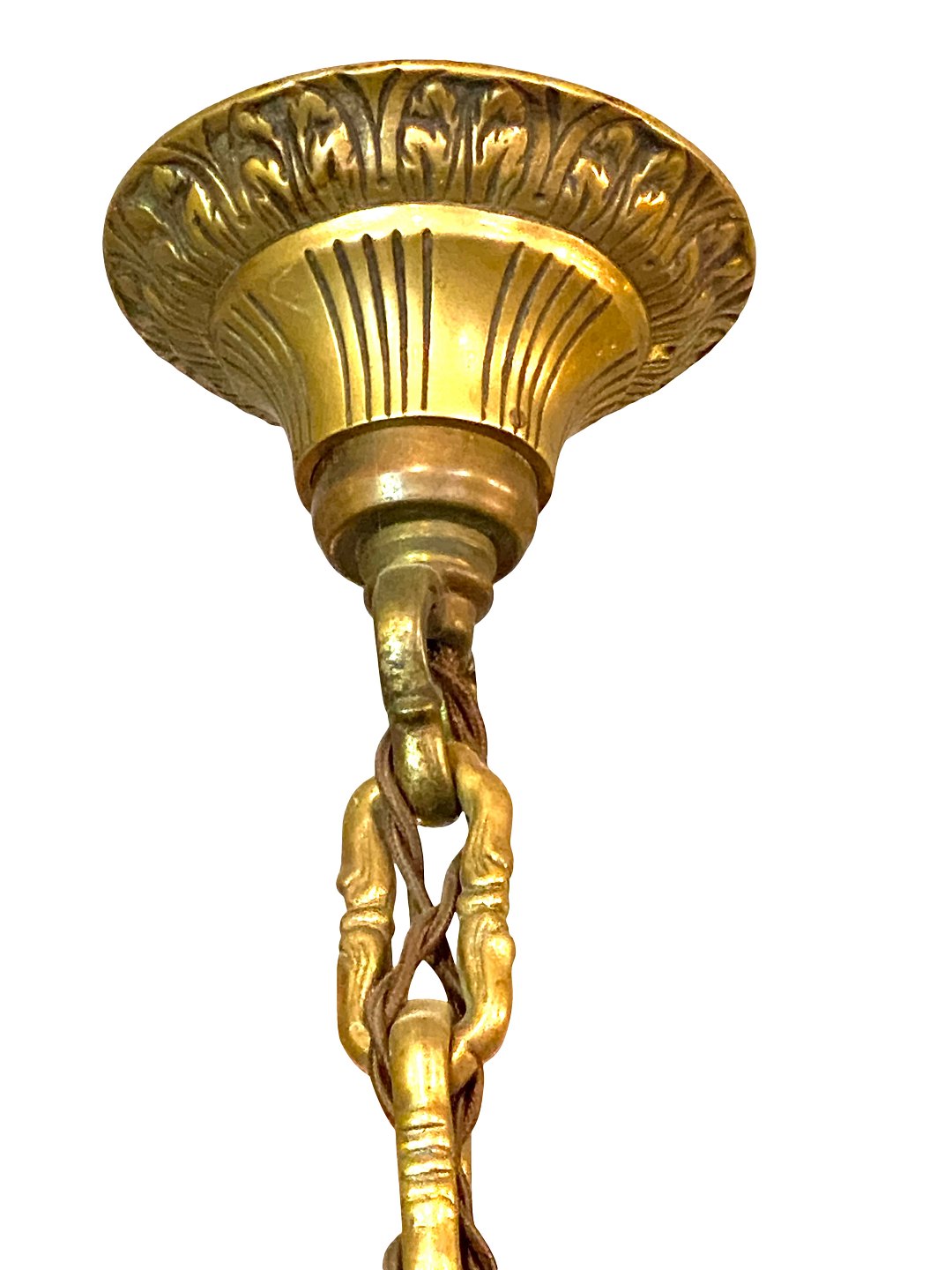 Lysekrone af bruneret messing fra omkring 1910. Kronen er i flot antik stand.