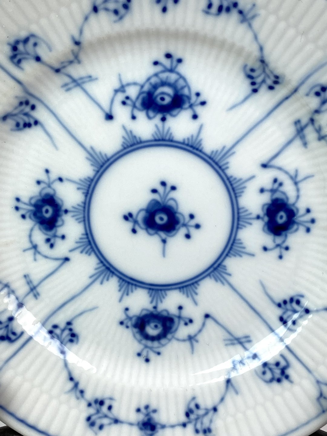 SolgtKgl. musselmalet riflet frokosttallerken, nr.: 2055.