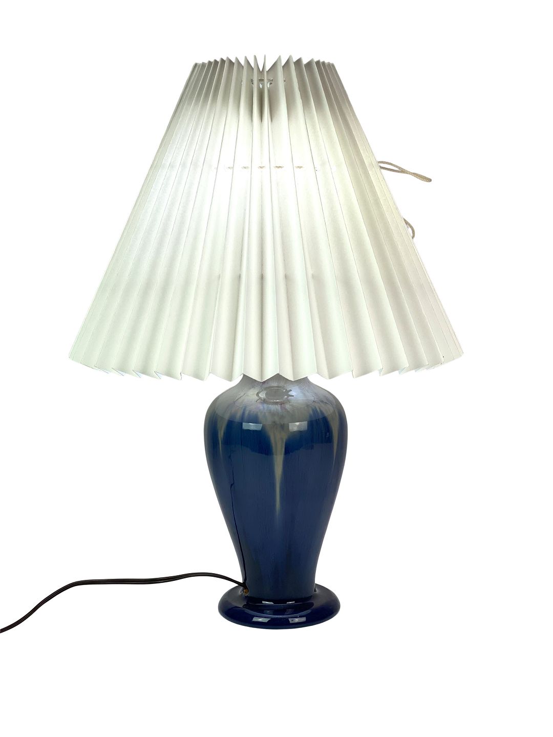 Keramik bordlampe med blå glasur og papir skærm, af Michael Andersen. Lampen er i flot brugt stand.
