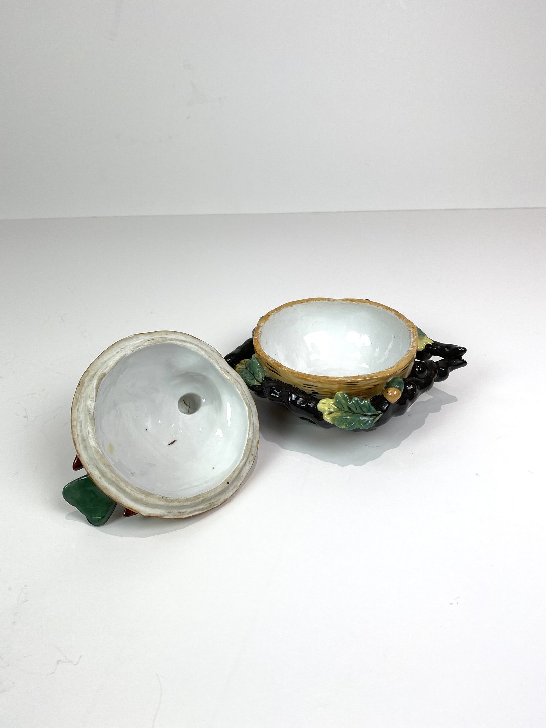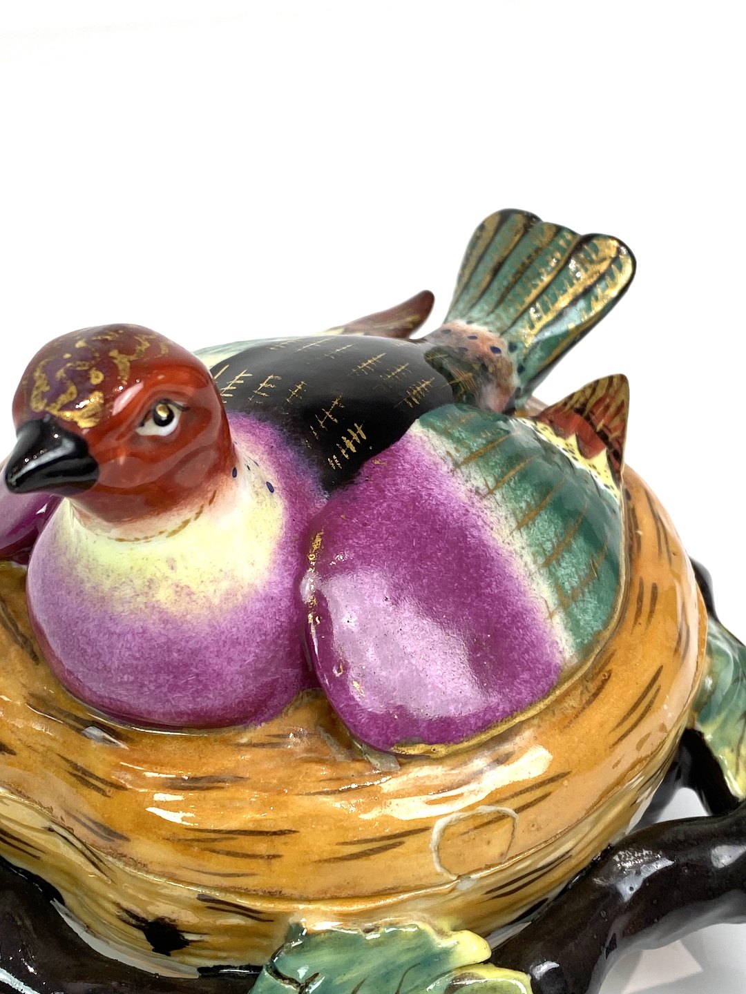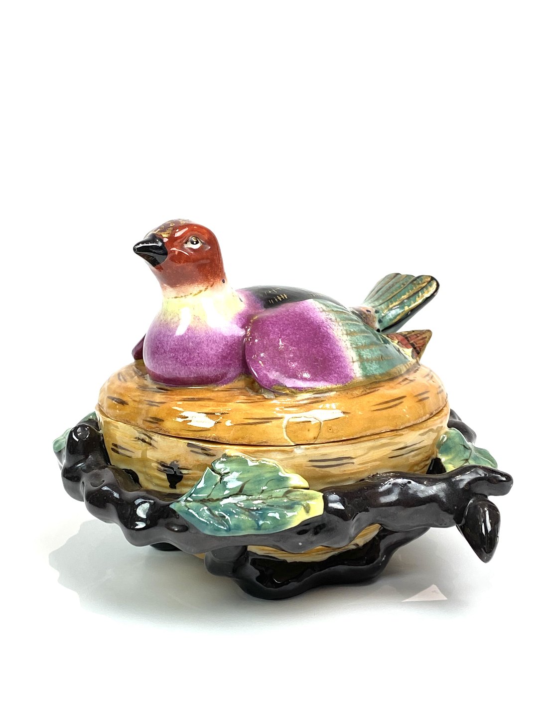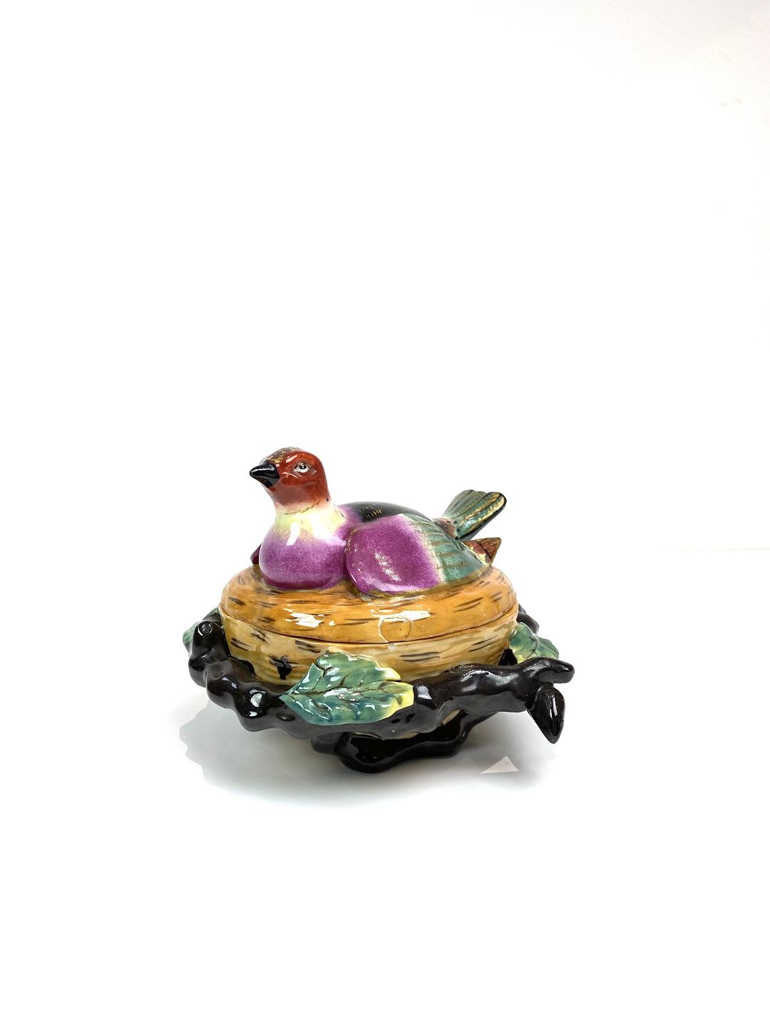 Ceramic jar in the shape of bird nesting, from Bornholm around the 1920s. The item is in great vintage condition.
